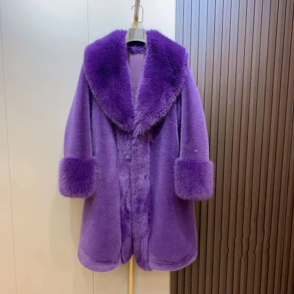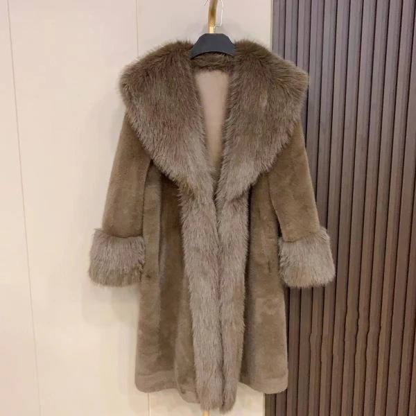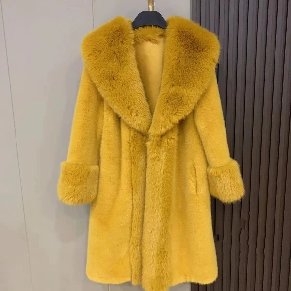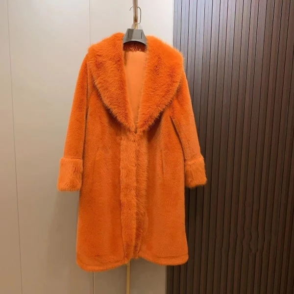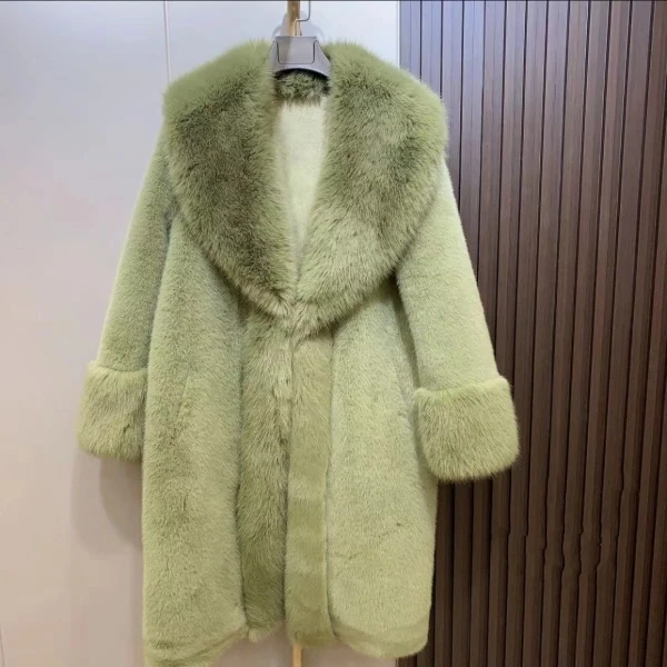 Introducing our Winter New Lapel Collar Long-Sleeve Fur Coat for Women, the perfect addition to your wardrobe for the upcoming winter season. Made with premium mink material, this coat will keep you warm while also making a fashion statement. The long-sleeve design and warm collar provide the perfect fit and comfort for any occasion. Don't miss out on this limited time offer, as this coat is a best seller and exclusive to our brand. Upgrade your winter wardrobe with our fashionable and trendy coat, and stay warm in style.