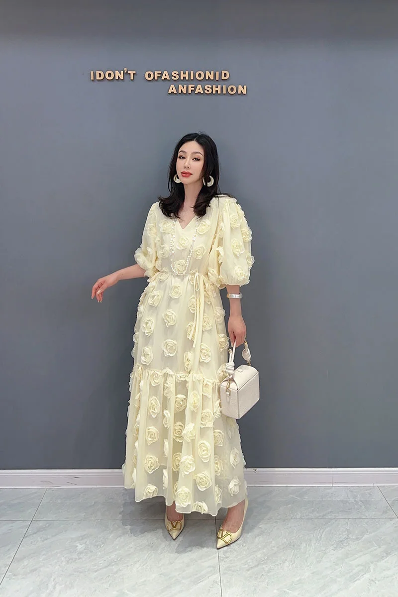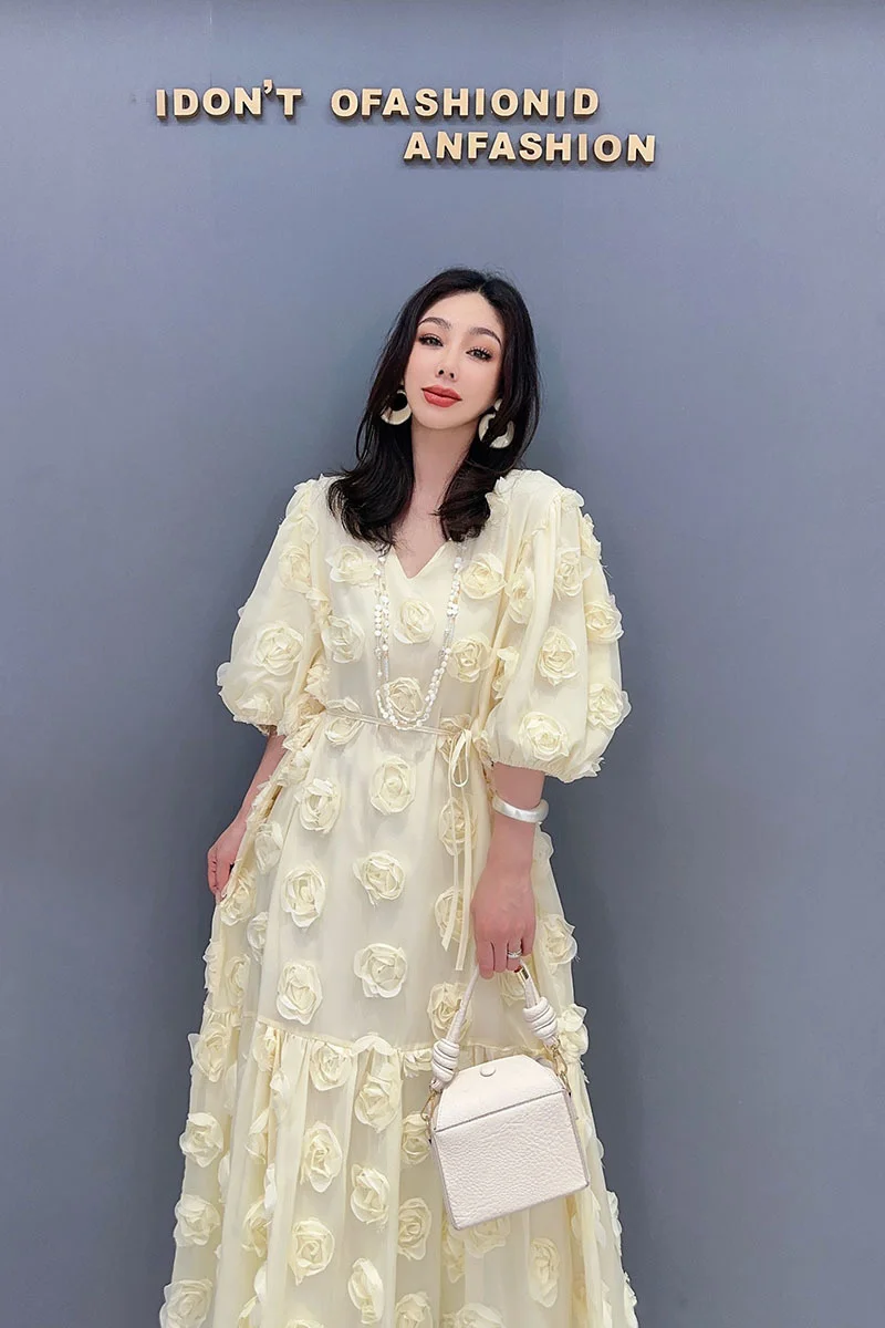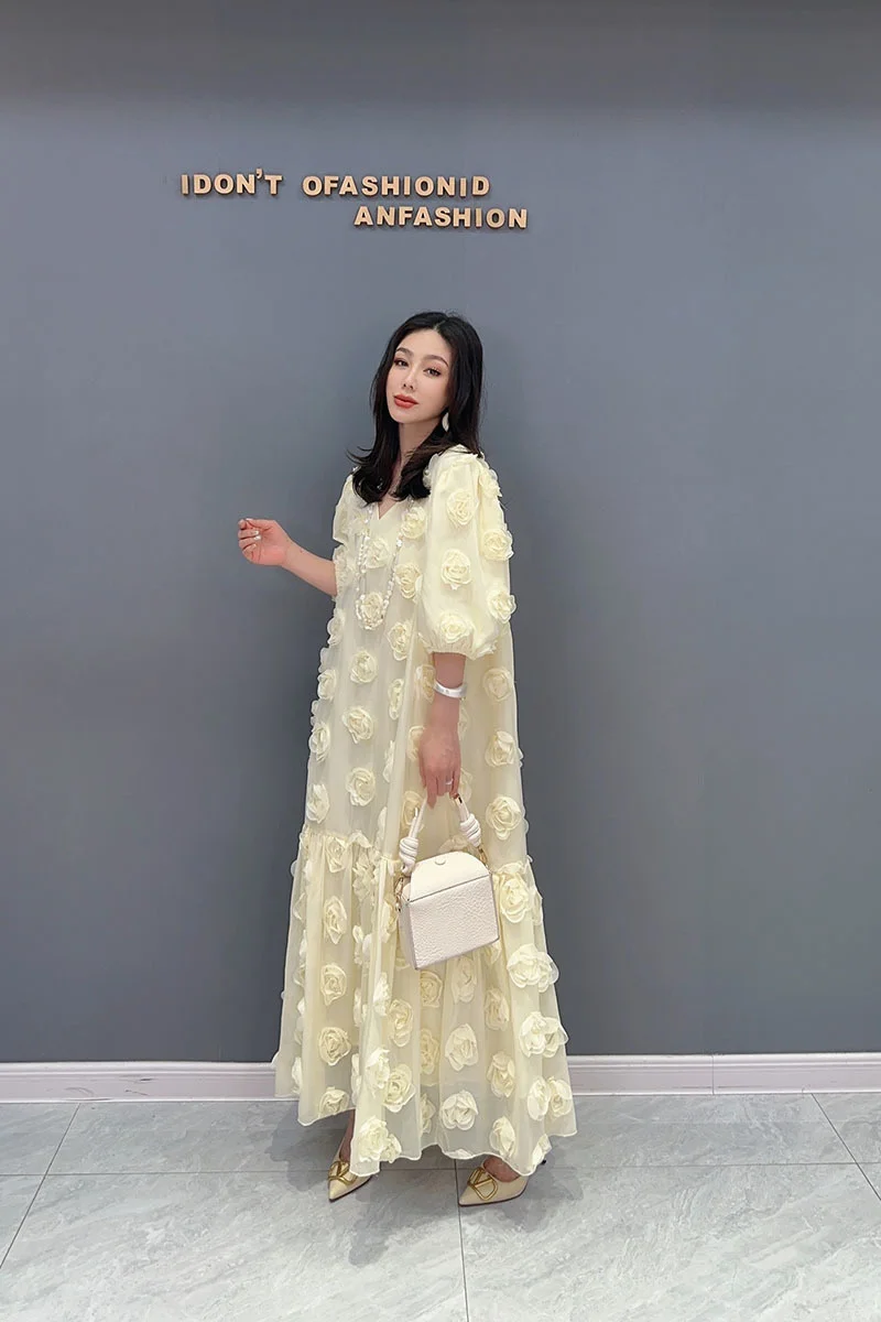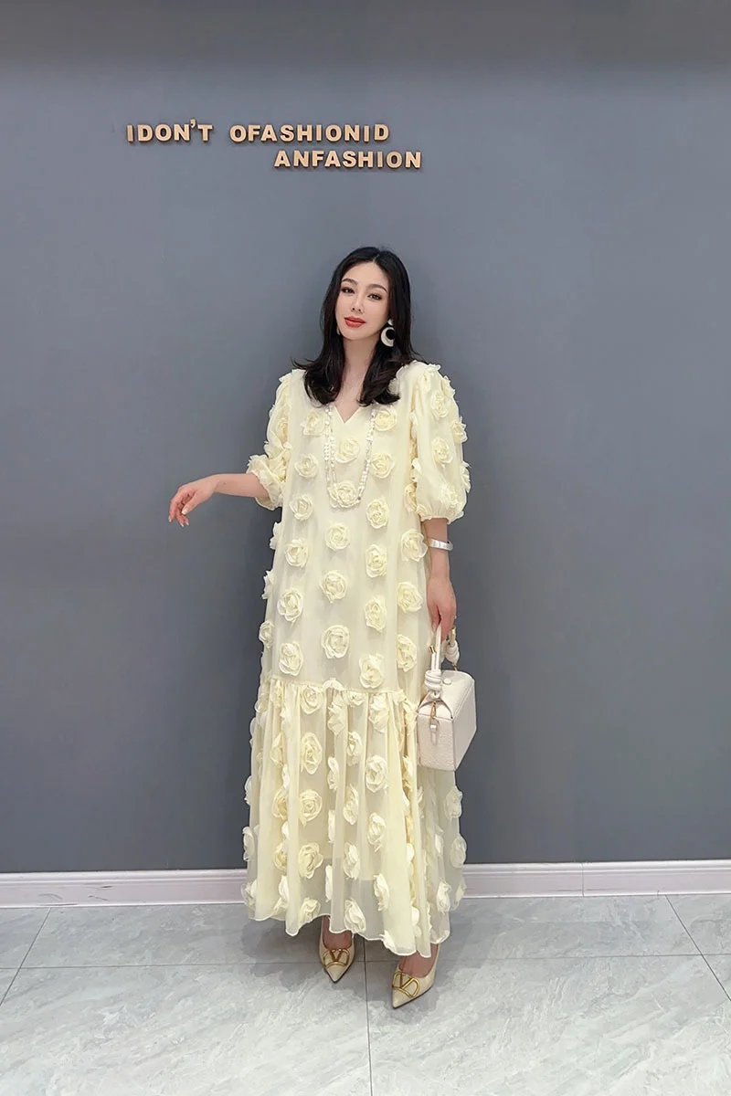Introducing the Vefadisa 2024 Summer New Women V-Neck Dress, the perfect combination of elegance and trendiness. Made from high-quality chiffon, this dress is perfect for any summer occasion. With its personalized rose flower design, it adds a touch of femininity to your wardrobe. The dress is designed with a loose and comfortable fit, making it suitable for all body types. Its large size and v-neck design provide a flattering silhouette. Plus, it's easy to care for with a gentle wash. Don't miss out on this limited time offer and add this premium dress to your collection today.