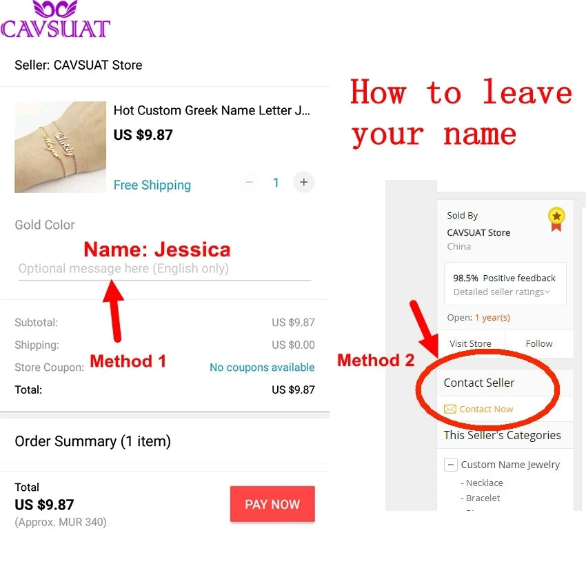 A.Clink buy now leavename and font numberin message box or Clink Contact Seller leave name and font.