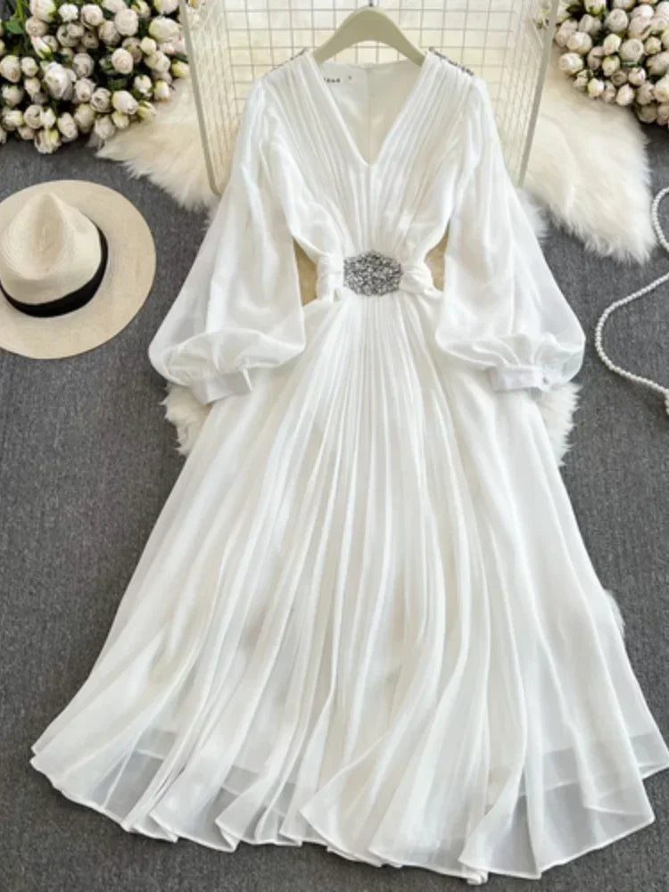France Casual Summer Elegant Long Dress Women Solid Slim Lantern Sleeve Chiffon Evening Dress Female Chic Fashion Clothing New