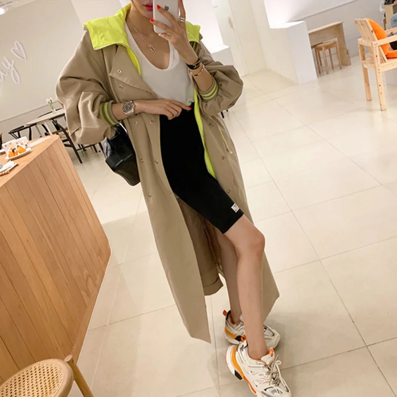 Elevate your style game with our Spring Tide Autumn Trench Coat! 🧥 What it is - Stay on-trend with this Korean Khaki Long Coat featuring a hood for a chic and cozy look. Perfect for the fall season!