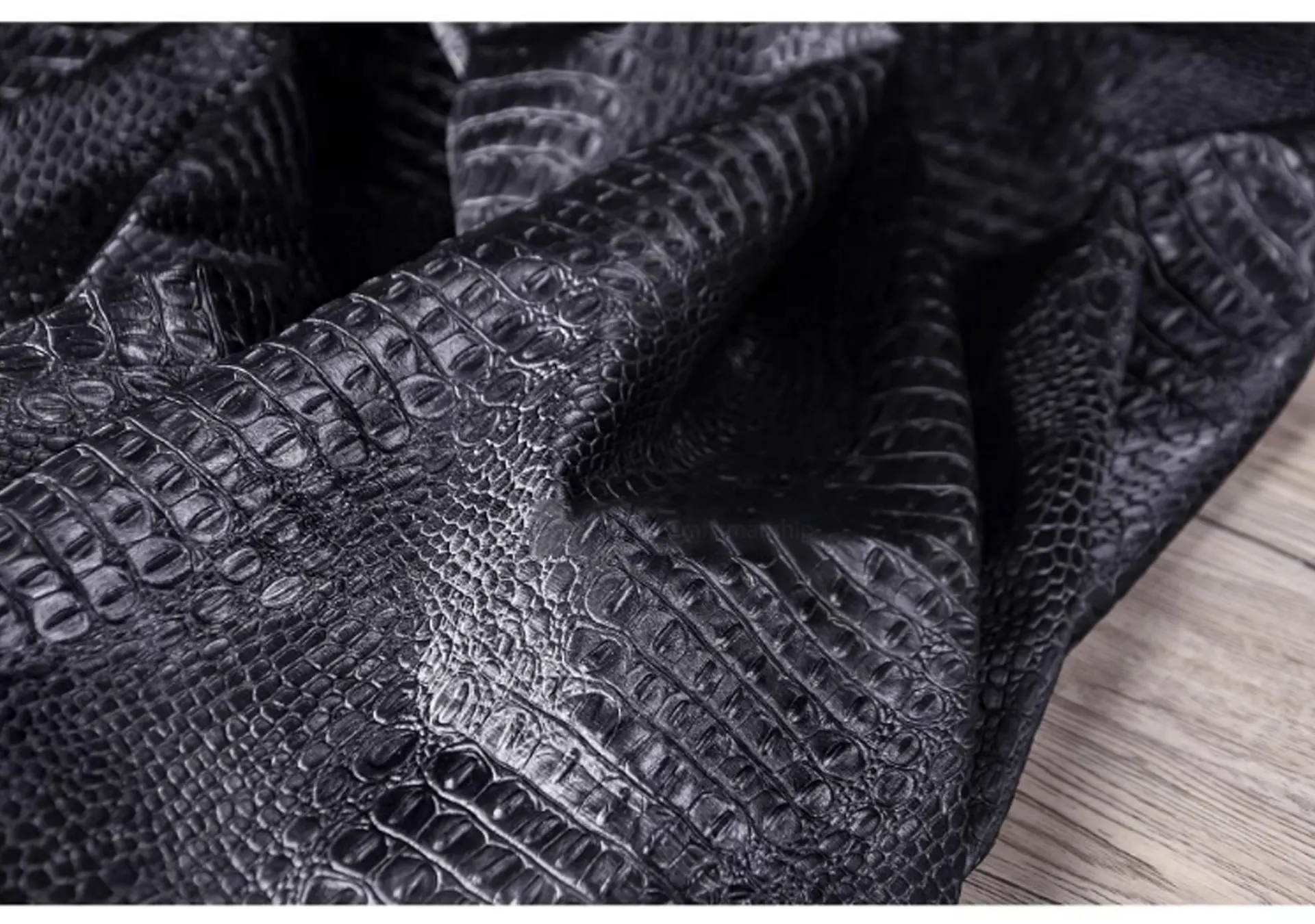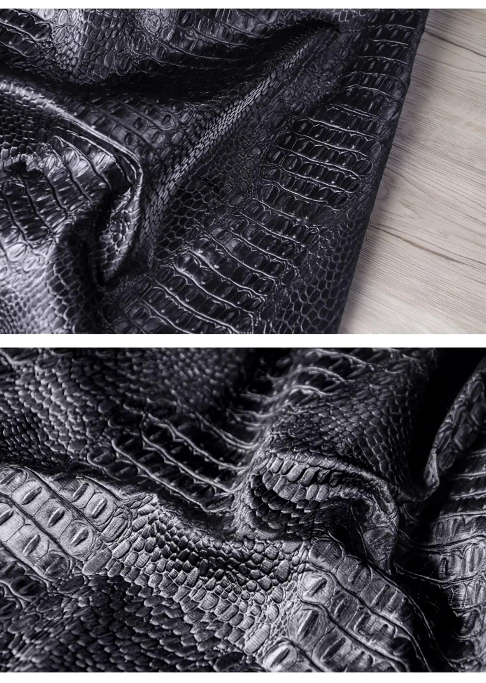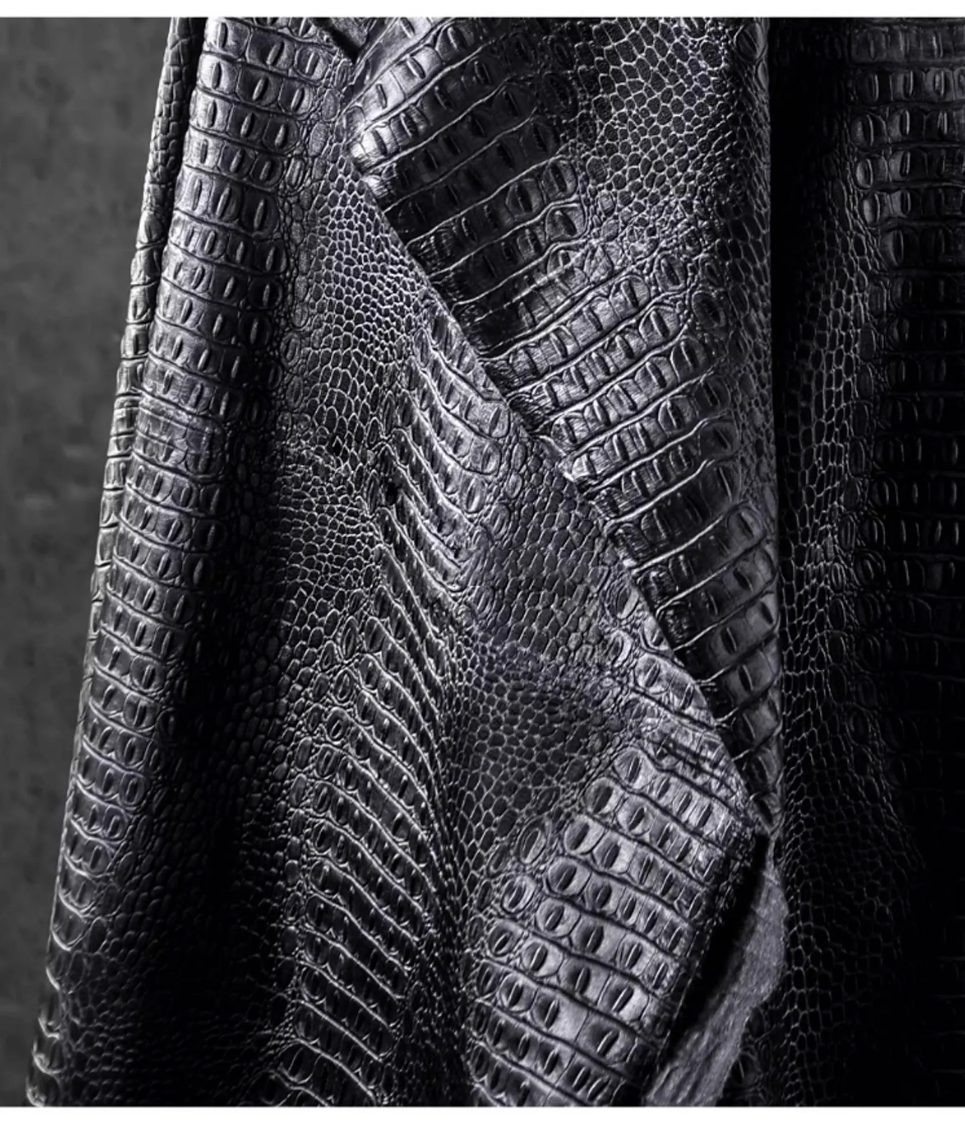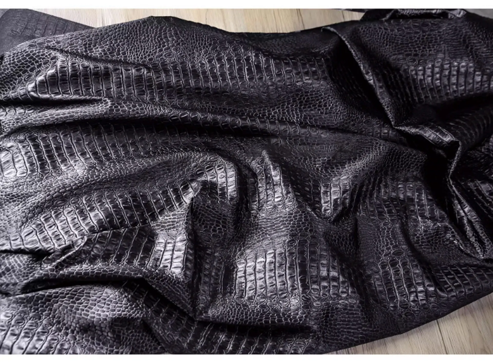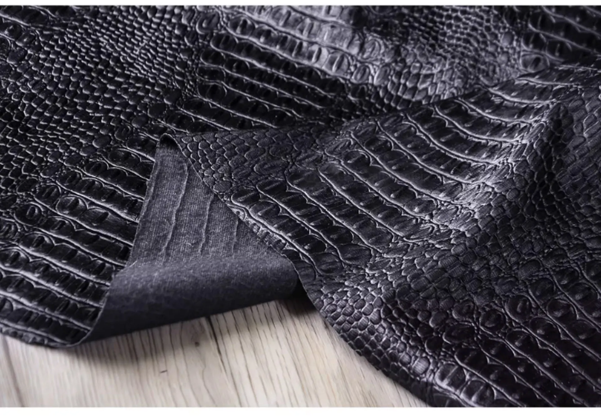 🖤 What it is - Luxurious black fabric featuring a three-dimensional crocodile texture, perfect for crafting leather coats, bags, and more.