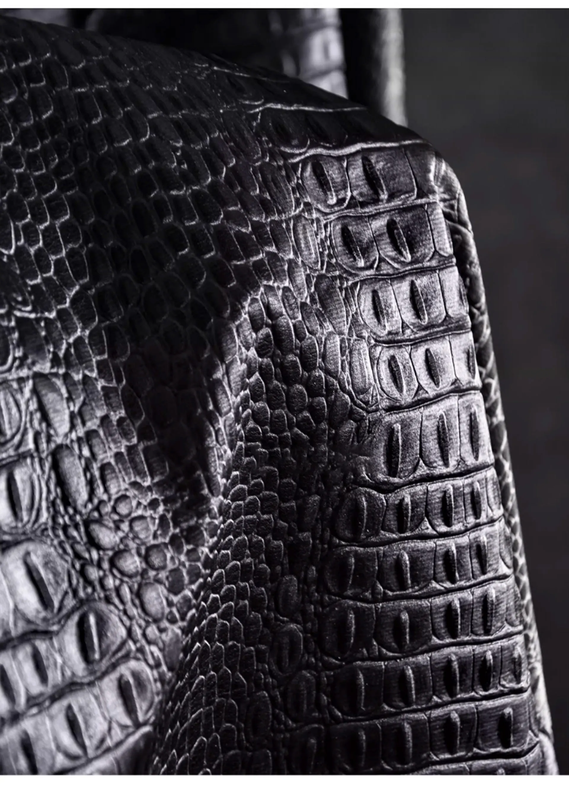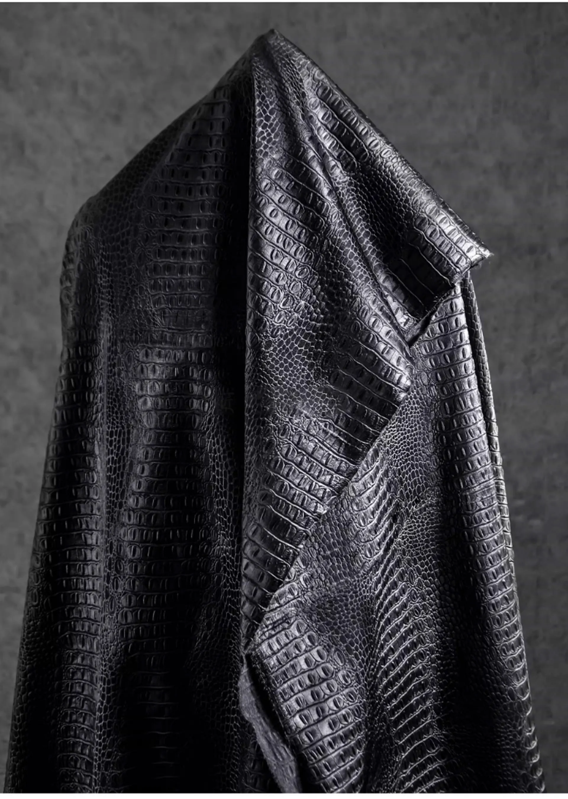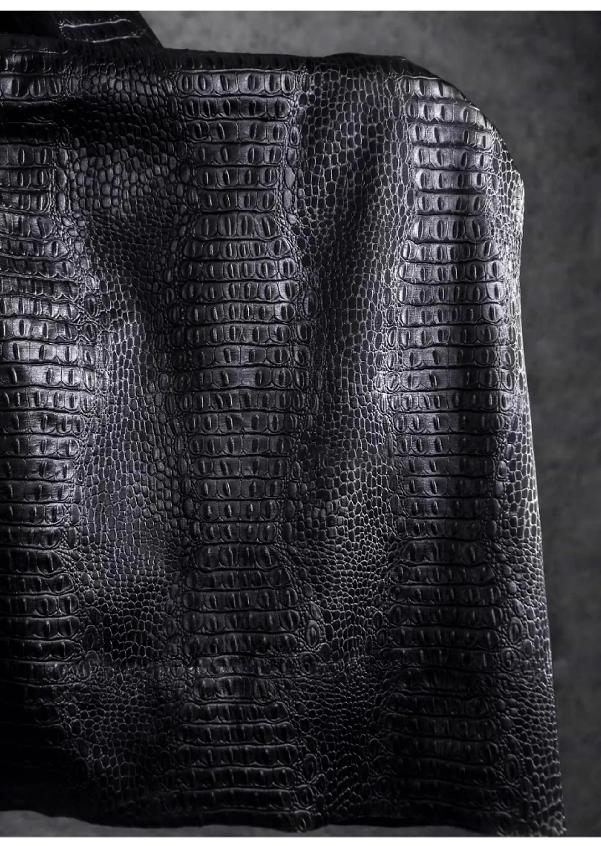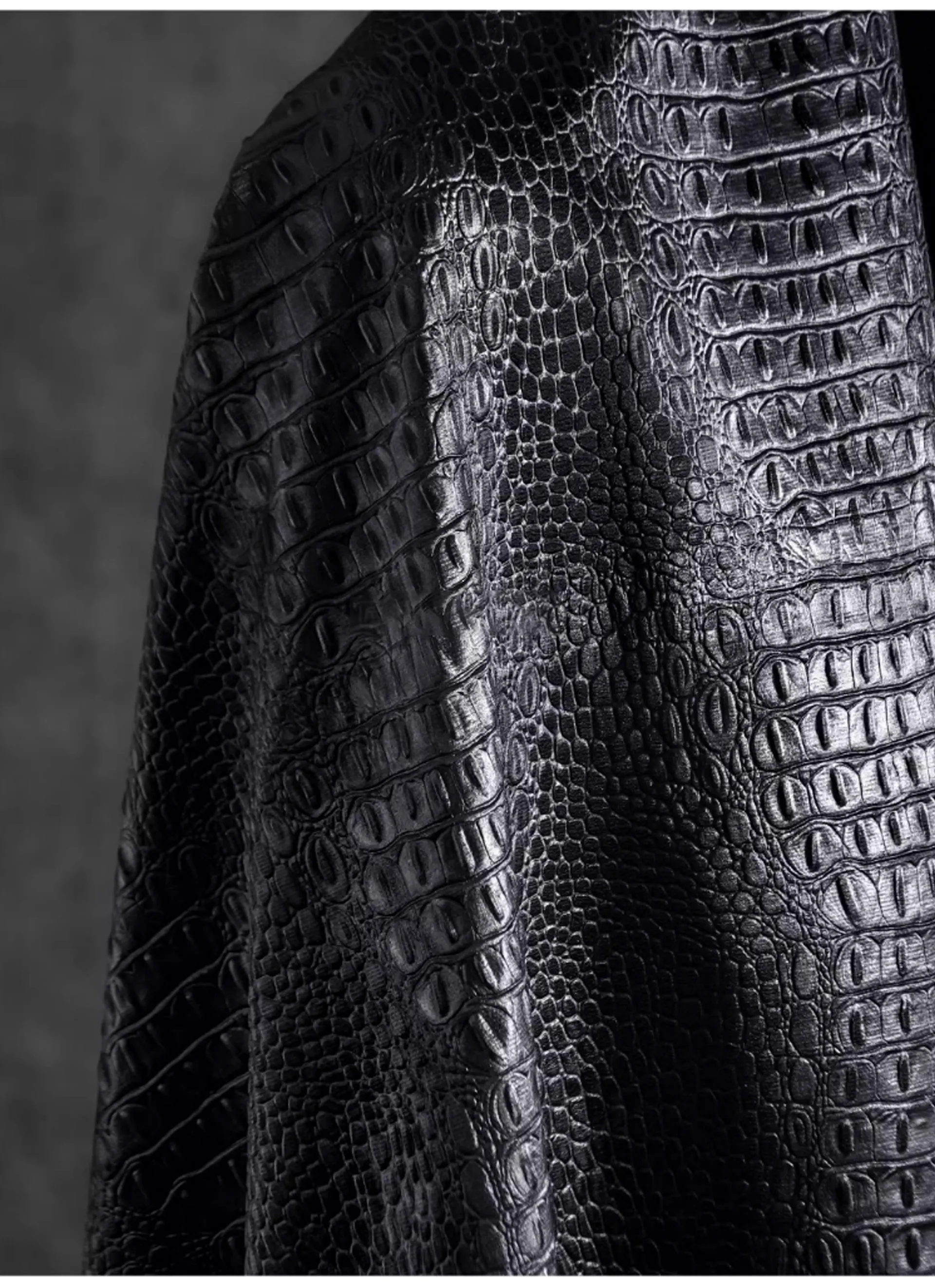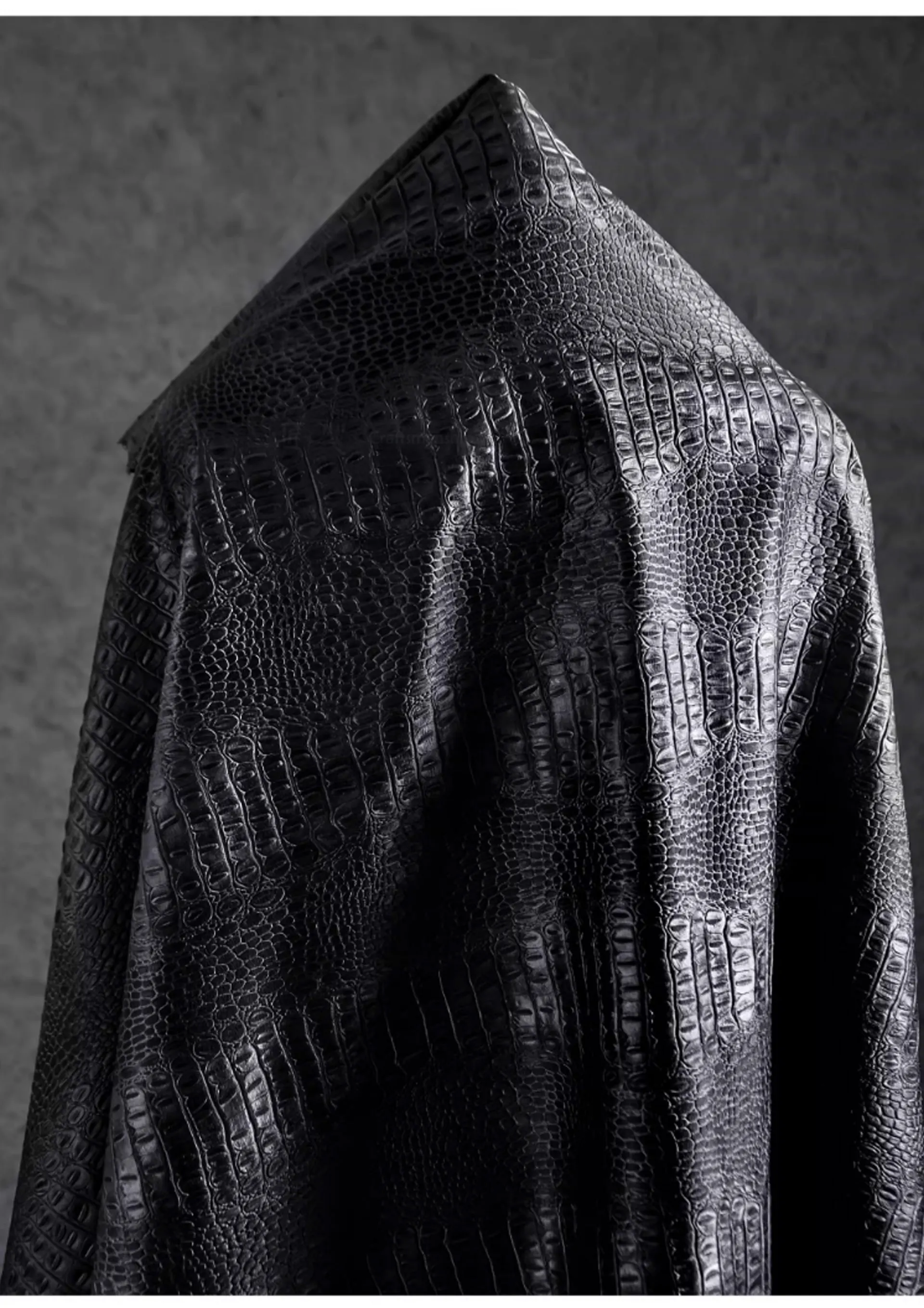 🖤 What it is - Luxurious black fabric featuring a three-dimensional crocodile texture, perfect for crafting leather coats, bags, and more.