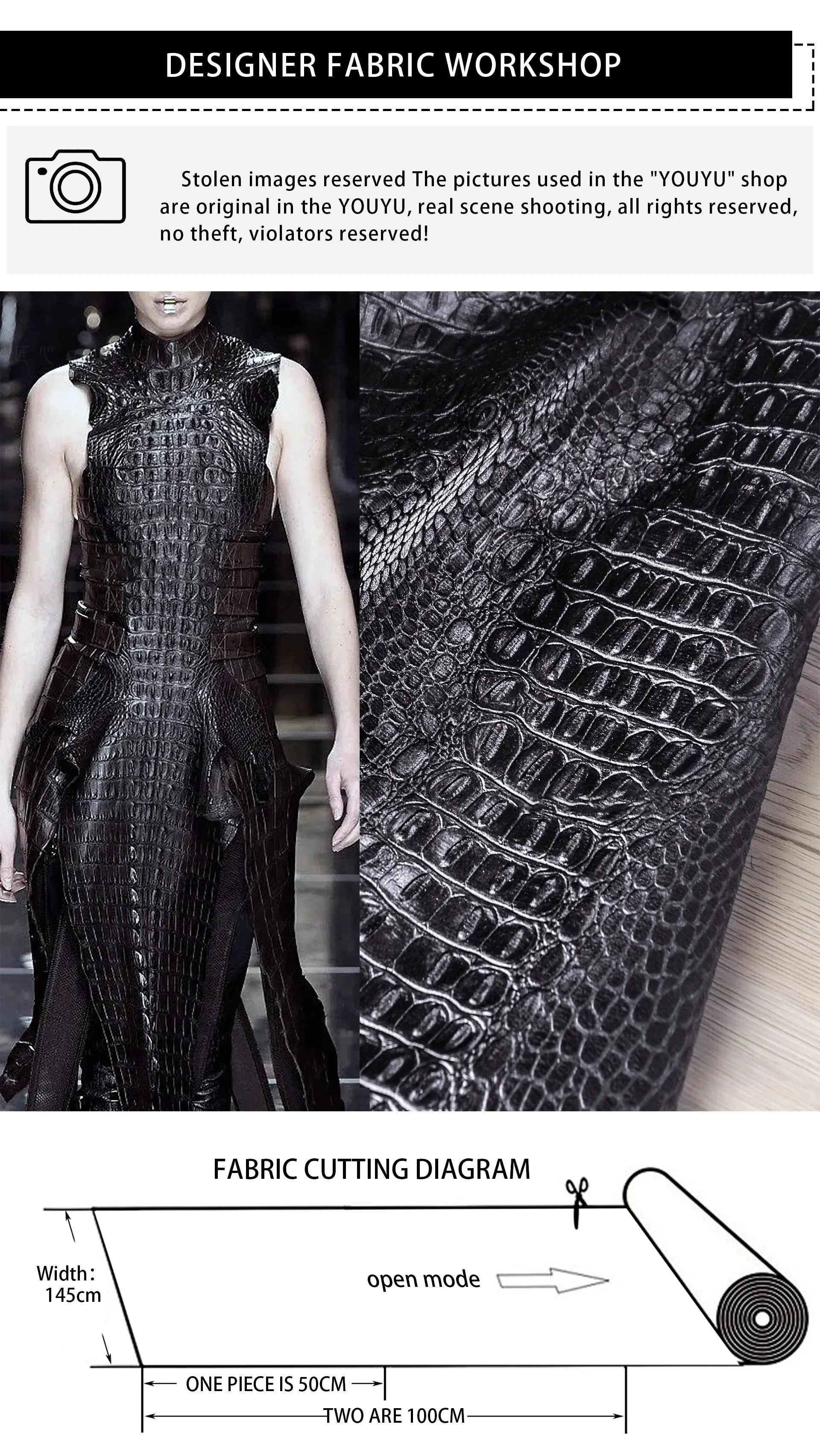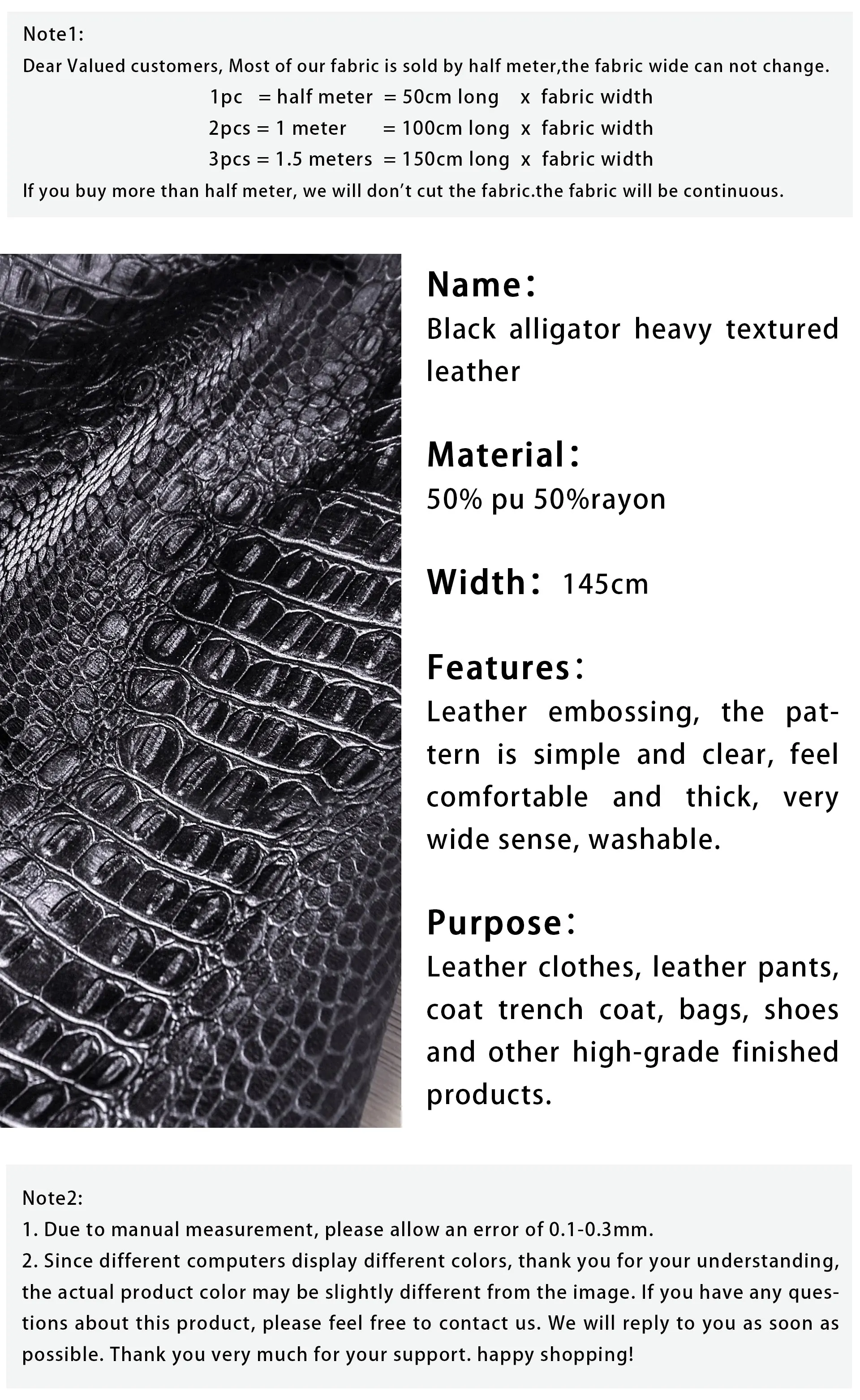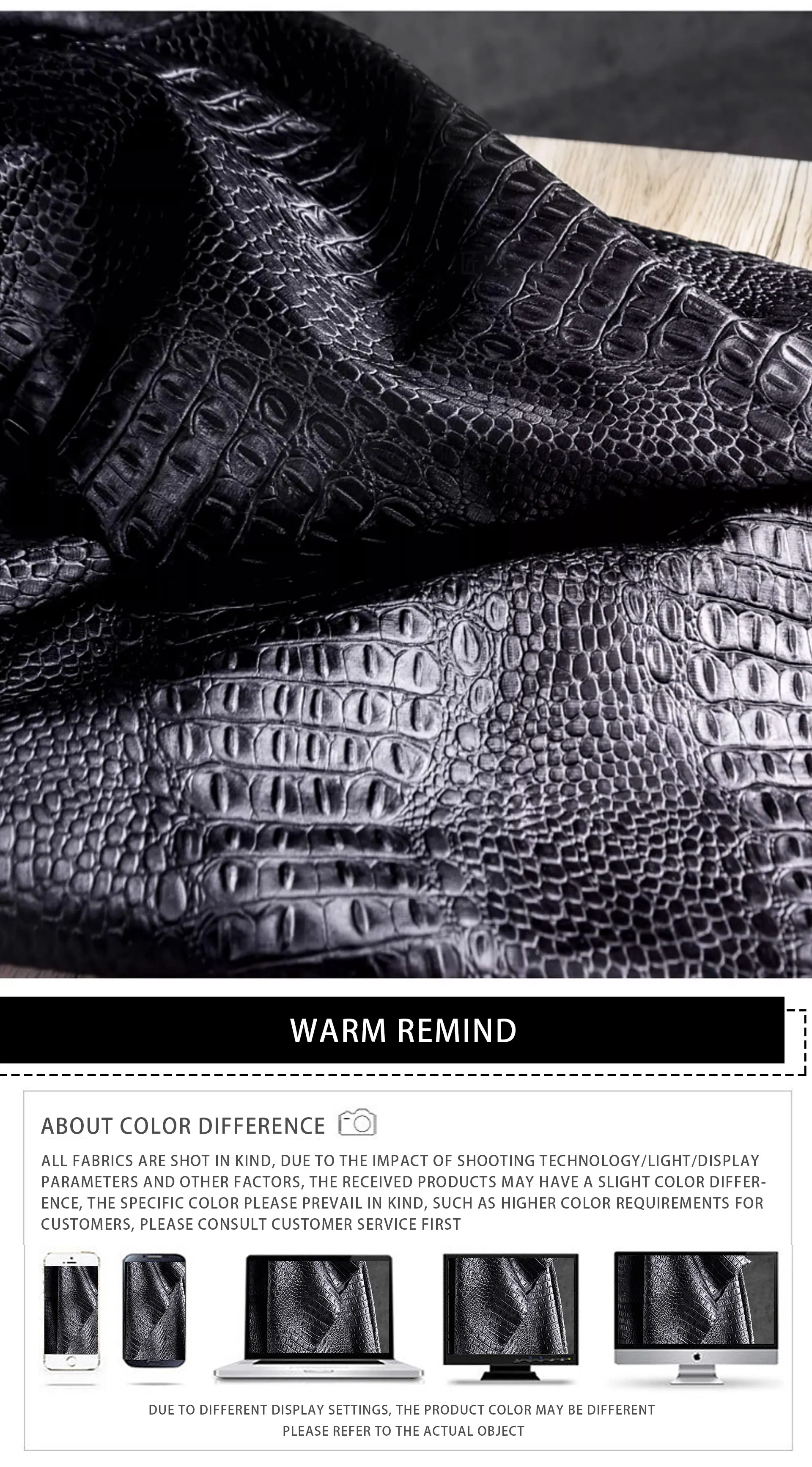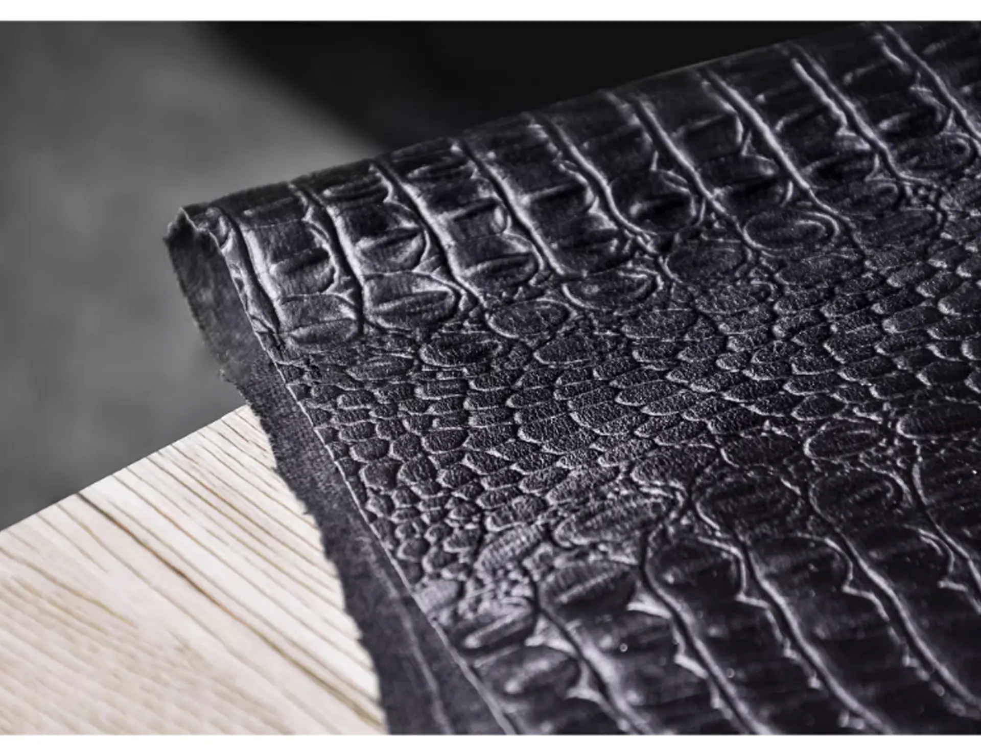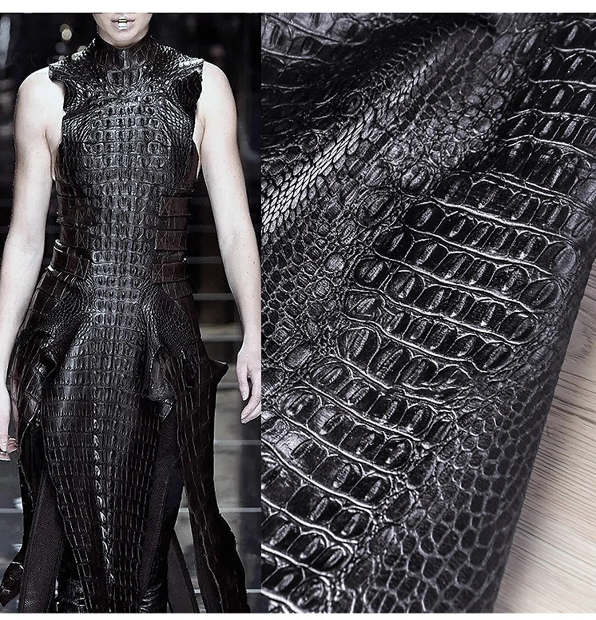 🖤 What it is - Luxurious black fabric featuring a three-dimensional crocodile texture, perfect for crafting leather coats, bags, and more.
