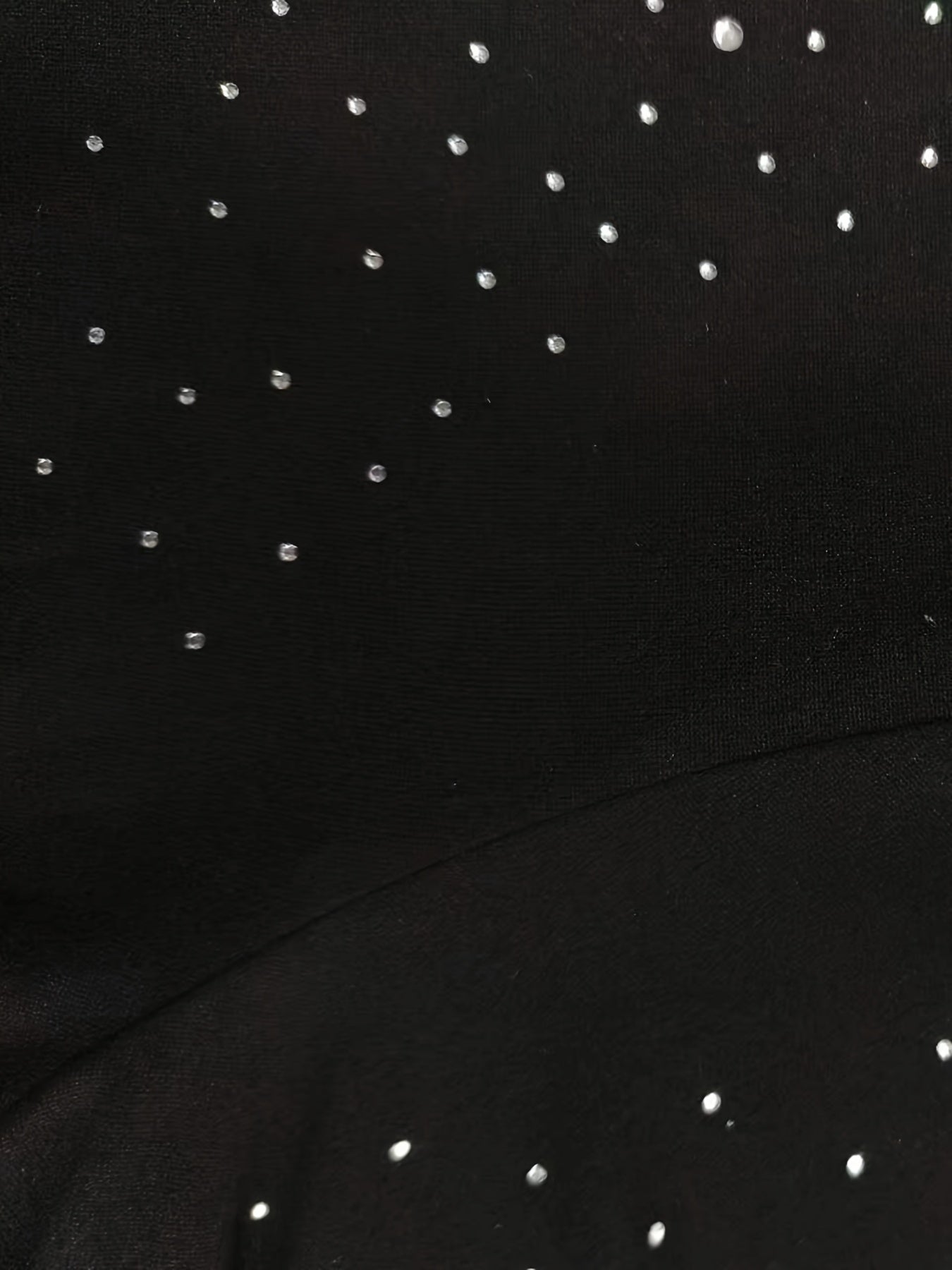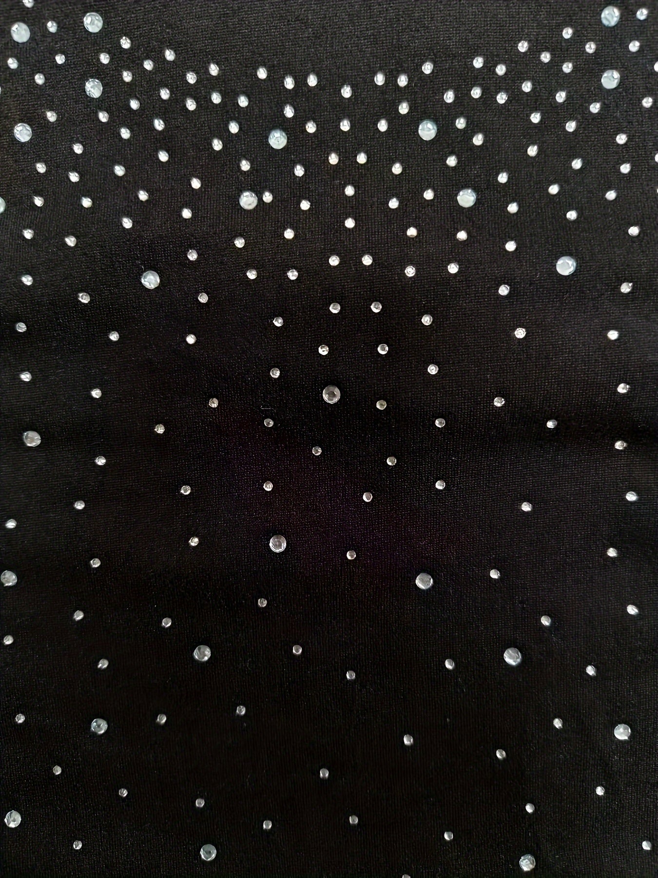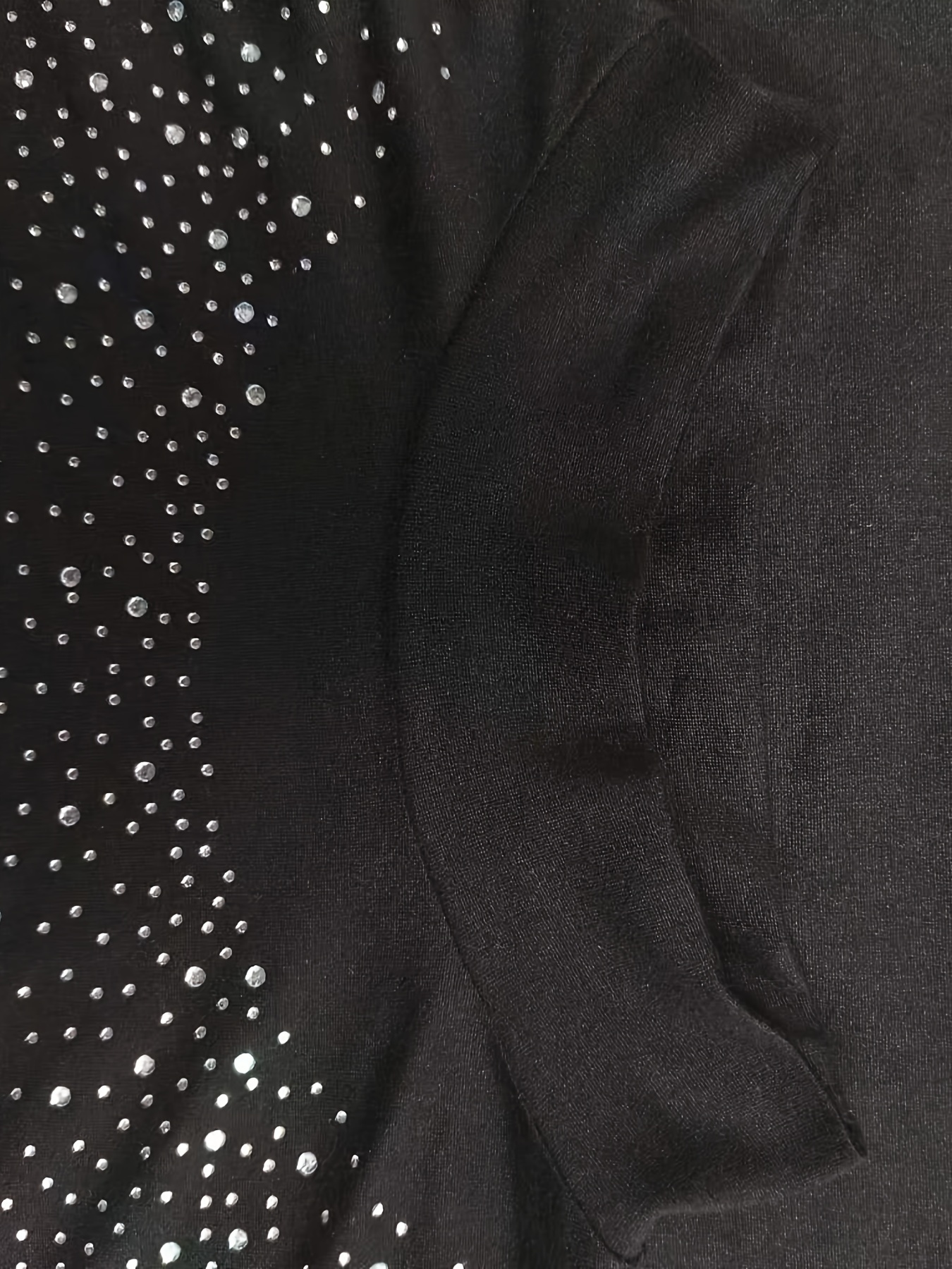 Plus Size Casual T-shirt, Women's Plus Rhinestone Decor Long Sleeve Mock Neck Slim Fit Medium Stretch T-shirt