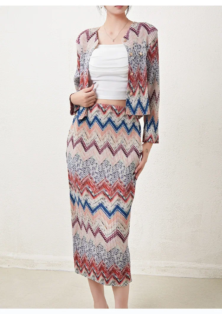 • Versatile Two-Piece Set :The set includes a short jacket and hip skirt, offering versatility in your wardrobe. You can mix and match with other pieces to create different looks.