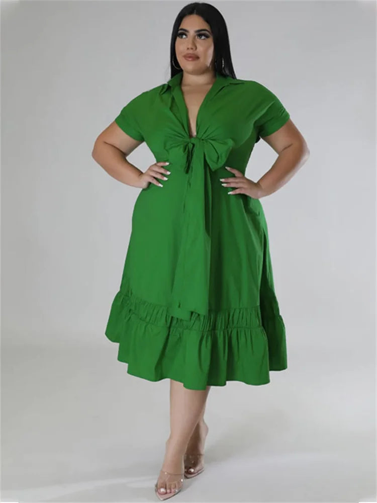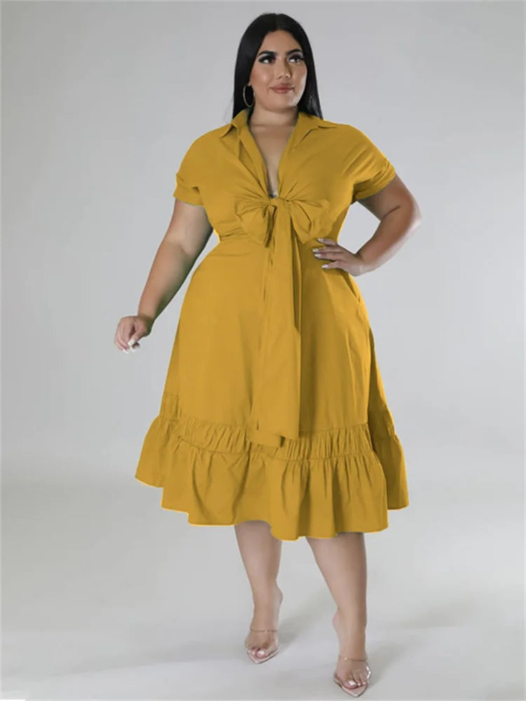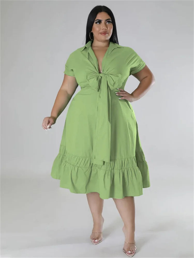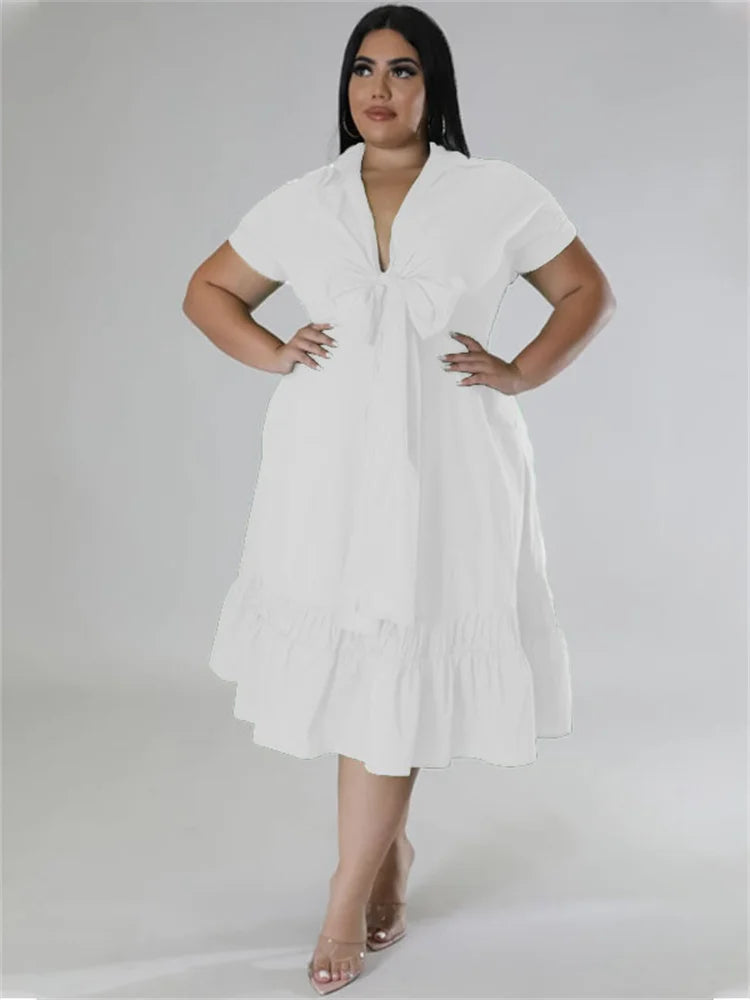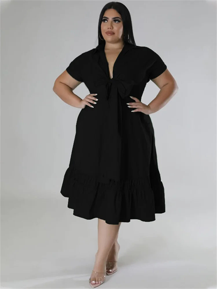 Plus Size Summer Maxi Dress with Ruffles and Bow Tie - Wholesale Dropshipping
