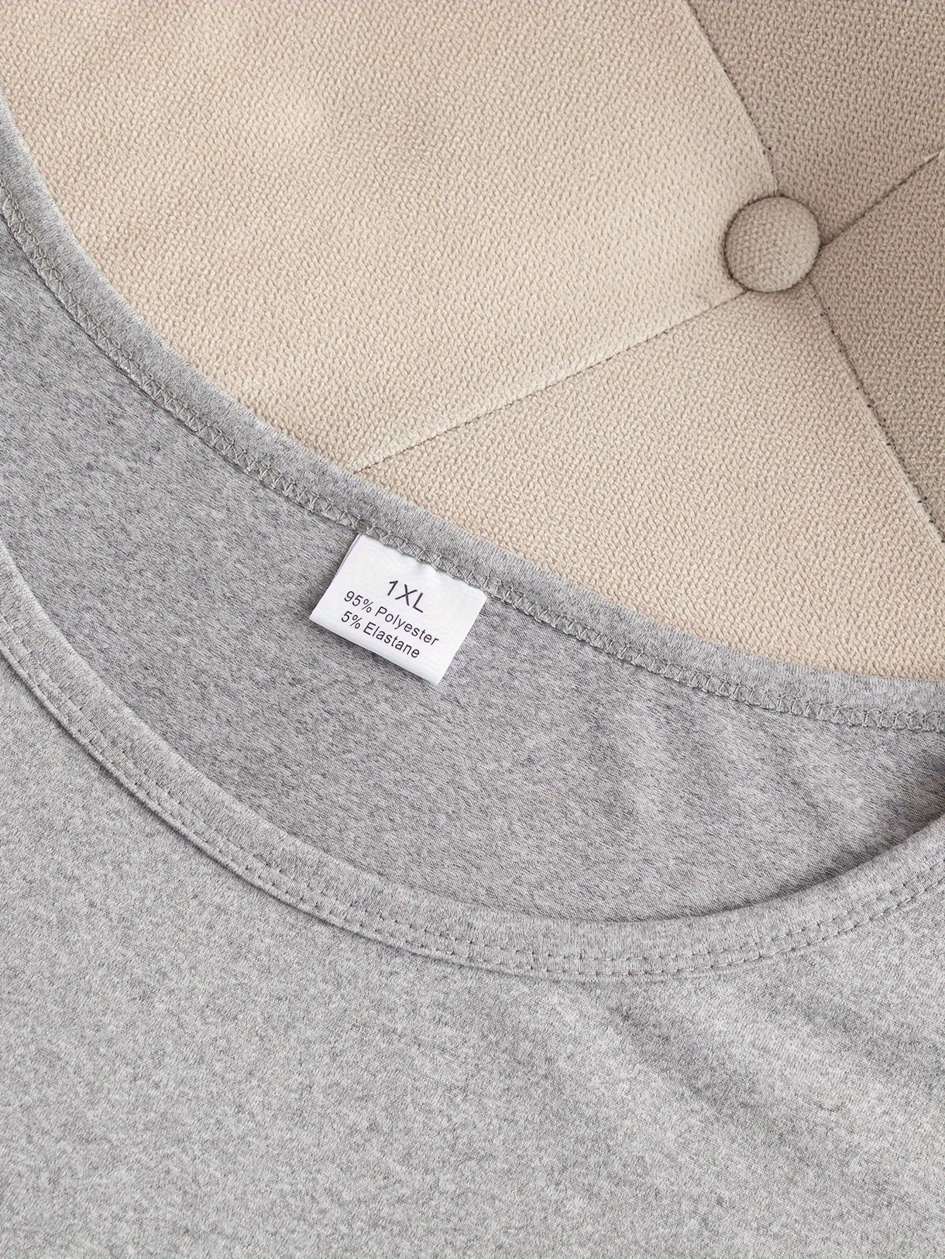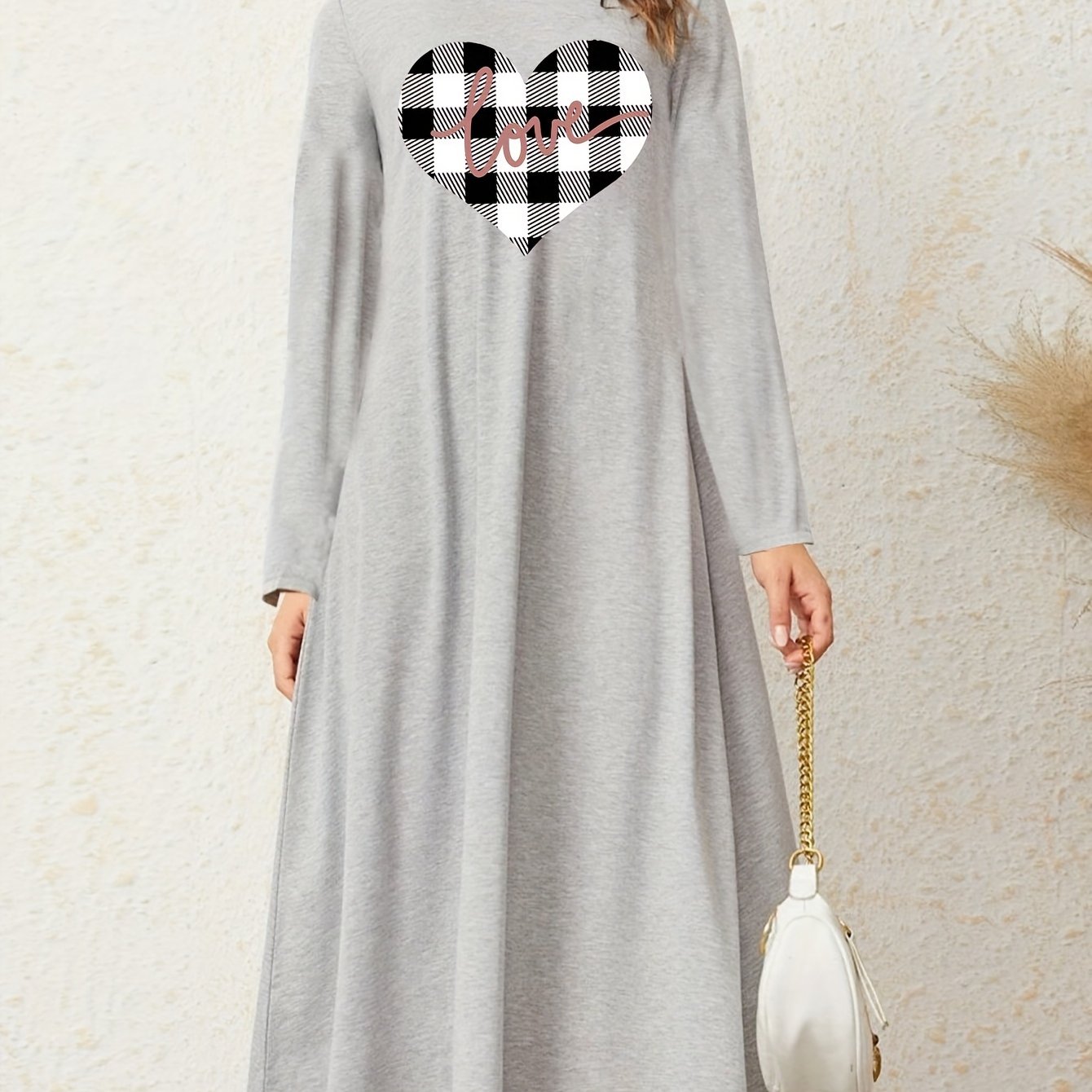 Plus Size Valentine's Day Casual Lounge Dress, Women's Plus Plaid Heart & Letter Print Long Sleeve Tee Nightdress