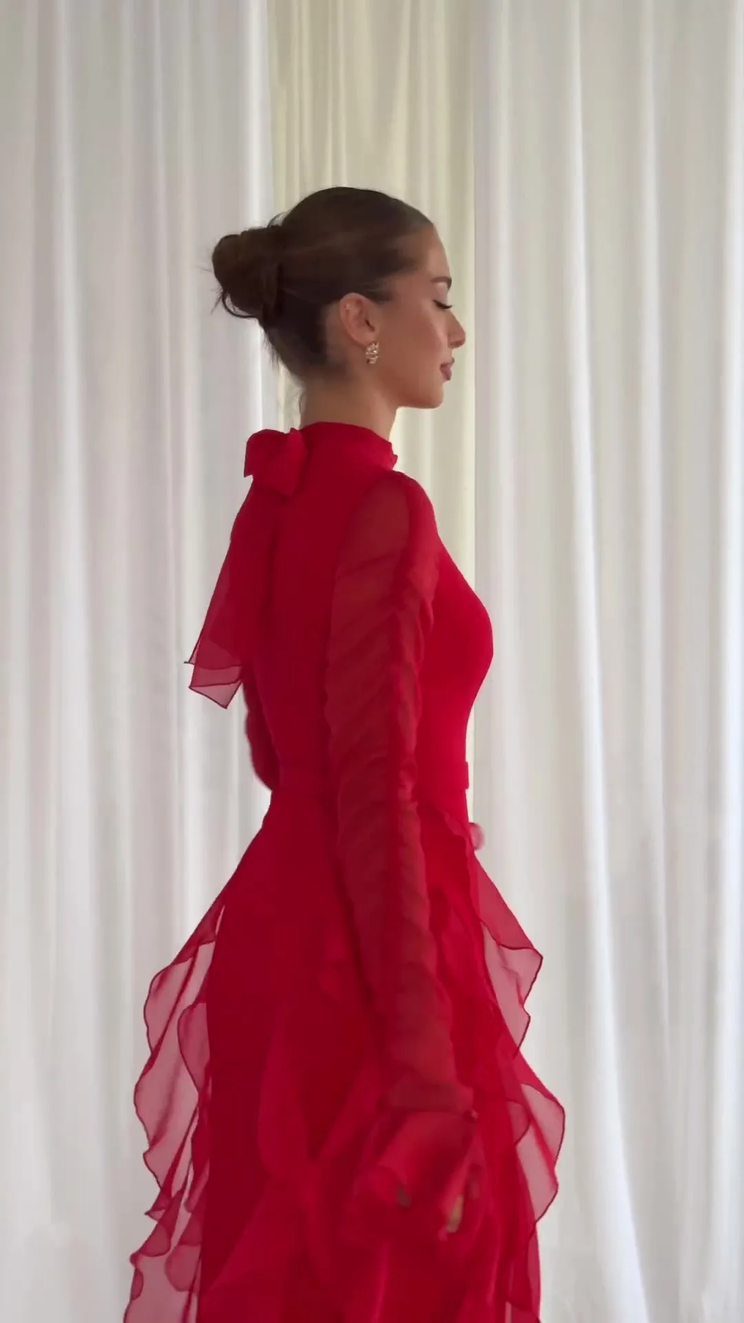 👗 What it is - Step into the enchanting world of palace elegance with a touch of autumn charm. This semi-turtleneck dress features a unique ruffled patchwork design inspired by the beauty of wind and snow.
