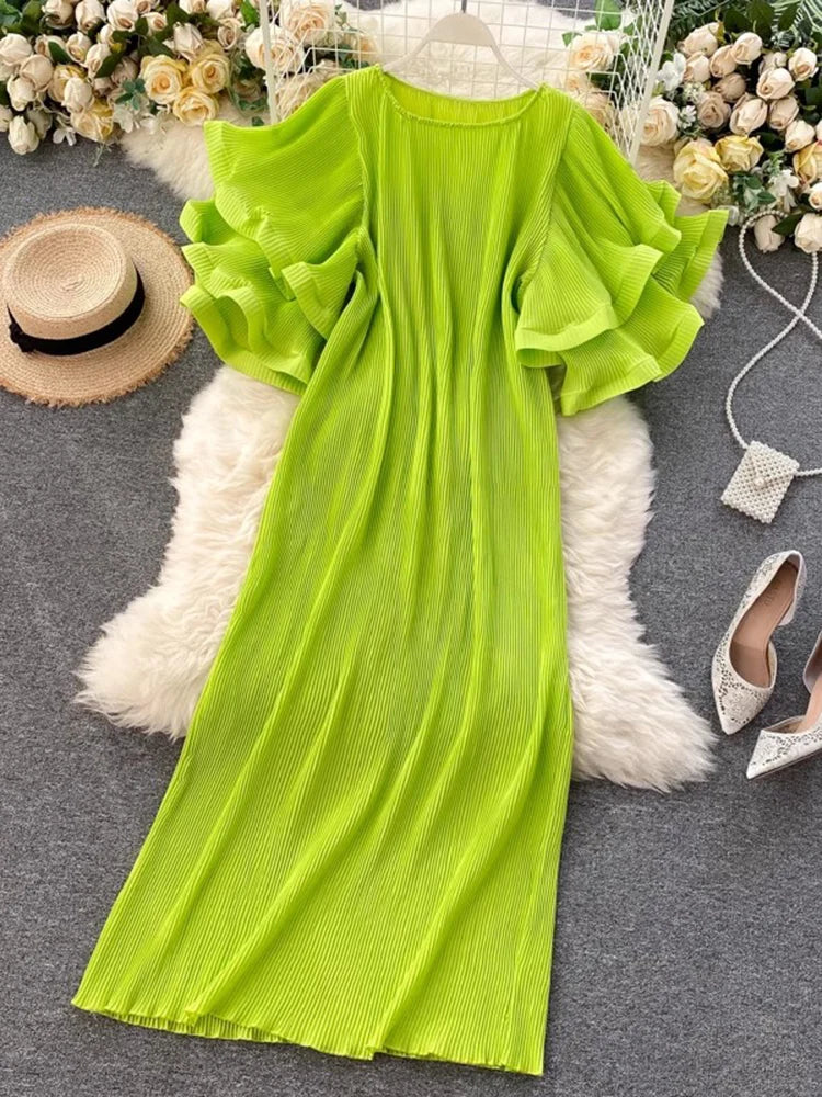 Elevate your wardrobe to new heights with our Spring 2024 Pleated Ruffles Dress! 🌸 What it is: Make a statement in this A-line silhouette with pleated ruffles, short sleeves, and a chic round collar. Available in a solid color, this medium-long dress is a must-have for the upcoming season. 🌷 Why you need it: - Stand out from the crowd with a unique design - Effortlessly stylish and comfortable to wear - Perfect for a casual day out or special occasions 🌼 Why you'll love it: - Flattering A-line cut enhances your silhouette - Trendy ruffles add a touch of feminine charm - Versatile piece that can be dressed up or down 🌺 How to use it: - Pair it with sandals for a casual look or heels for a dressed-up vibe - Add statement jewelry for a more glamorous touch 🌻 Guarantee: Elevate your style with our Spring 2024 Pleated Ruffles Dress and be the best-dressed wherever you go! Limited stock available - get yours now!