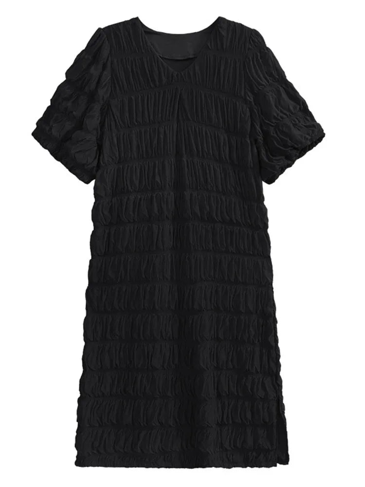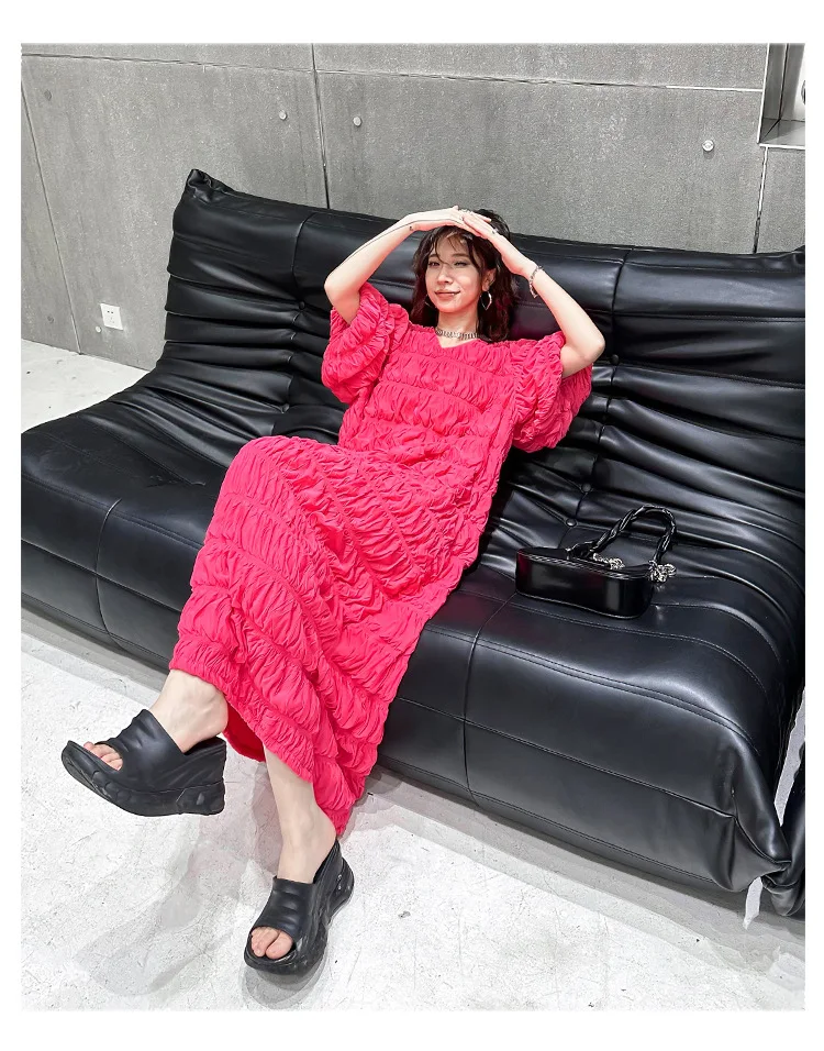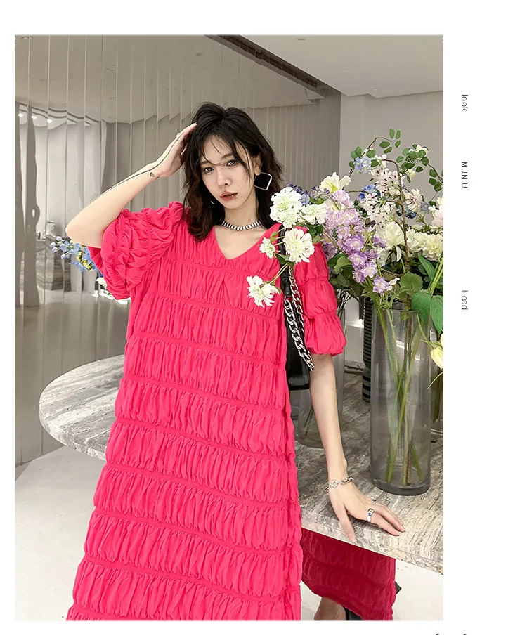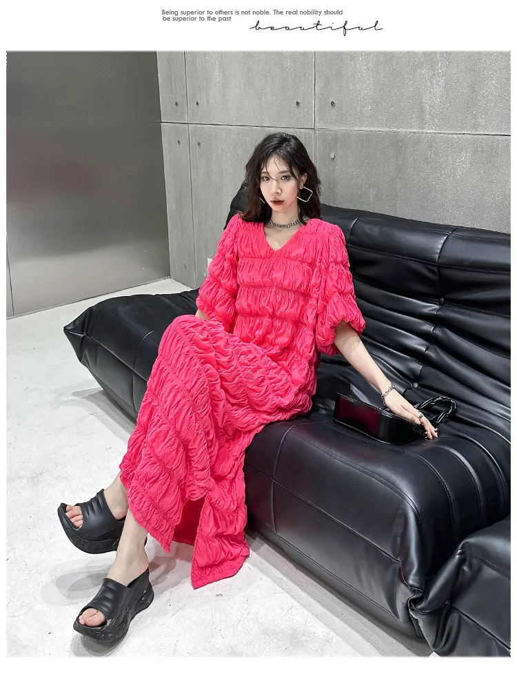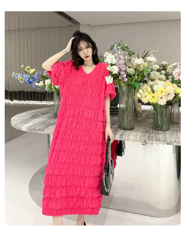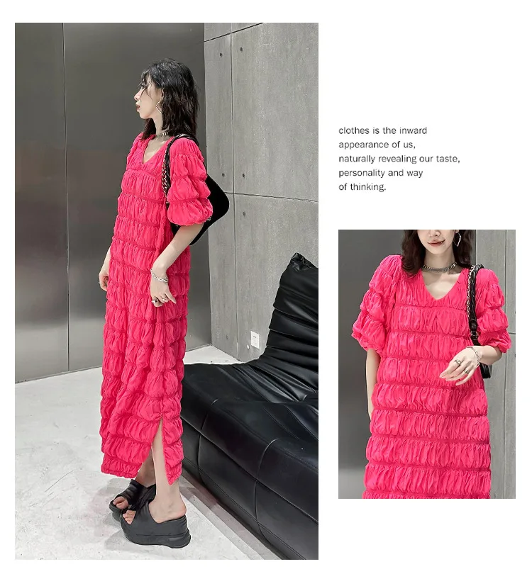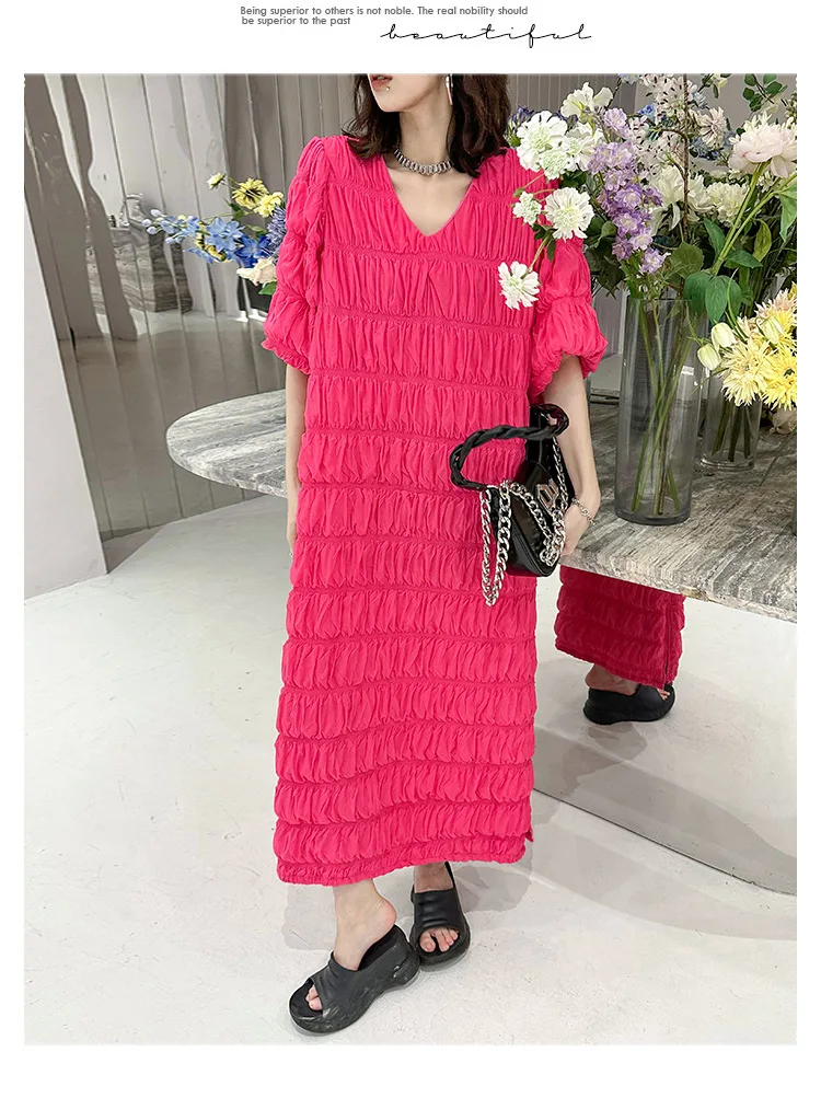Introducing the [EWQ] Temperament Beautiful Pleated Folds Black A-line V-neck Half Bubble Sleeve Long Dress for Women, the perfect addition to your wardrobe for the 2024 Spring Summer season. This dress boasts a one size fit, with measurements of Bust:116-136, Length:124, Shoulder:40, Sleeve: Waist:114-134 (unit:cm). Made with high-quality materials, this dress offers a comfortable and stylish fit for any body type. The pleated folds add a touch of elegance, while the V-neck and half bubble sleeves create a flattering silhouette. Whether you're on the go or attending a special event, this dress is a must-have. Don't miss out on this limited time offer and add this best-selling dress to your collection today!