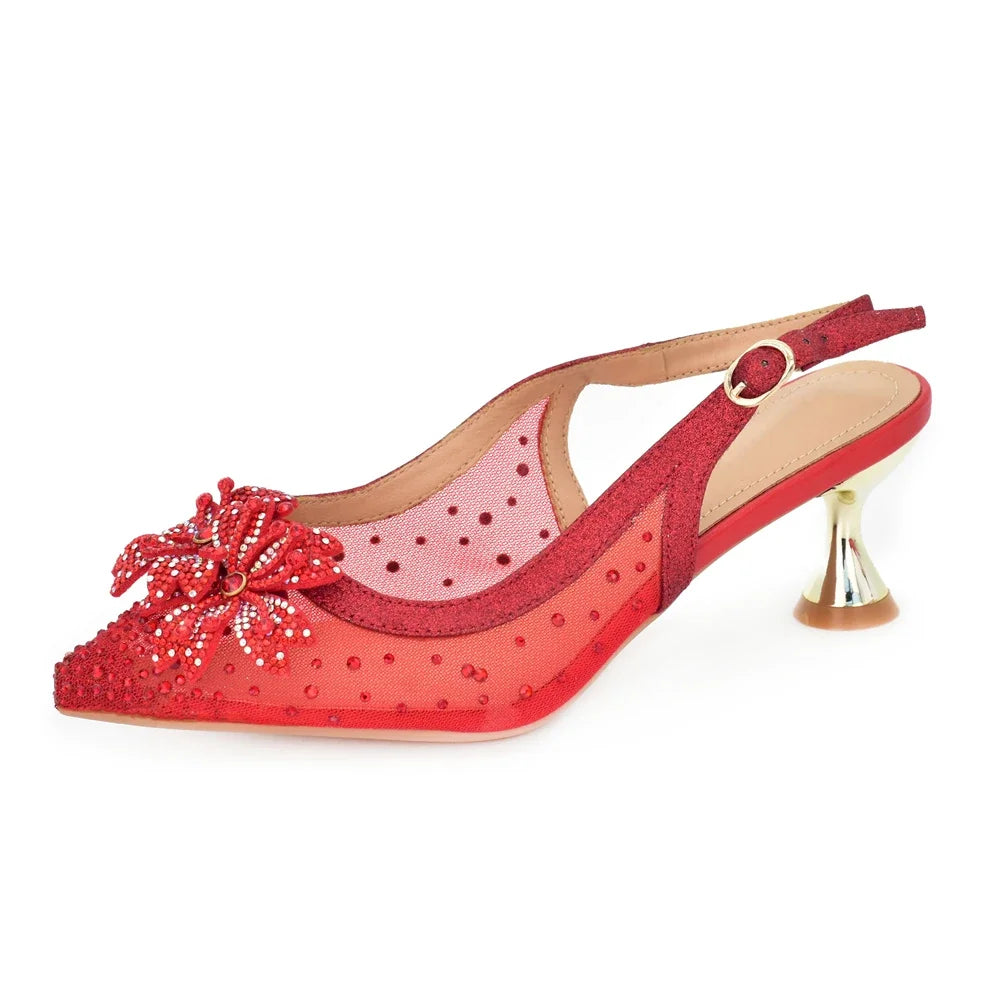 Introducing the latest African Women Wedding Shoes, designed for the modern bride who wants to make a statement on her special day. These Italian made shoes are adorned with sparkling rhinestones and feature a pointed toe for a touch of elegance. The high heels provide the perfect balance of style and comfort, making them the ideal choice for any wedding or party. With these shoes, you'll not only solve the problem of finding the perfect footwear, but also gain confidence and sophistication. Be the center of attention with these premium, limited time offer shoes that are exclusive to our store. Don't miss out on this best-selling product that is perfect for any occasion.