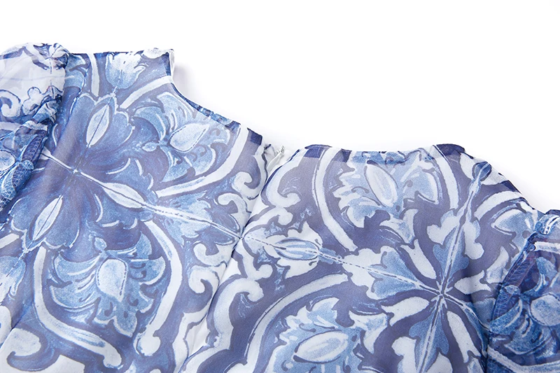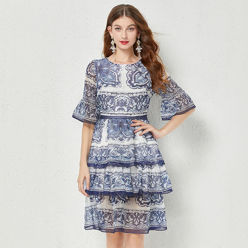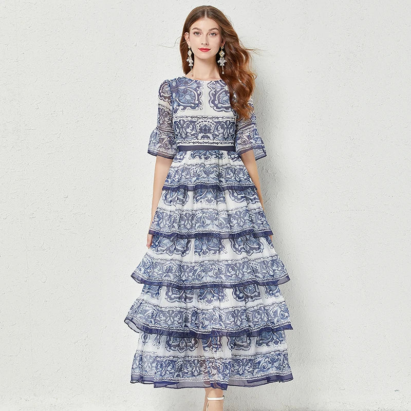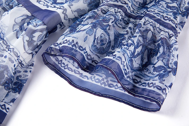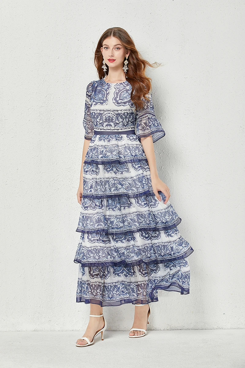 Introducing our newest addition to the 2023 summer collection - the stunning 'Gorgeous Blue And White Porcelain Printed Cascading Ruffles Maxi Dress'. Made from premium chiffon fabric, this dress features 5 layers of cascading ruffles and flare sleeves, giving you a perfect fit and a flattering silhouette. It's the perfect dress for any occasion, whether you're on the go or attending a special event. Limited time offer, so don't miss out on this best seller. Order now and enjoy free shipping to most countries. Get yours today and stand out in this exclusive and unique dress.