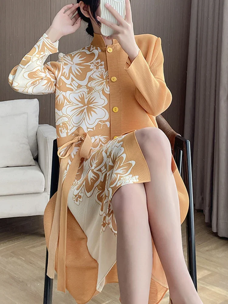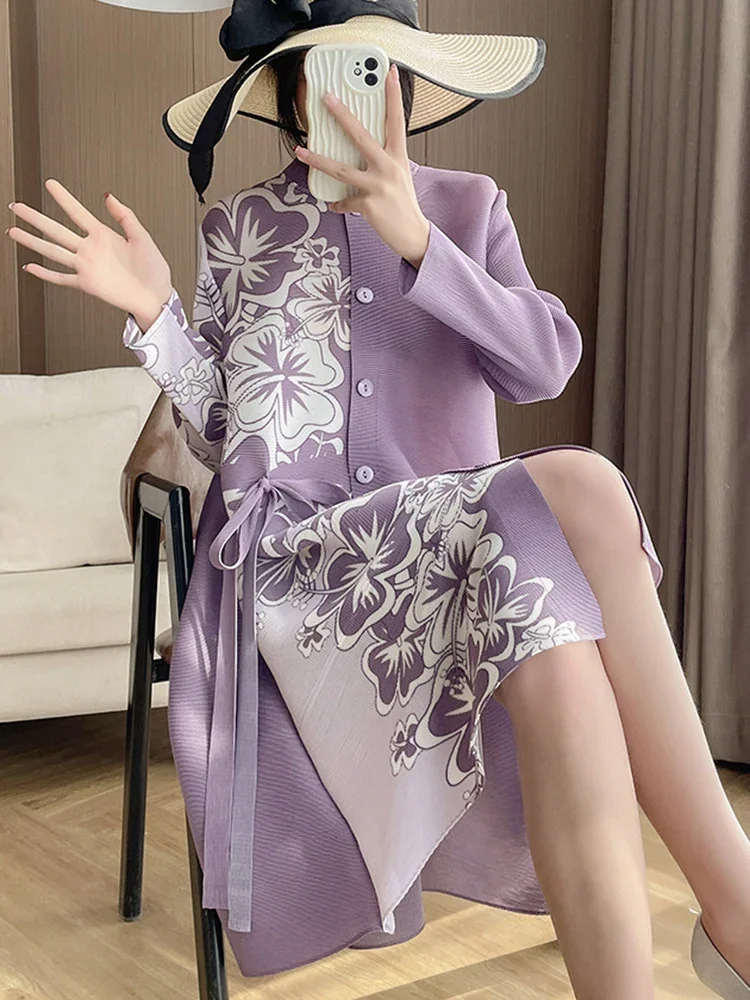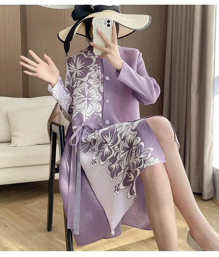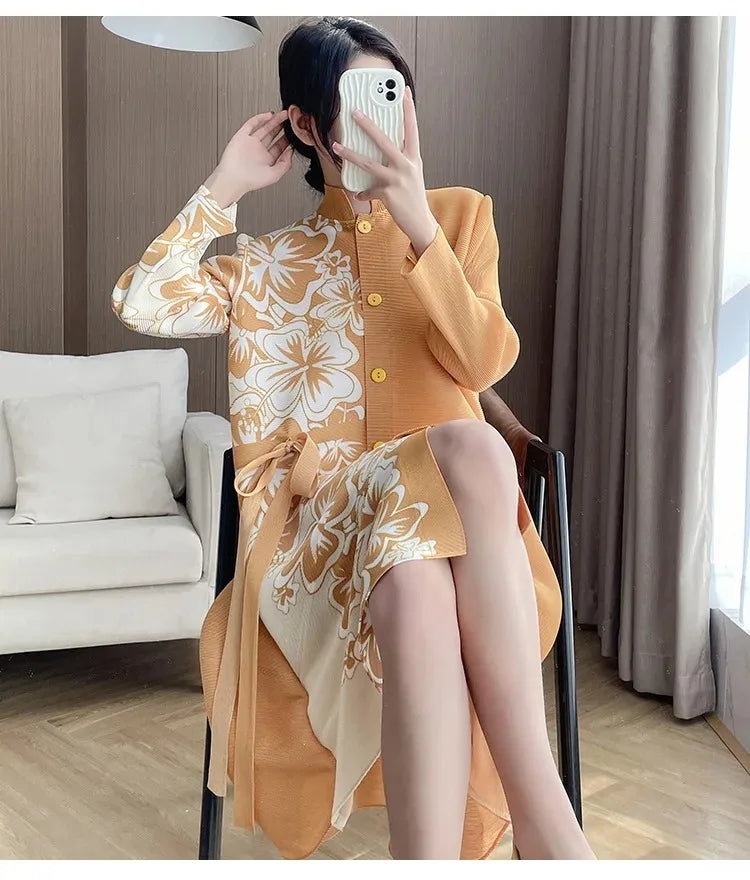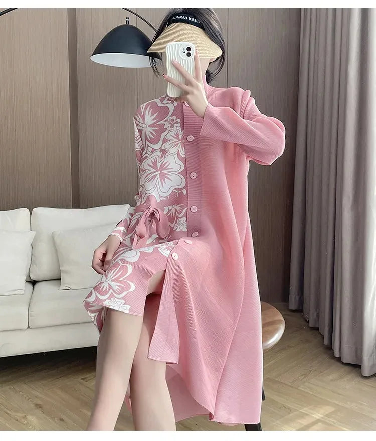 Introducing the ANLAN 2024 New Miyake Pleated Print Dress, the perfect addition to your wardrobe for any occasion. This fashion-forward dress features a single-breasted design, full sleeves, and a medium-long length, making it a versatile piece for both evening parties and everyday wear. The unique pleated print adds a touch of elegance, while the single-breasted closure provides a flattering fit for all body types. Made with premium materials, this dress offers both comfort and style. With a shoulder measurement of 40cm and a bust range of 74-120cm, this dress is designed to fit most body sizes. Don't miss out on this limited time offer and add this best-selling dress to your collection today!