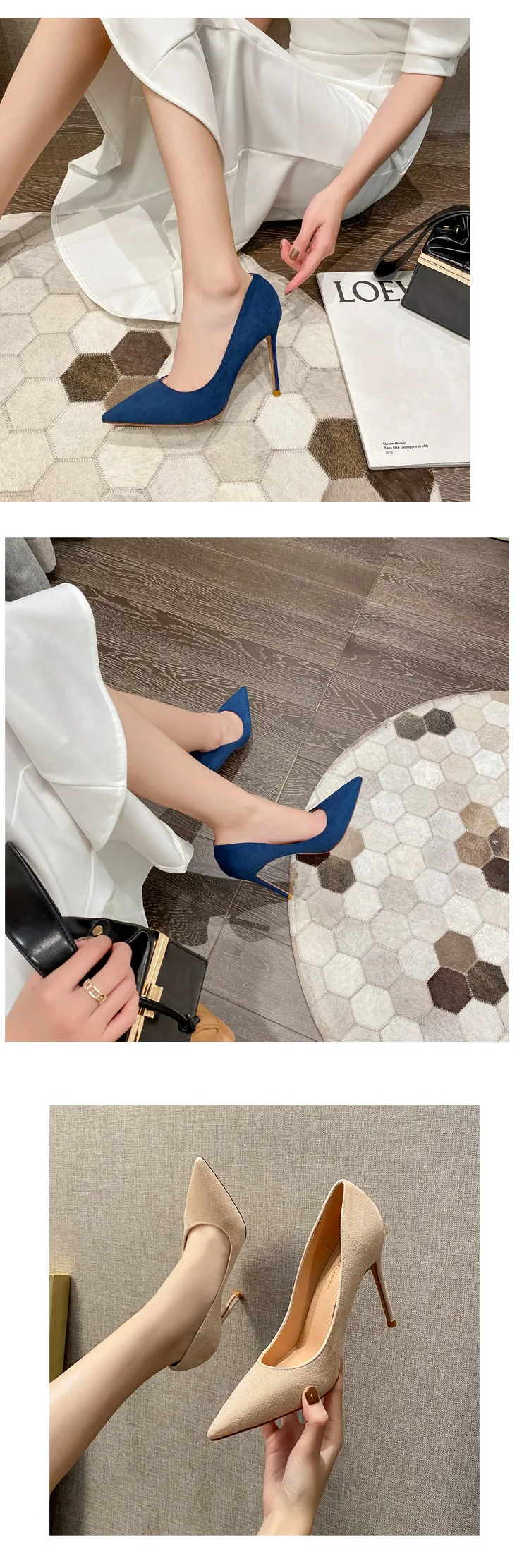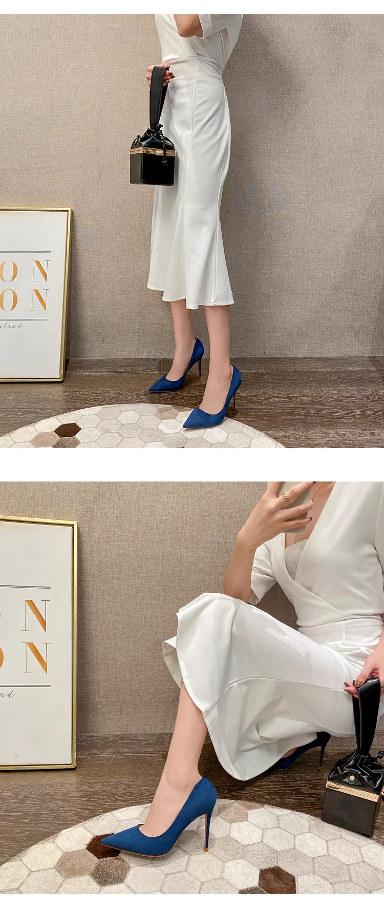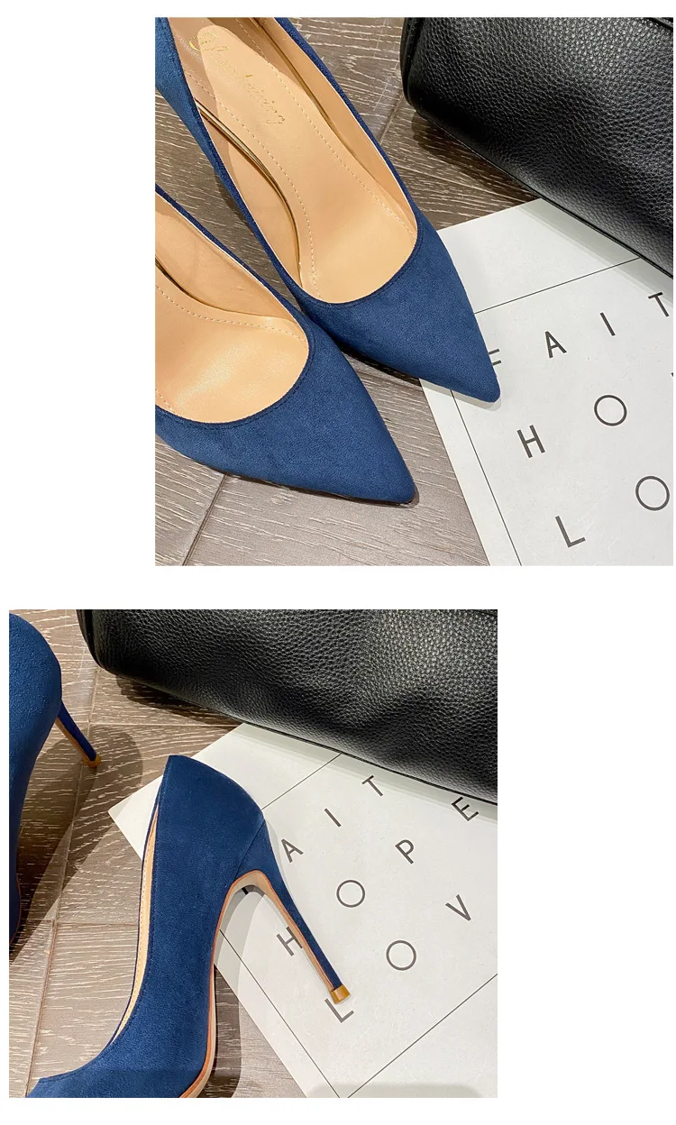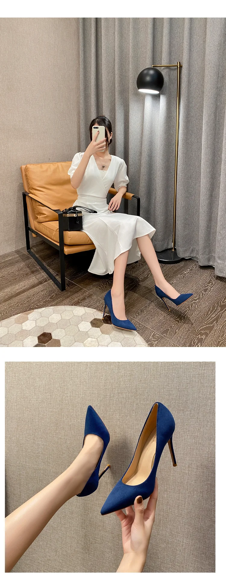 Introducing our newest addition to our collection - the 6cm Fashion New Thin High Heel Flock Pointed Toe Pumps. These stylish and elegant pumps are perfect for any occasion, from a banquet to a night out on the town. Available in a beautiful blue color, these shoes are designed to make a statement. With a comfortable 6cm heel and a pointed toe, these pumps provide the perfect balance of fashion and functionality. Made with premium materials, these shoes are a must-have for any fashion-forward woman. Don't miss out on this limited time offer and get your perfect fit today!