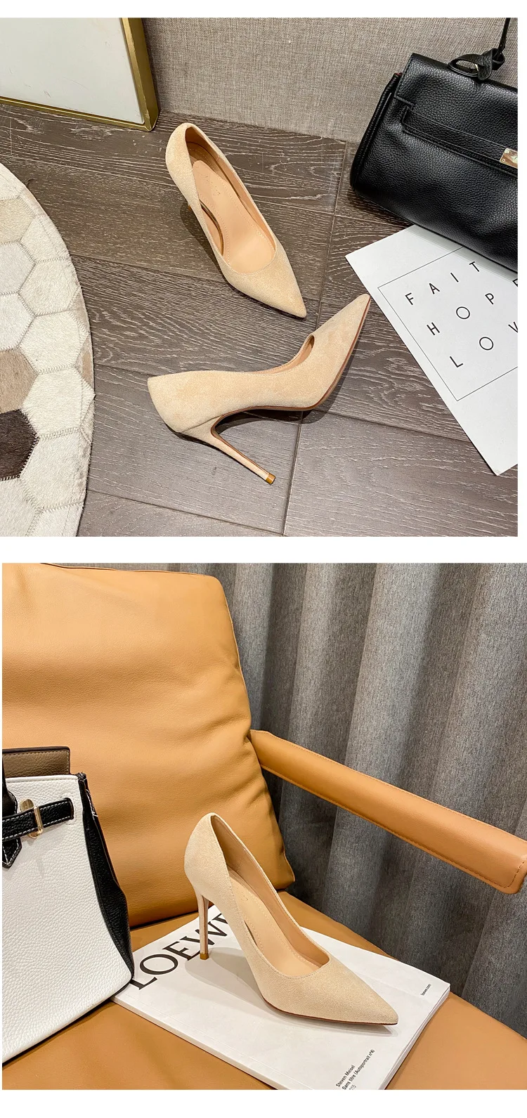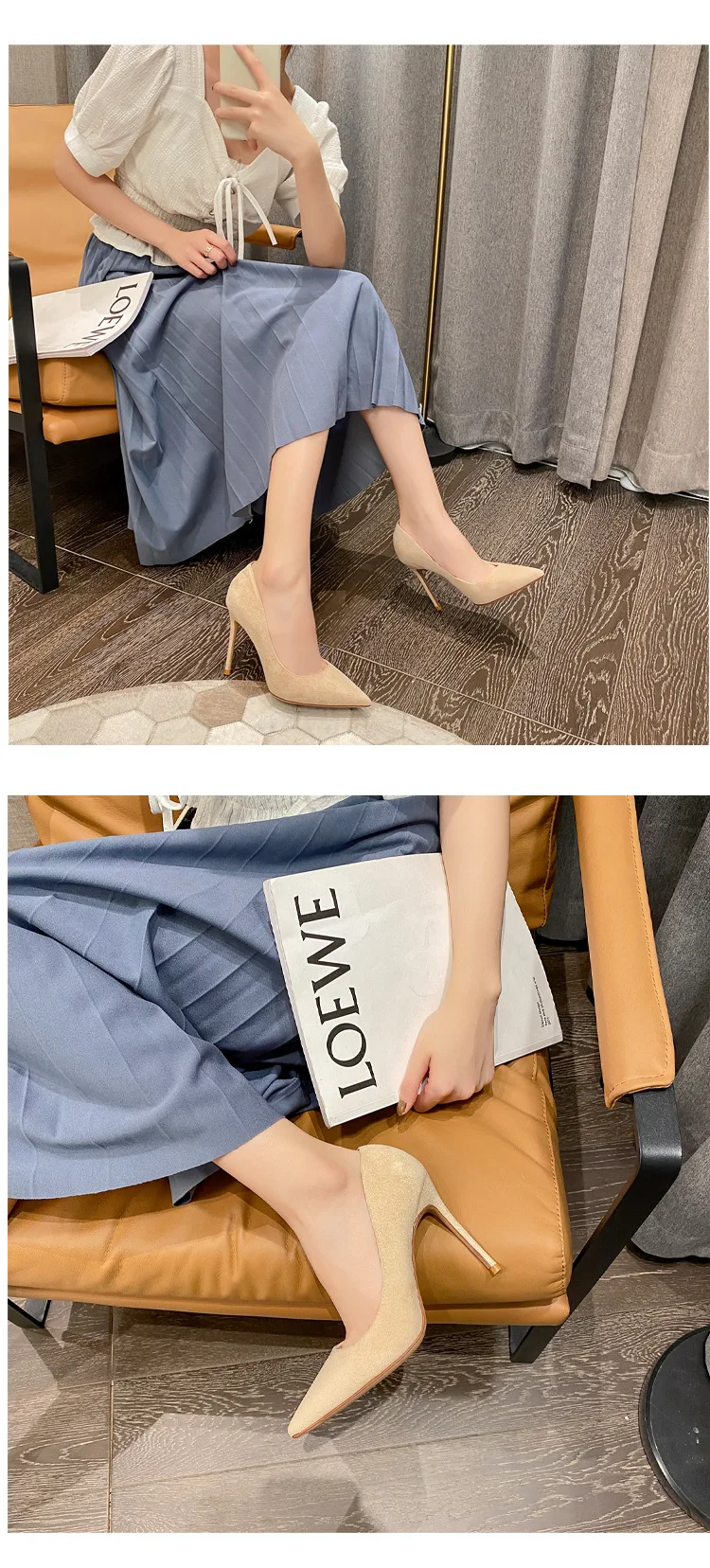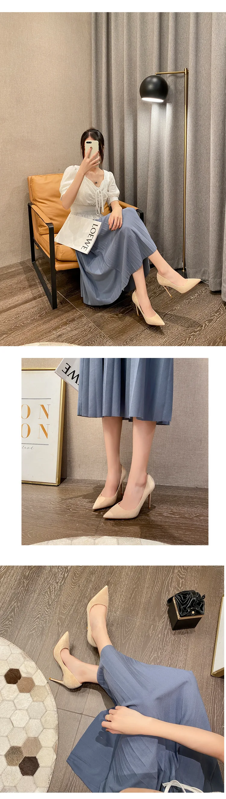 Introducing our newest addition to our collection - the 6cm Fashion New Thin High Heel Flock Pointed Toe Pumps. These stylish and elegant pumps are perfect for any occasion, from a banquet to a night out on the town. Available in a beautiful blue color, these shoes are designed to make a statement. With a comfortable 6cm heel and a pointed toe, these pumps provide the perfect balance of fashion and functionality. Made with premium materials, these shoes are a must-have for any fashion-forward woman. Don't miss out on this limited time offer and get your perfect fit today!