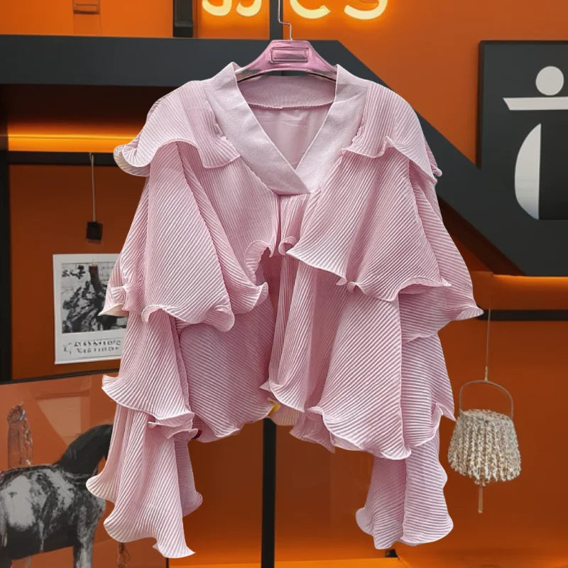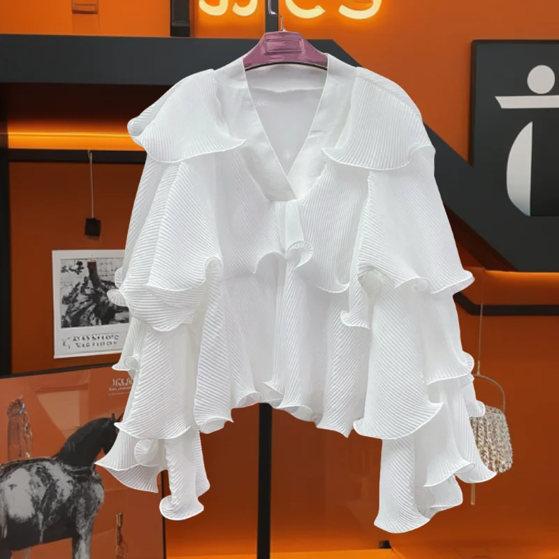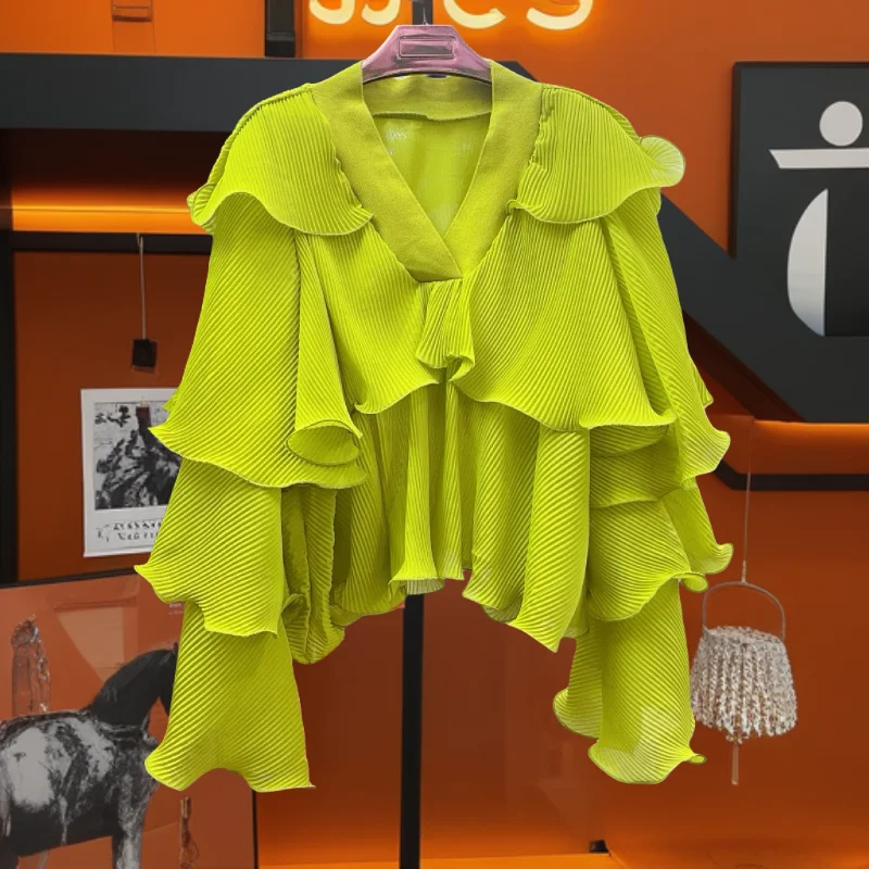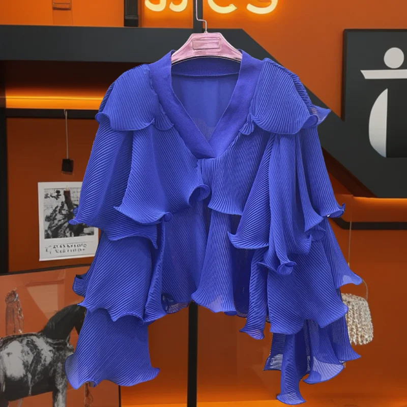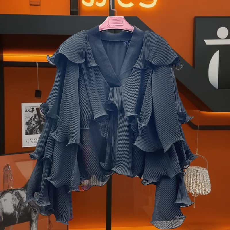 Introducing our GVUW Spliced Ruffles Shirt, the perfect addition to your wardrobe. Made with premium materials and a loose, comfortable fit, this shirt is designed to solve the problem of finding a stylish and practical top for the summer. The V-neck and full sleeves add a touch of elegance, while the niche design and solid color make it a standout piece. Don't miss out on this exclusive and limited time offer, and be the best dressed with our best-selling 17G6005 shirt. Perfect for any occasion, this pullover clothing is a must-have for the on-the-go woman in 2024. Upgrade your style with GVUW.