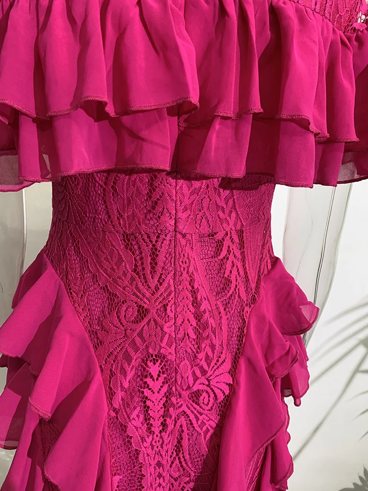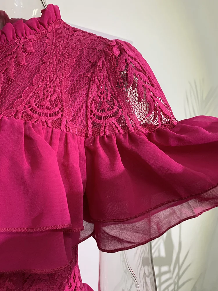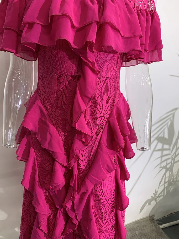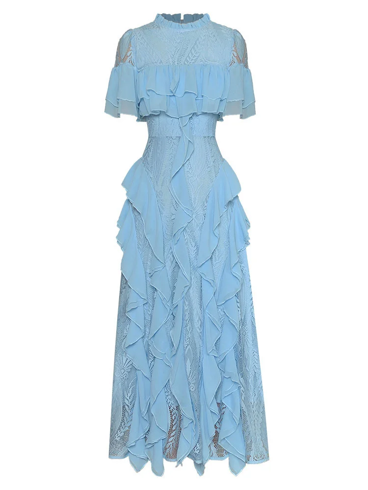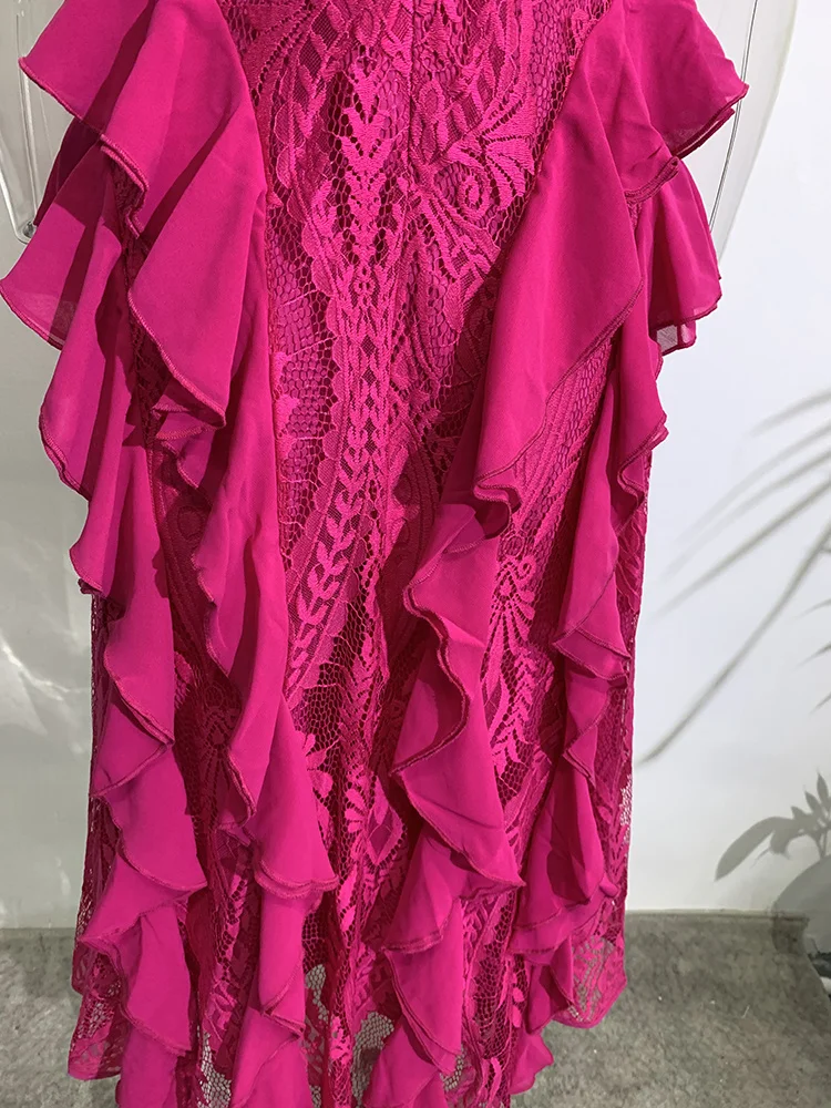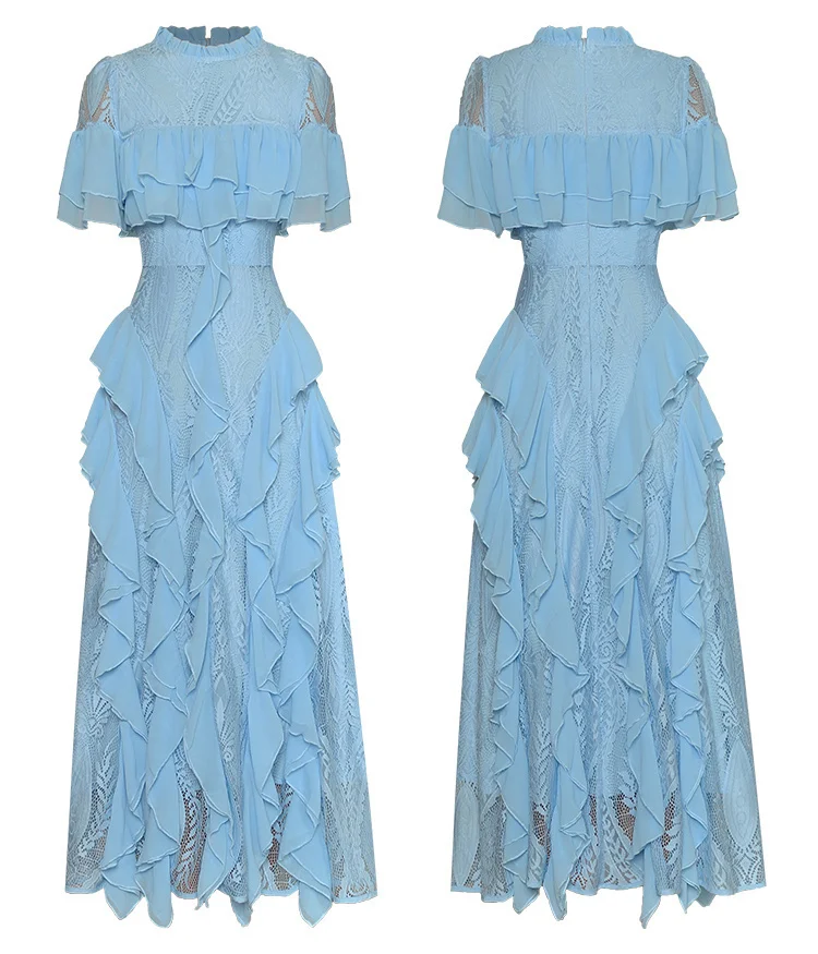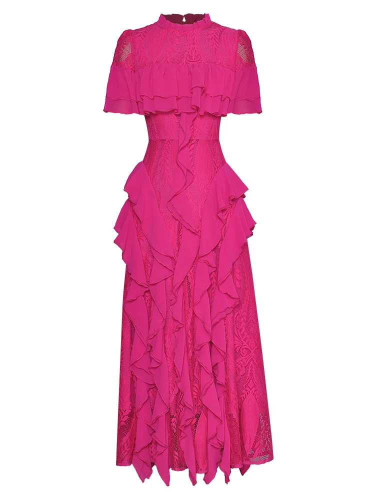 Introducing our IEQJ Fashion Designs Hollow Out Ruffled Evening Dress, the perfect choice for any special occasion. Made with high-quality materials, this dress features a stunning ruffled design and a sleek O-neckline, adding a touch of elegance to your look. The short sleeves make it perfect for the summer season, keeping you cool and comfortable all day long. Available in sizes S-2XL, our dress is designed to fit perfectly and flatter your figure. With its unique design and impeccable craftsmanship, our dress is a must-have for any fashion-forward woman. Don't miss out on this limited-time offer and elevate your wardrobe with our premium evening dress.