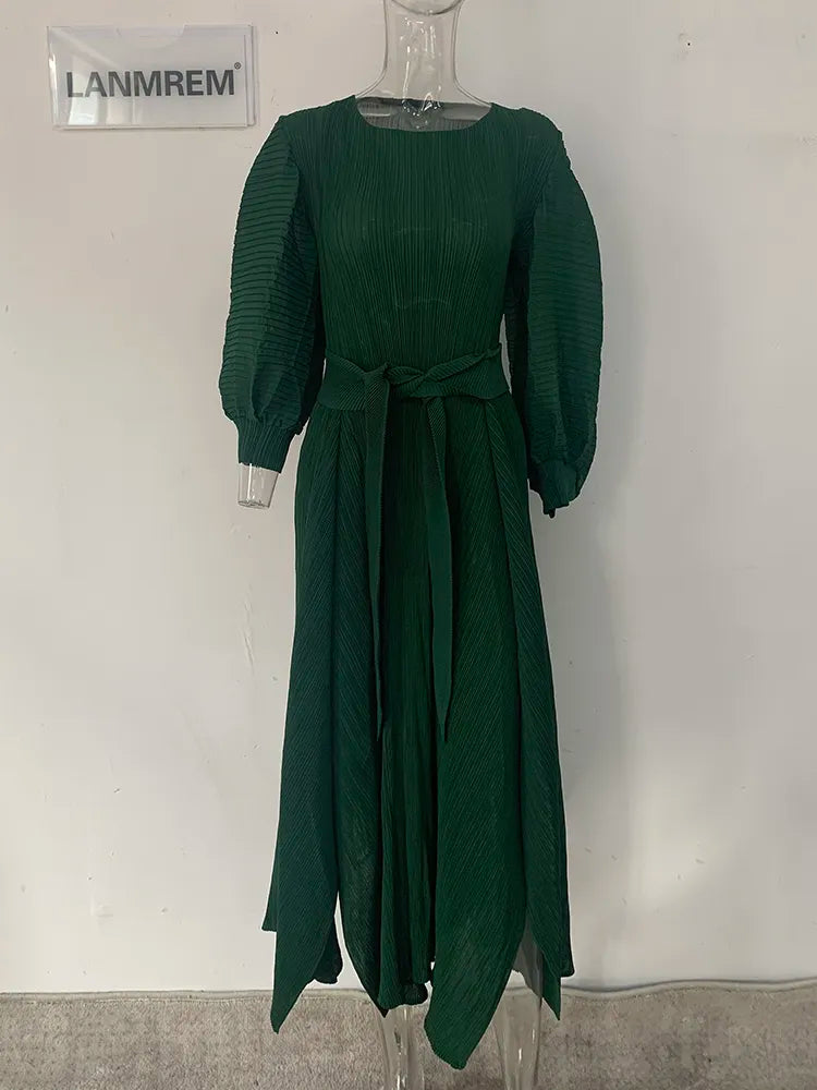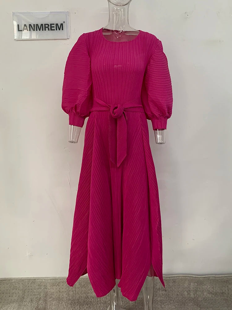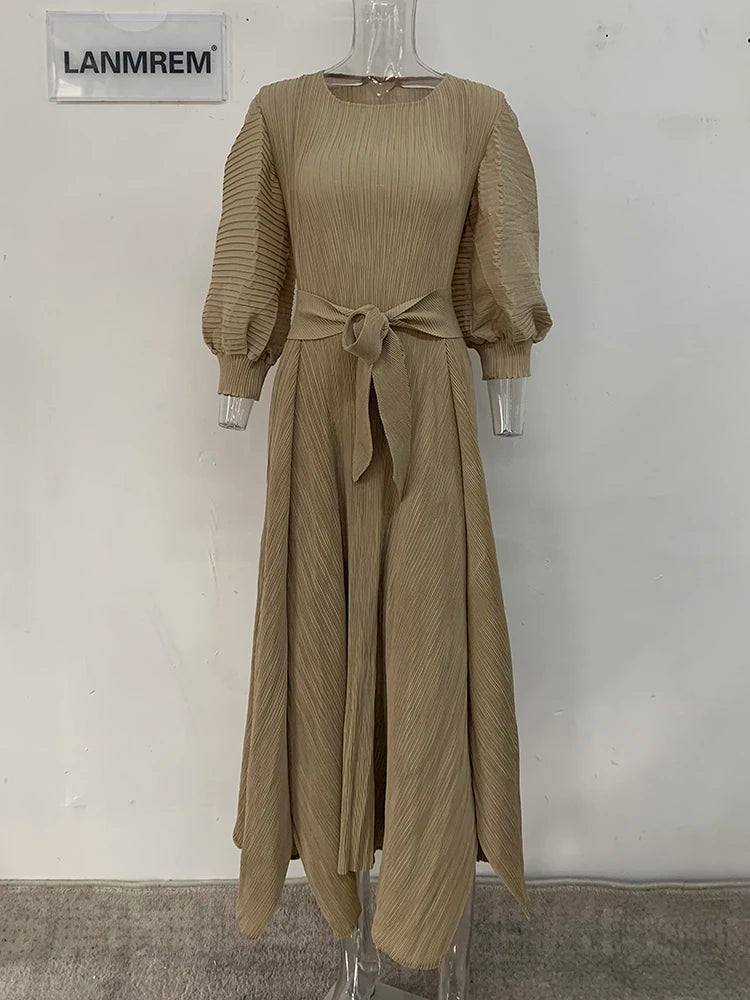 Introducing the LANMREM Maxi Dress - a must-have for any fashion-forward woman. This stunning dress boasts lantern long sleeves, a high waist belt, and pleated details for a flattering and elegant look. Perfect for any party or special occasion, this dress is made from high-quality materials and is designed to fit women of all sizes. With its versatile one-size design, you can easily dress it up or down for any occasion. Plus, the beautiful spring 2024 collection brings a touch of freshness to your wardrobe. Don't miss out on this limited time offer and add the LANMREM Maxi Dress to your collection today!