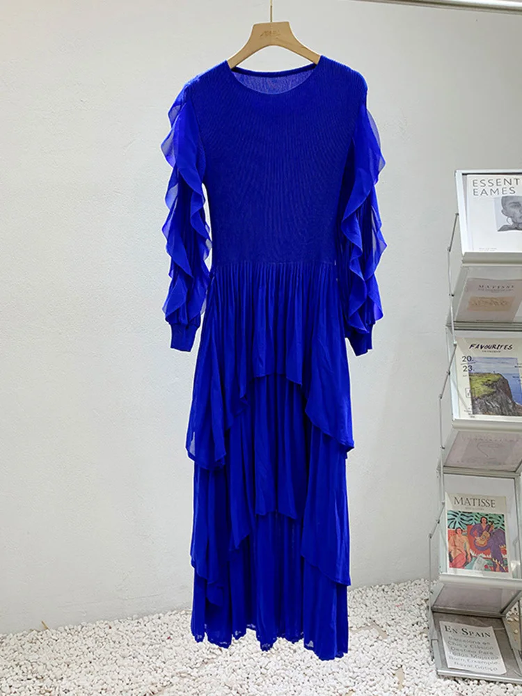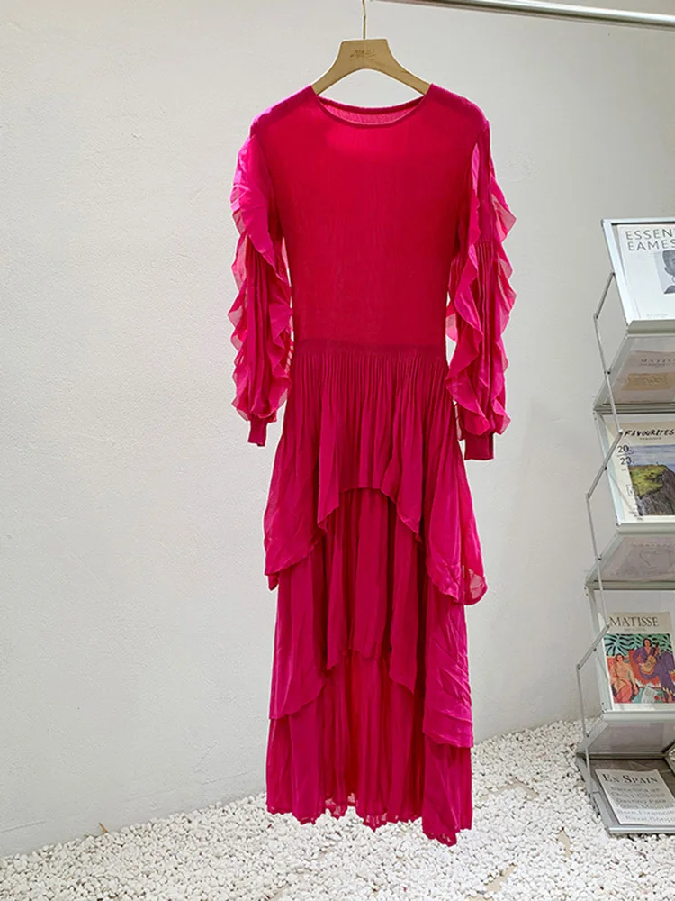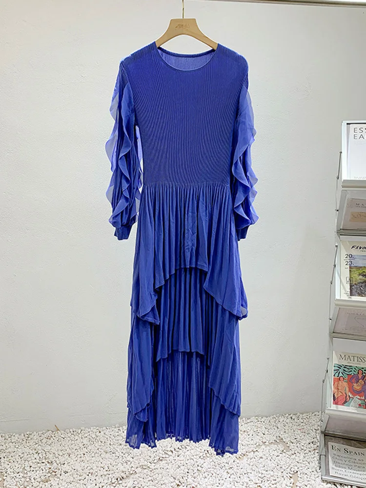 2. Trendy Design: Layered pleated dress with ruffled sleeves and solid color for a stylish and fashionable look.