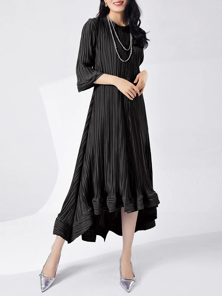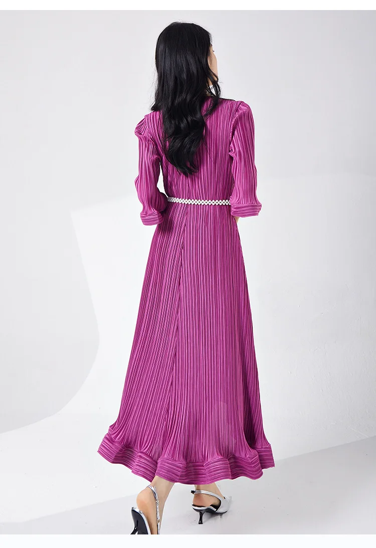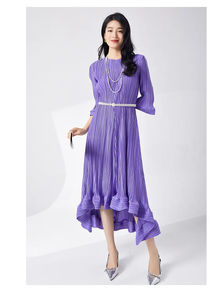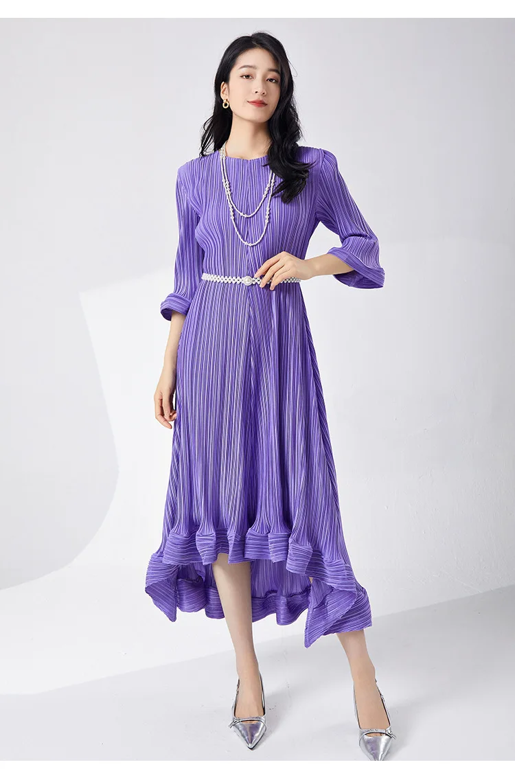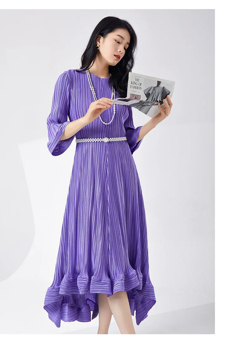 Introducing our GVUW Pleated Fashion Dress - the perfect addition to your wardrobe. This elegant dress features a flattering A-line silhouette, flare sleeves, and an irregular ruffled hemline for a touch of feminine charm. The included belt cinches at the waist to accentuate your figure. Made with premium materials, this dress is designed to be comfortable and stylish for any occasion. It's a best seller and a must-have for any fashion-forward woman. Hurry, this exclusive design is only available for a limited time. Get yours now and stand out in style!