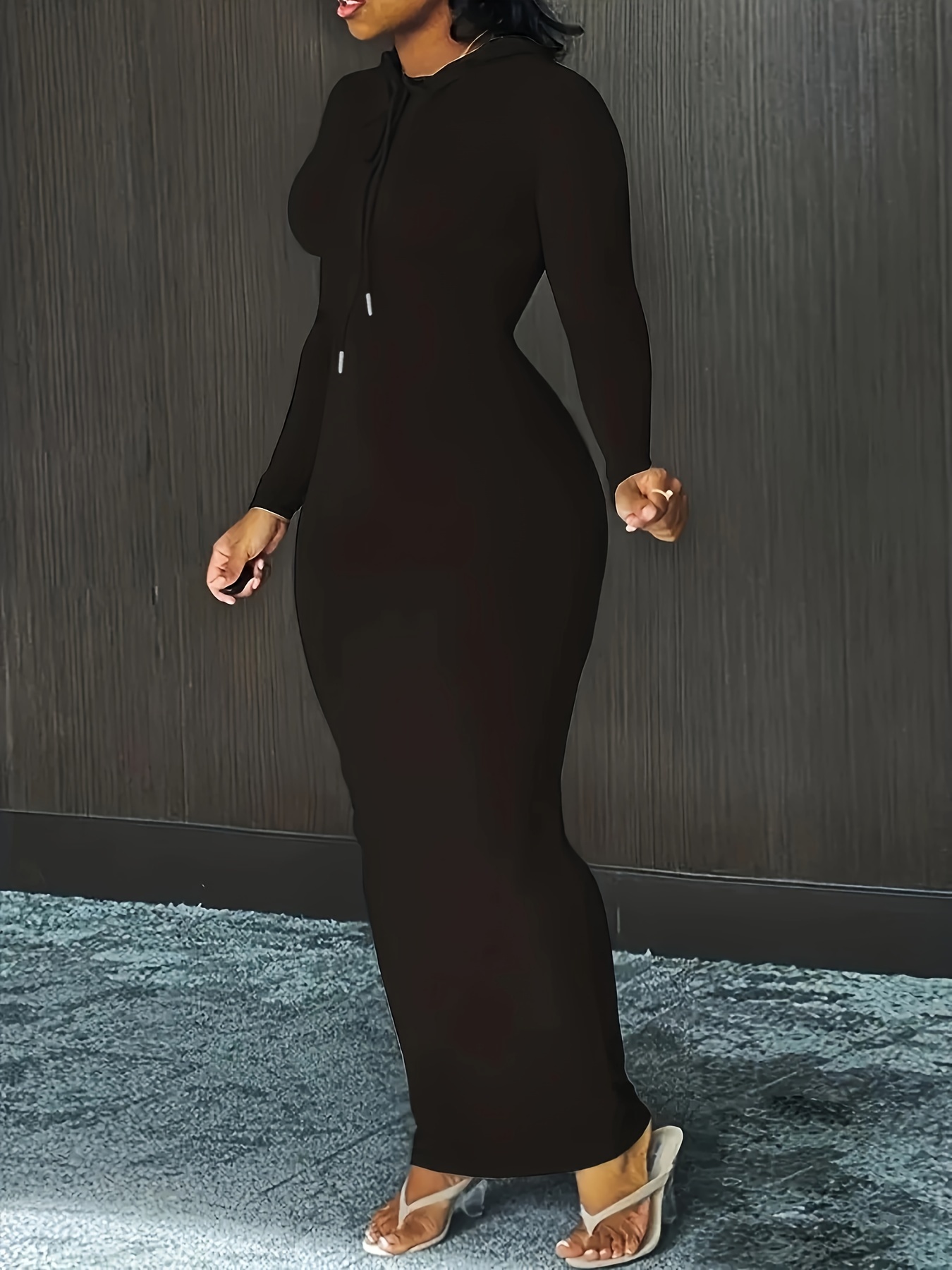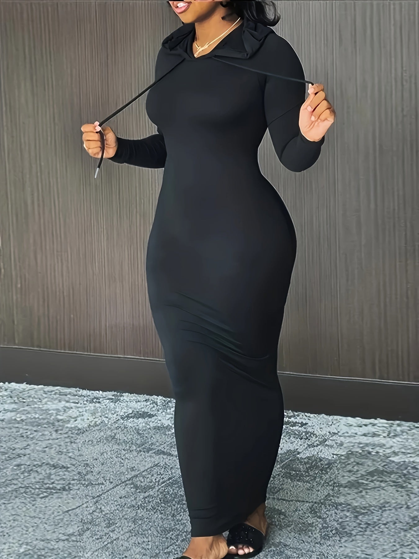 Elevate your casual wardrobe with our Plus Size Maxi Dress. Made from a comfortable polyester blend, this dress is perfect for the fall and winter seasons. Its fitted style and drawstring details add a touch of sophistication to your look.