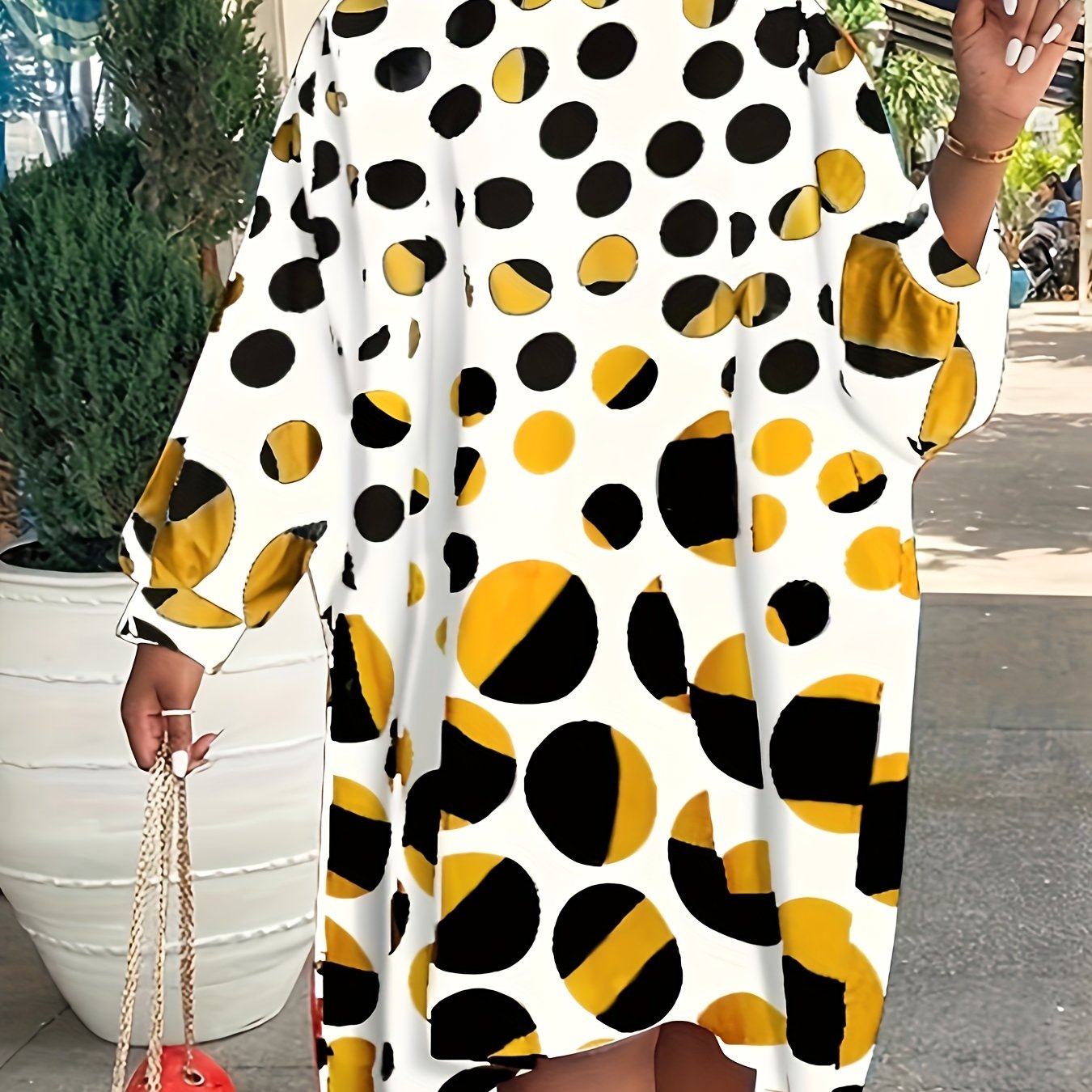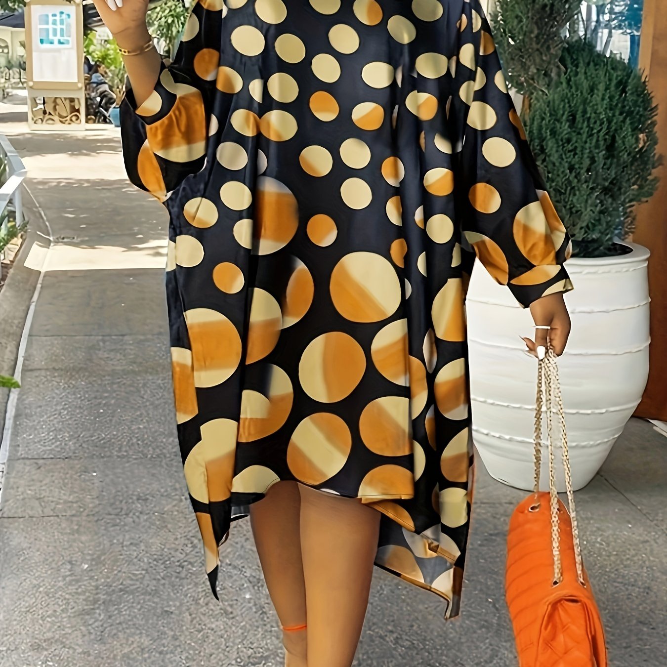Elevate your wardrobe with our Polka Dot Print Dress, a must-have for any fashion-forward woman. This dress features a unique asymmetrical long sleeve design and a playful polka dot pattern, making it perfect for casual occasions.
