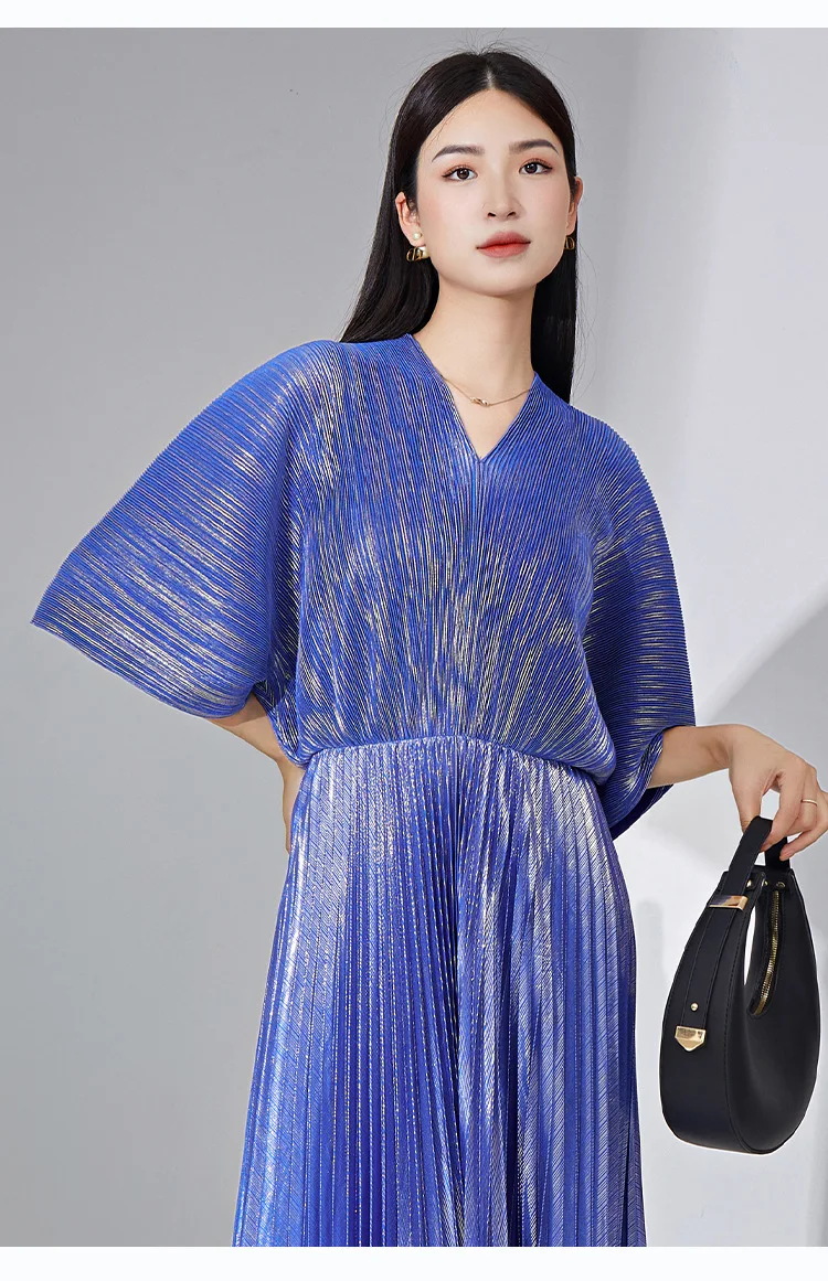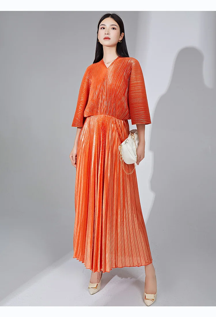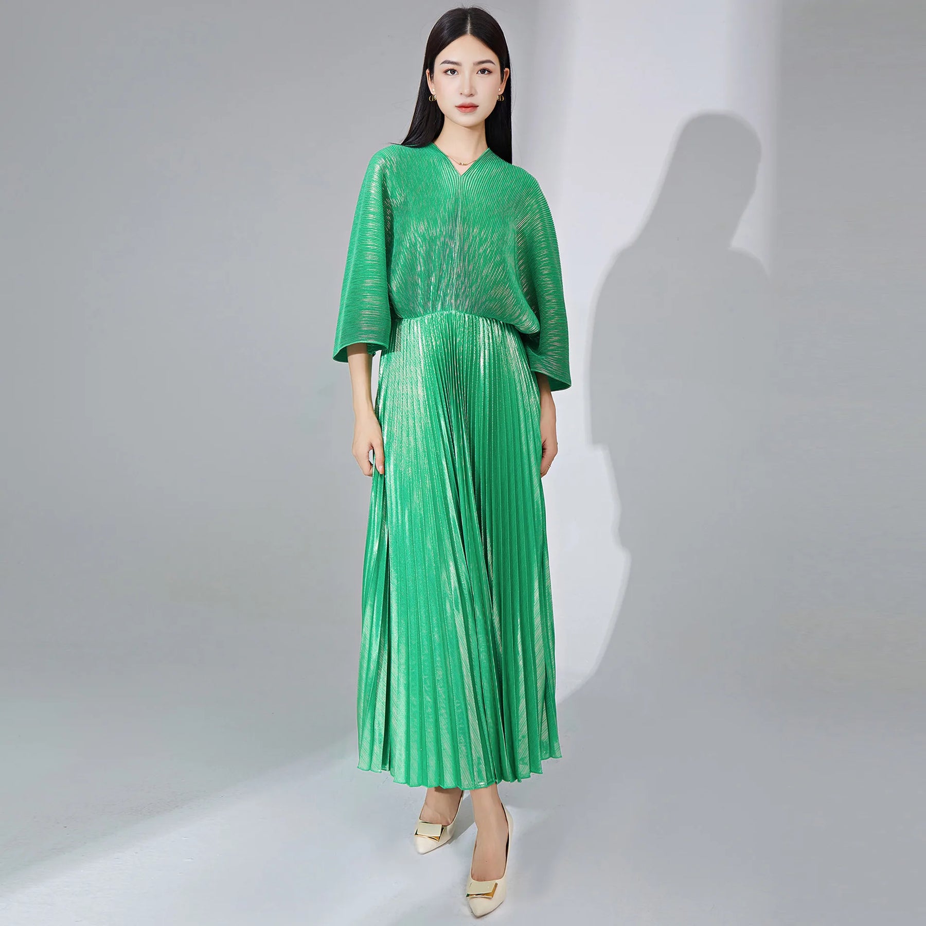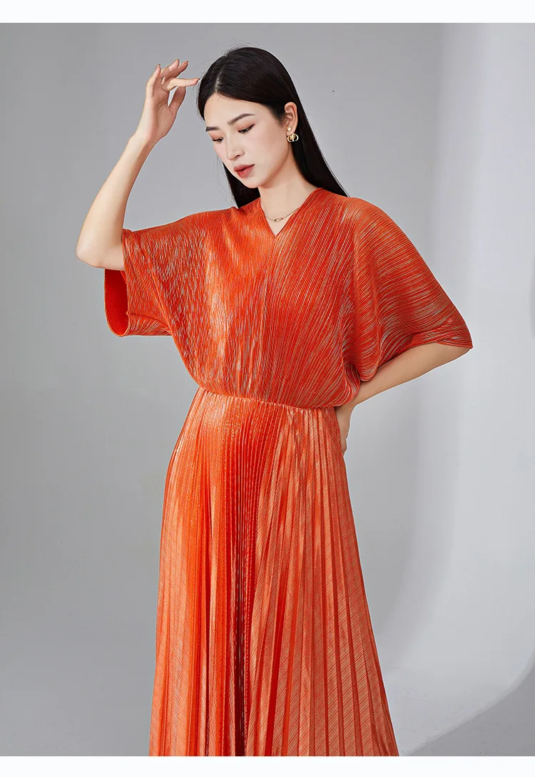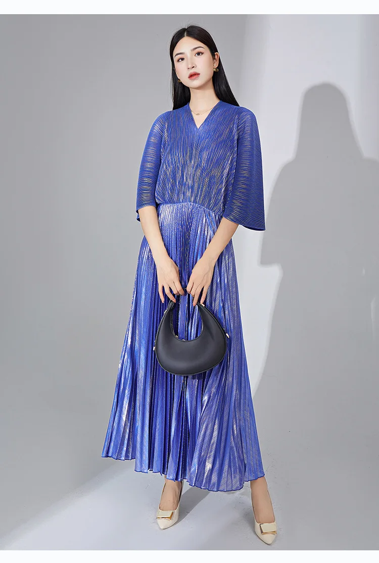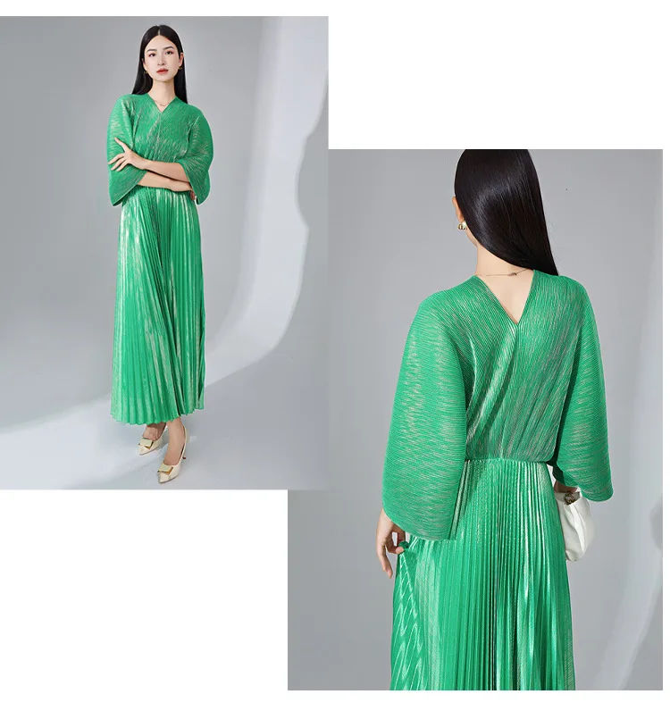 Introducing our newest fashion piece, the GVUW Pleated Fashion Pleated V Neck Loose A Line Elastic Waist Medium Long New 2024 Summer Holiday Clothing Female 17G5814. This premium design is perfect for those looking for a stylish and comfortable outfit this summer. With its pleated v-neck and loose a-line fit, it's the perfect combination of fashion and comfort. Made with high-quality materials, our clothing is designed to solve the problem of finding the perfect fit. Don't miss out on this limited time offer and be the first to get your hands on this best-selling item. Upgrade your wardrobe with our exclusive design and be ready to turn heads wherever you go. Available in one size, with a length of 130cm, this item is the perfect addition to your summer holiday clothing collection. Don't wait, get yours now!