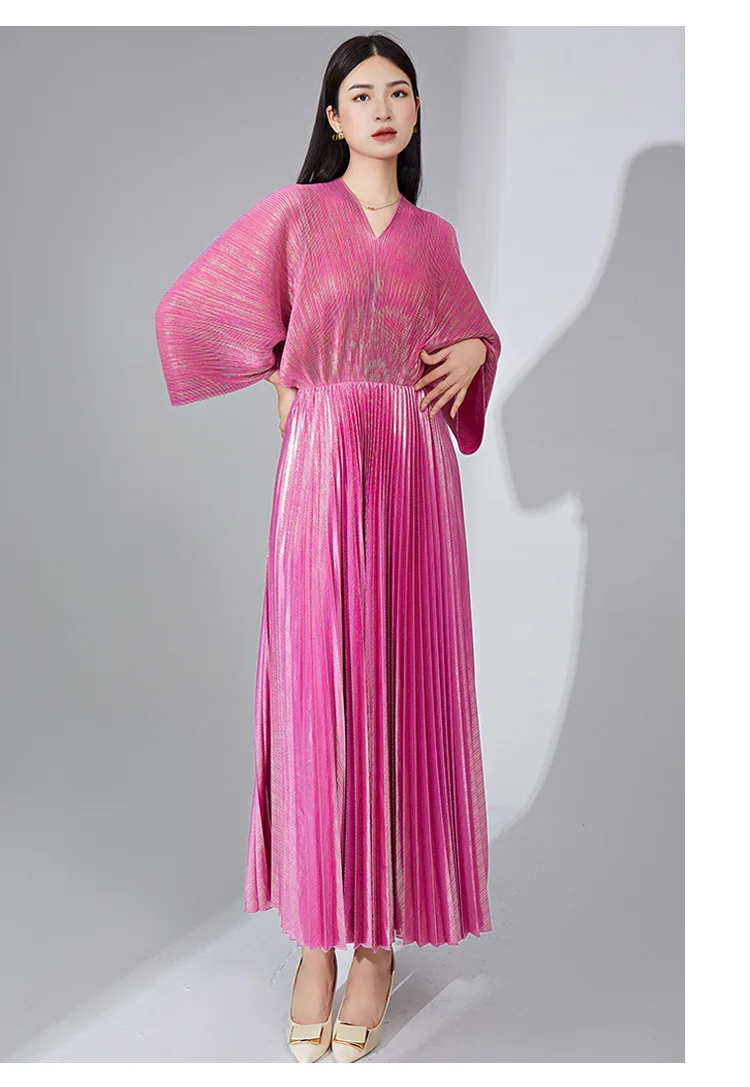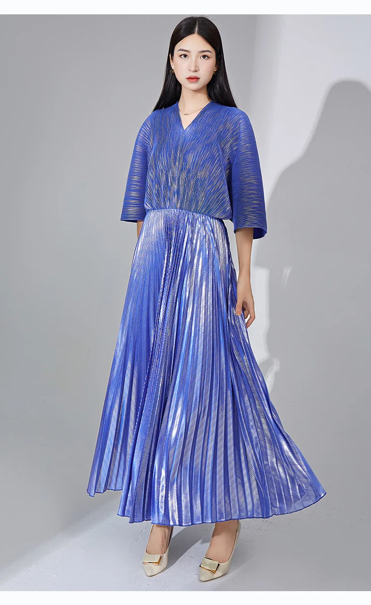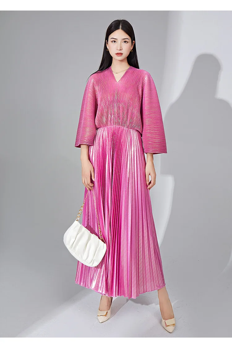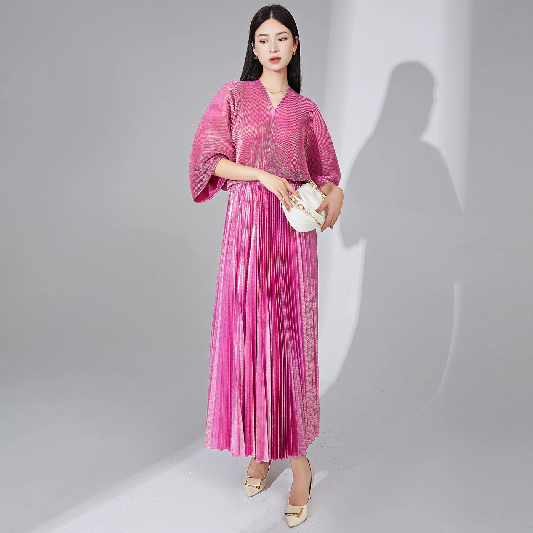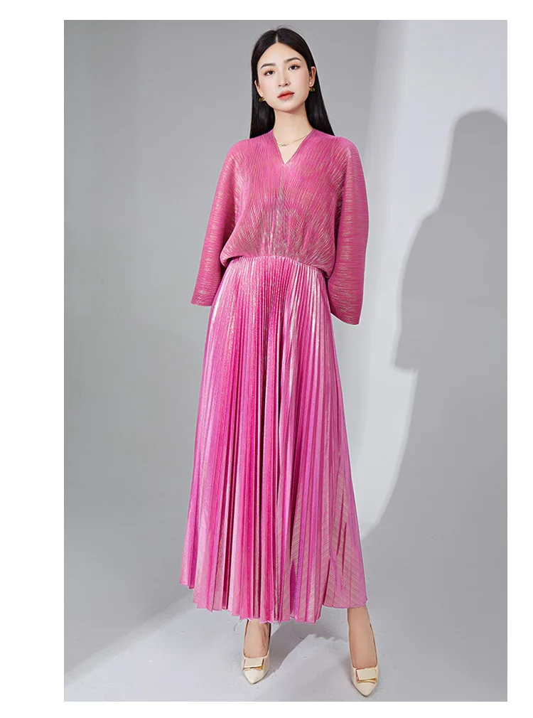 Introducing our newest fashion piece, the GVUW Pleated Fashion Pleated V Neck Loose A Line Elastic Waist Medium Long New 2024 Summer Holiday Clothing Female 17G5814. This premium design is perfect for those looking for a stylish and comfortable outfit this summer. With its pleated v-neck and loose a-line fit, it's the perfect combination of fashion and comfort. Made with high-quality materials, our clothing is designed to solve the problem of finding the perfect fit. Don't miss out on this limited time offer and be the first to get your hands on this best-selling item. Upgrade your wardrobe with our exclusive design and be ready to turn heads wherever you go. Available in one size, with a length of 130cm, this item is the perfect addition to your summer holiday clothing collection. Don't wait, get yours now!
