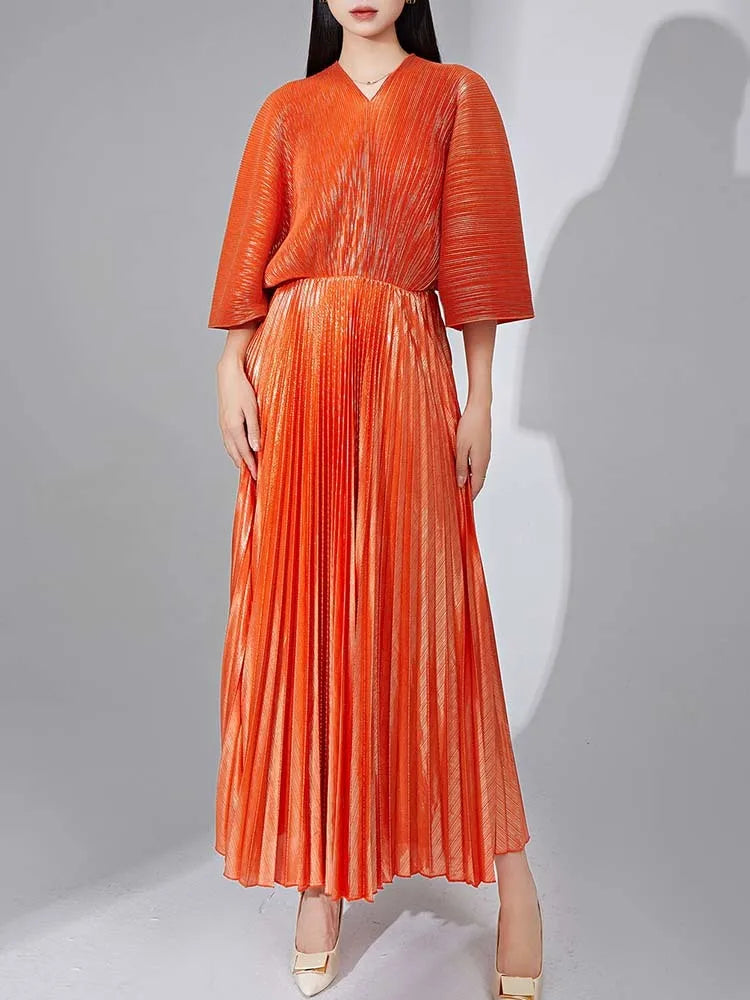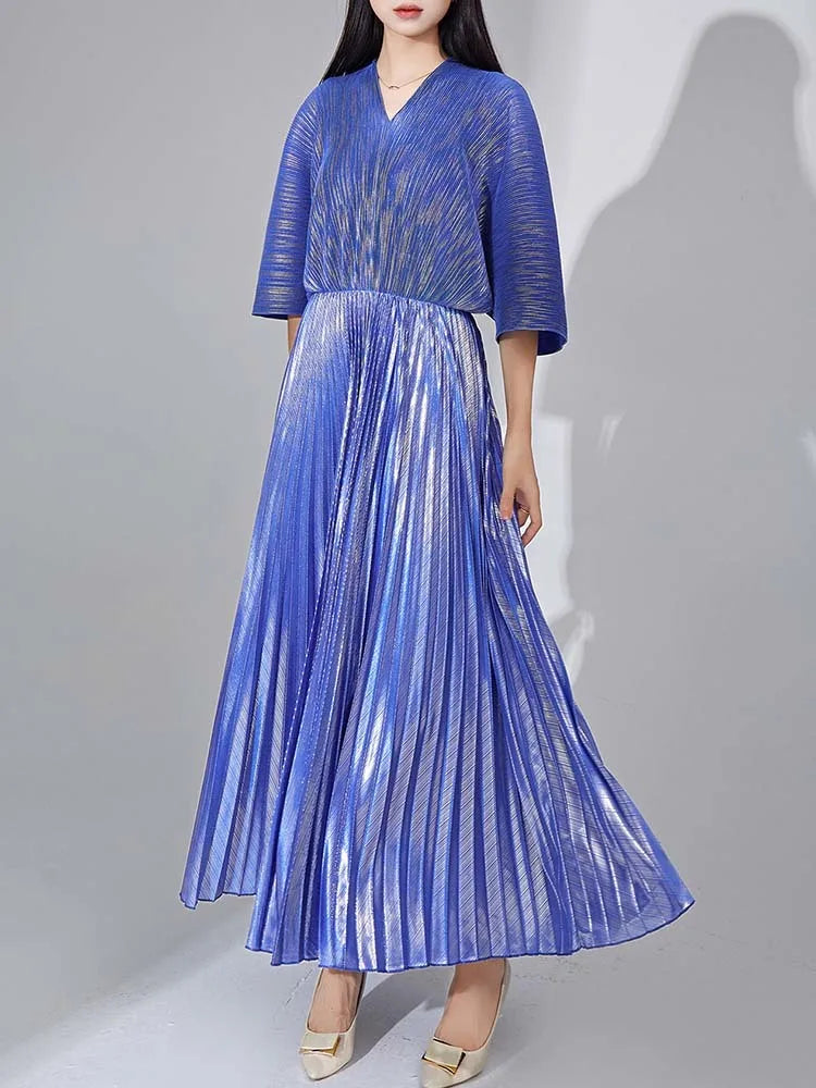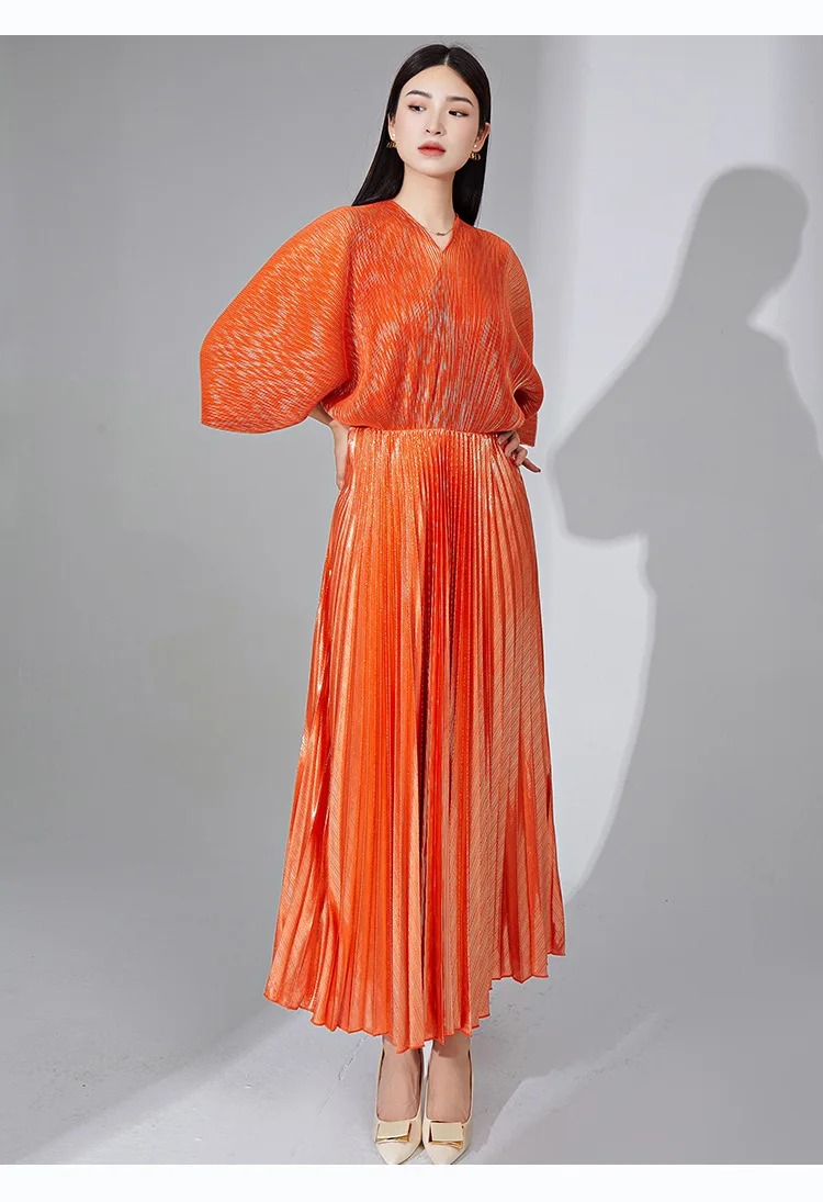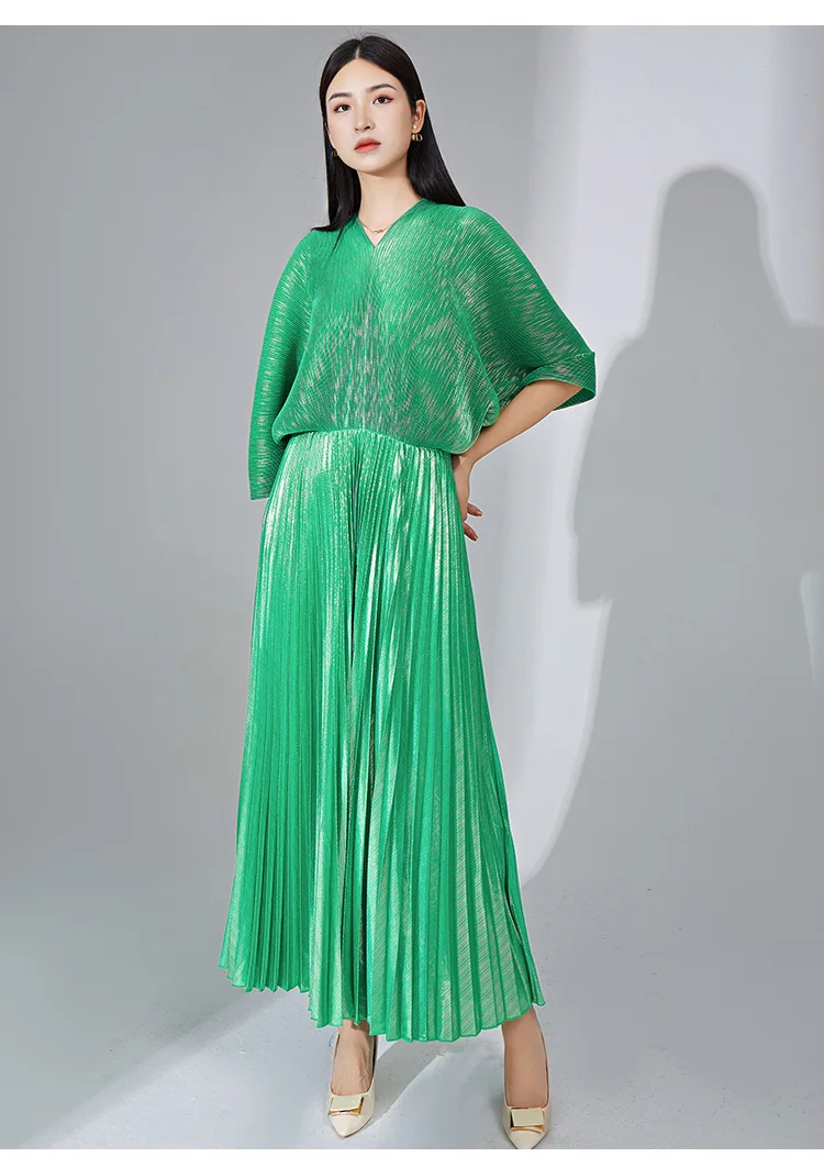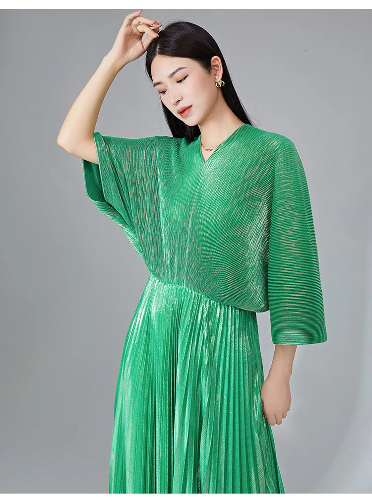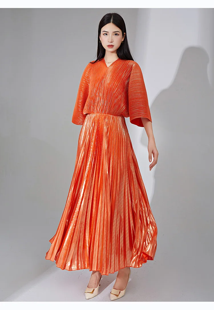Introducing our newest fashion piece, the GVUW Pleated Fashion Pleated V Neck Loose A Line Elastic Waist Medium Long New 2024 Summer Holiday Clothing Female 17G5814. This premium design is perfect for those looking for a stylish and comfortable outfit this summer. With its pleated v-neck and loose a-line fit, it's the perfect combination of fashion and comfort. Made with high-quality materials, our clothing is designed to solve the problem of finding the perfect fit. Don't miss out on this limited time offer and be the first to get your hands on this best-selling item. Upgrade your wardrobe with our exclusive design and be ready to turn heads wherever you go. Available in one size, with a length of 130cm, this item is the perfect addition to your summer holiday clothing collection. Don't wait, get yours now!
