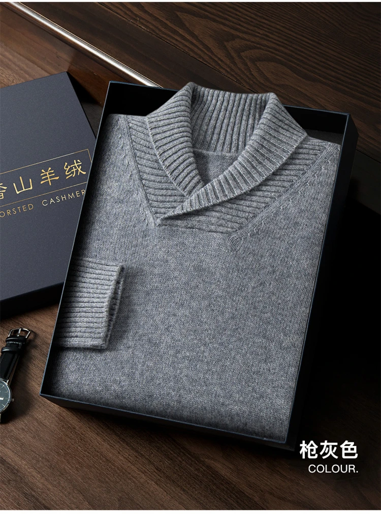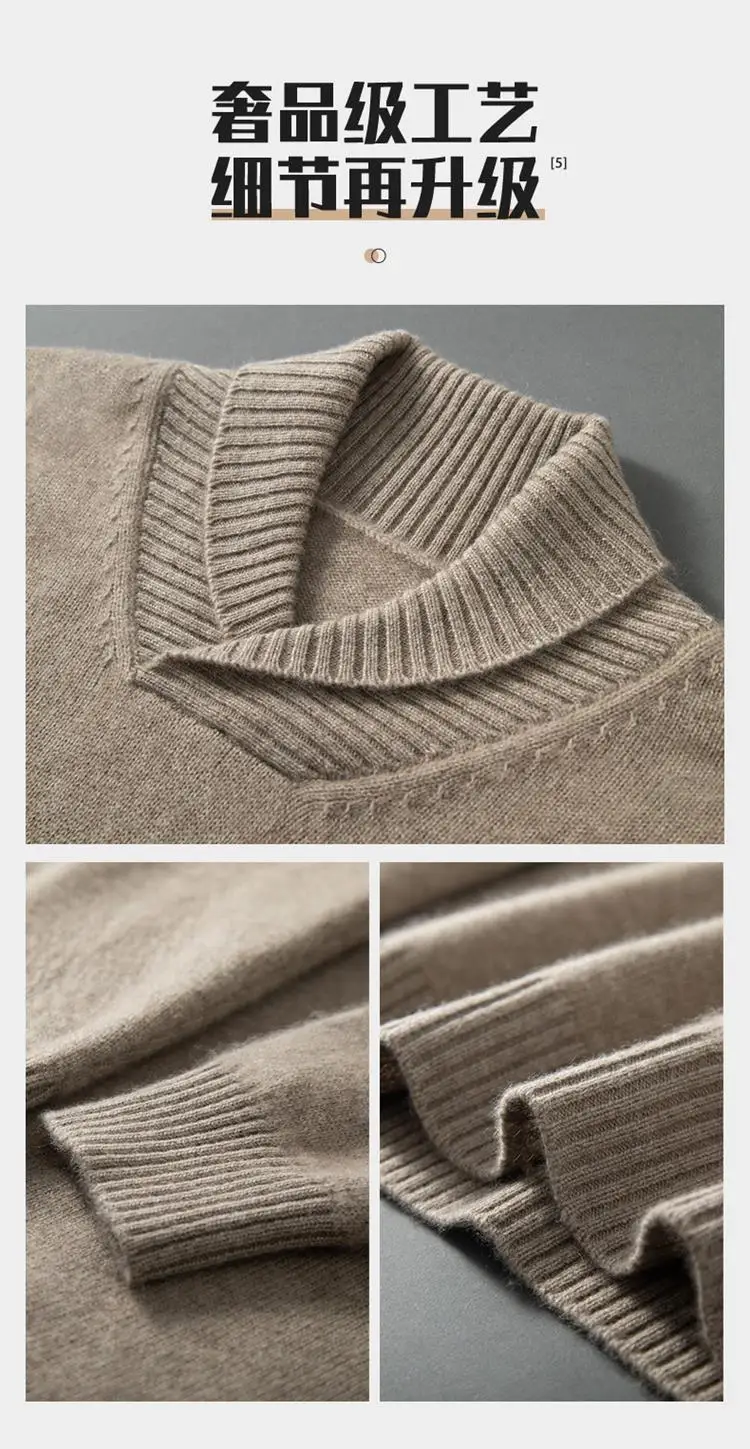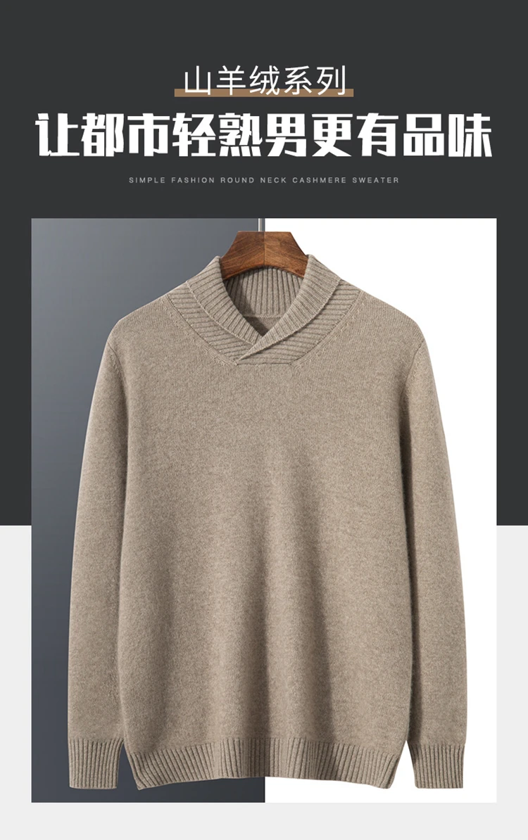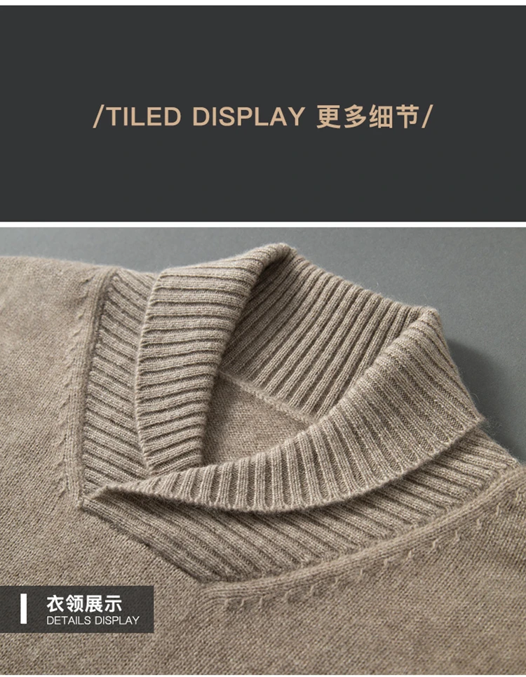 Thick long-sleeved fashion olive Henry collar pure cashmere sweater men's autumn and winter sweater comfortable warm sweater.