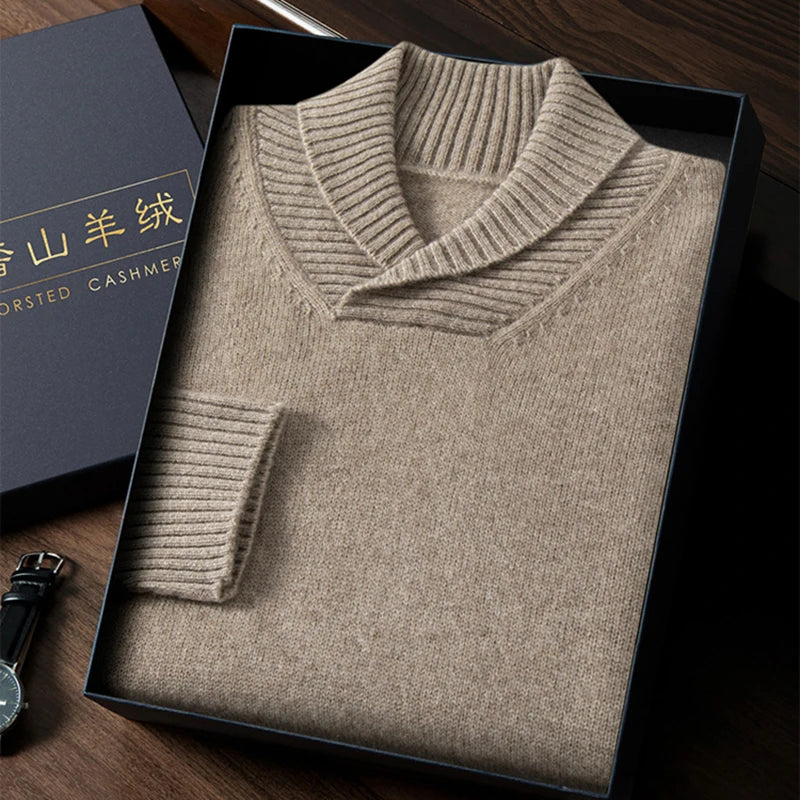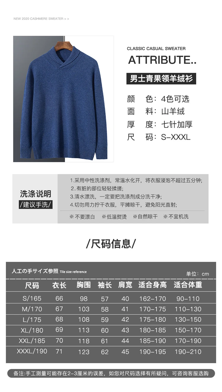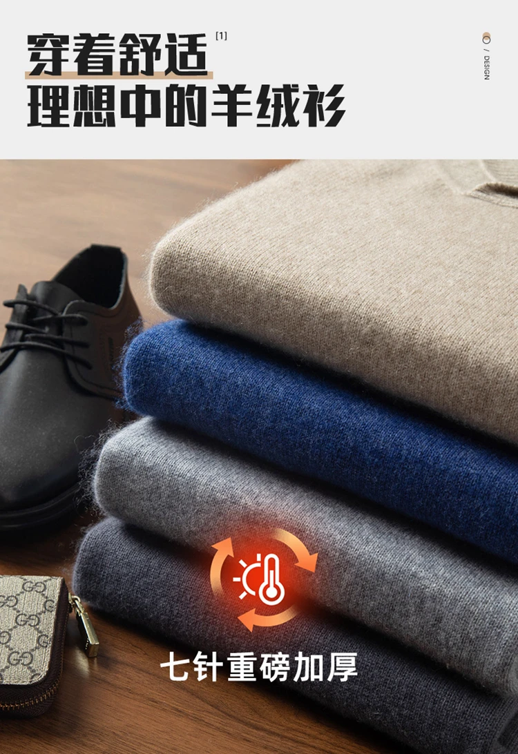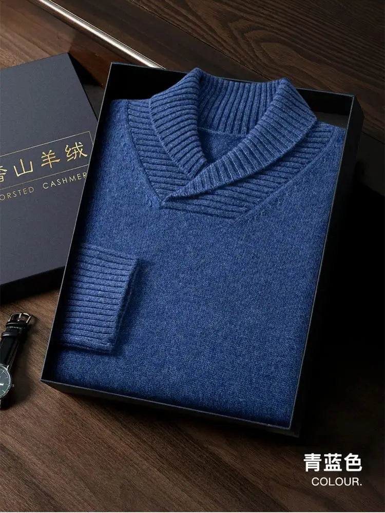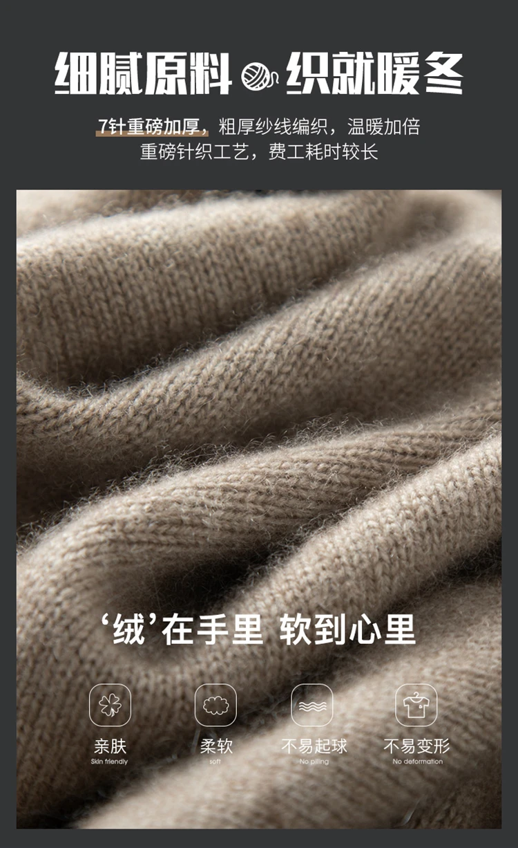 Thick long-sleeved fashion olive Henry collar pure cashmere sweater men's autumn and winter sweater comfortable warm sweater.