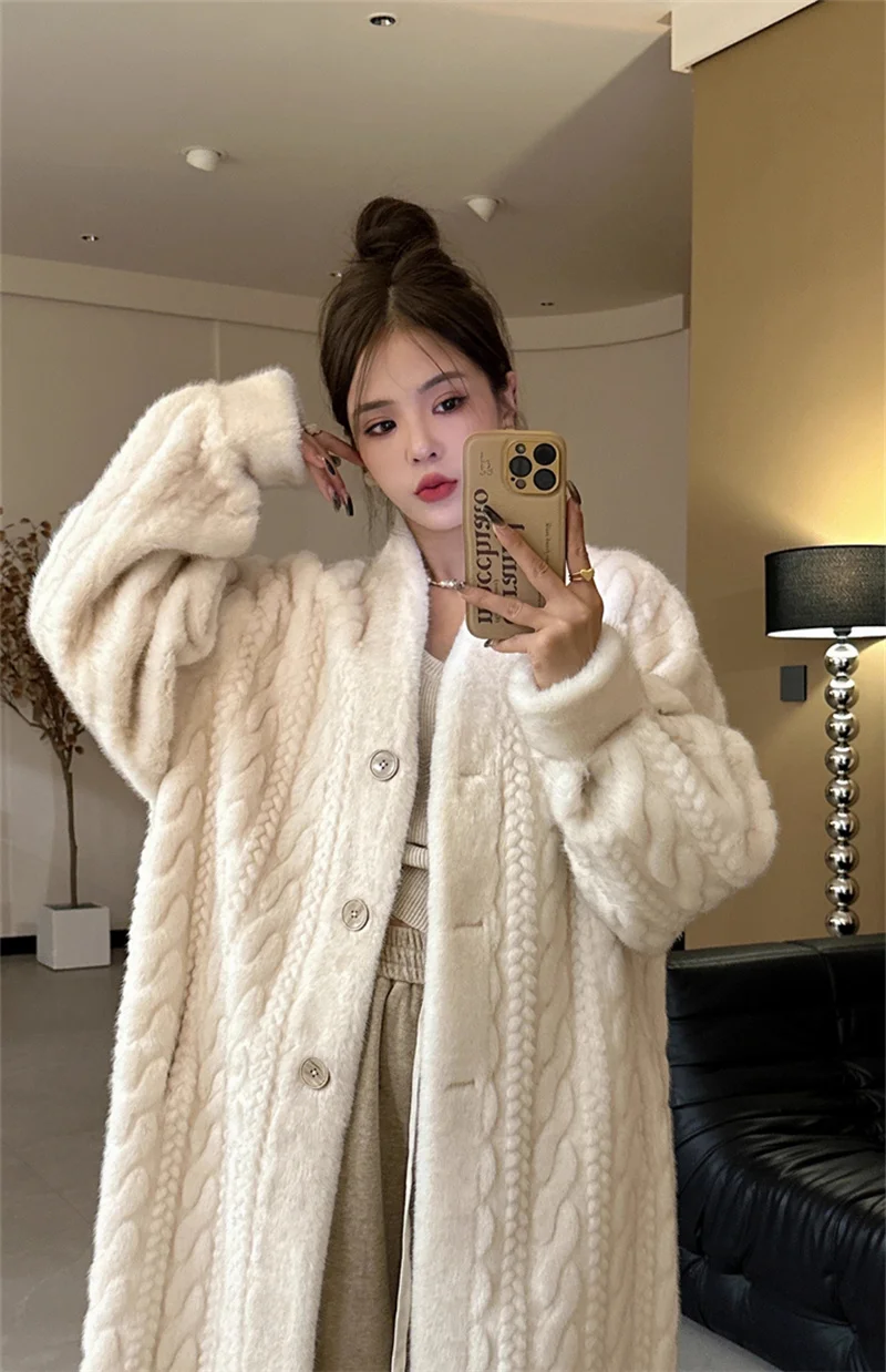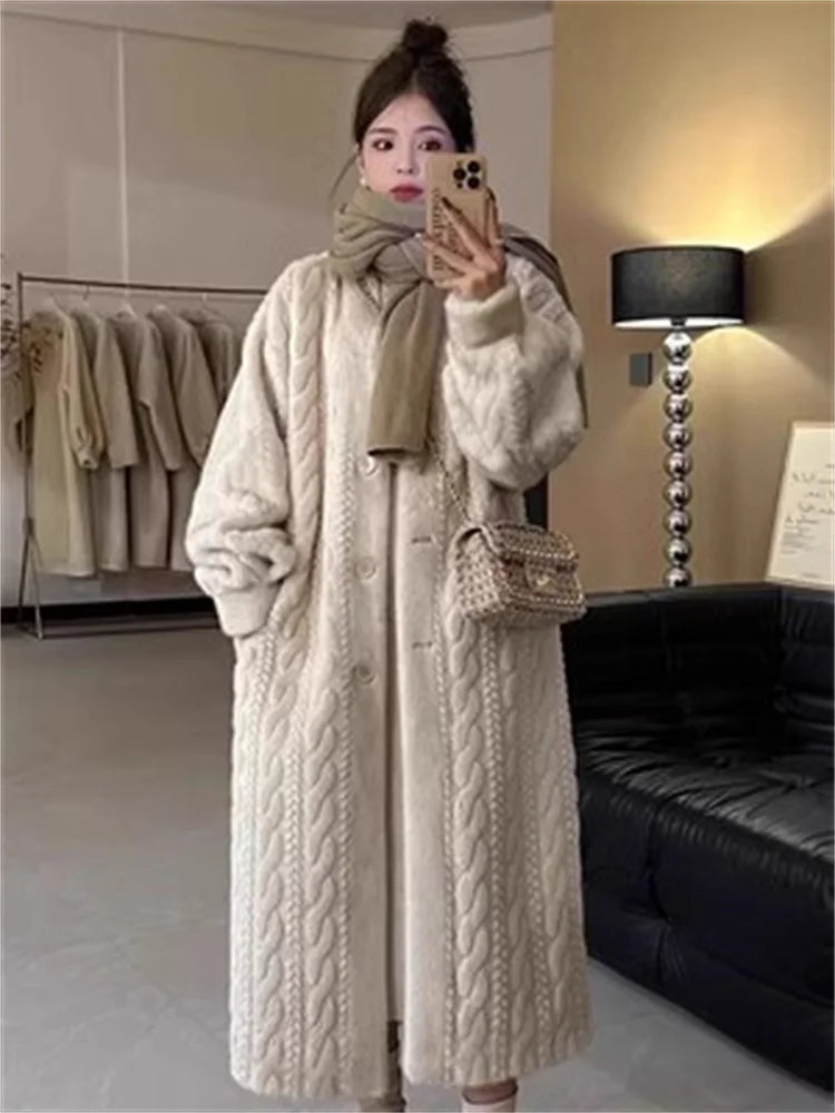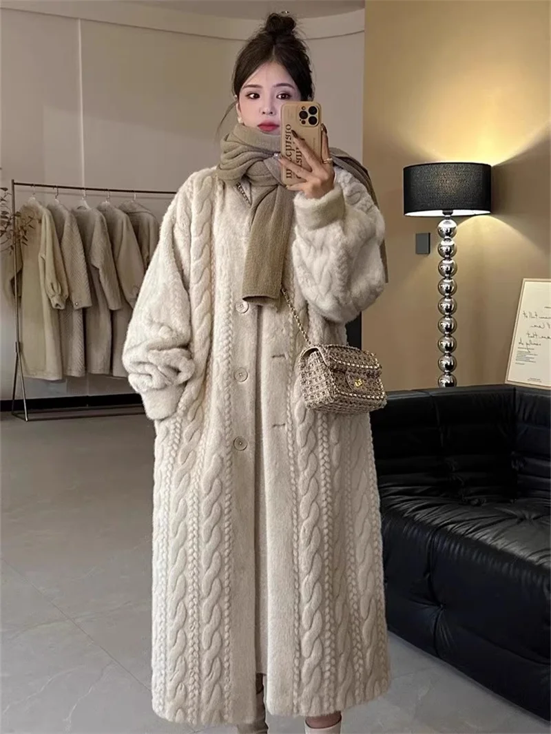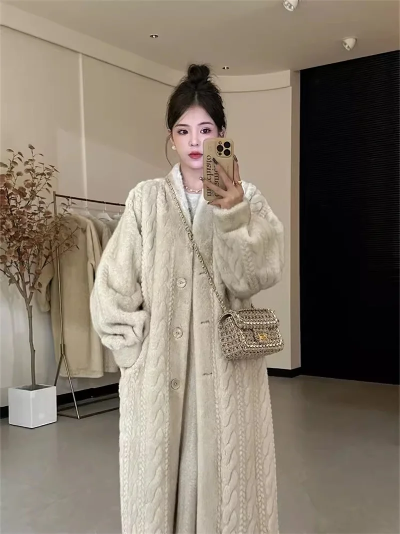 Thickened Faux Fur Coat Female Winter 2023 New Mink Fur Add Fur One Single-breasted Long-Sleeved Warm Mink Coats Woman