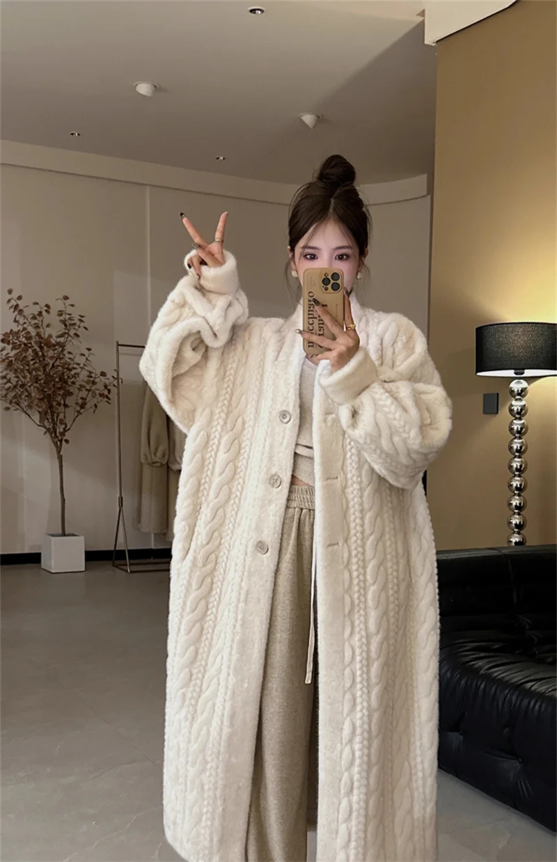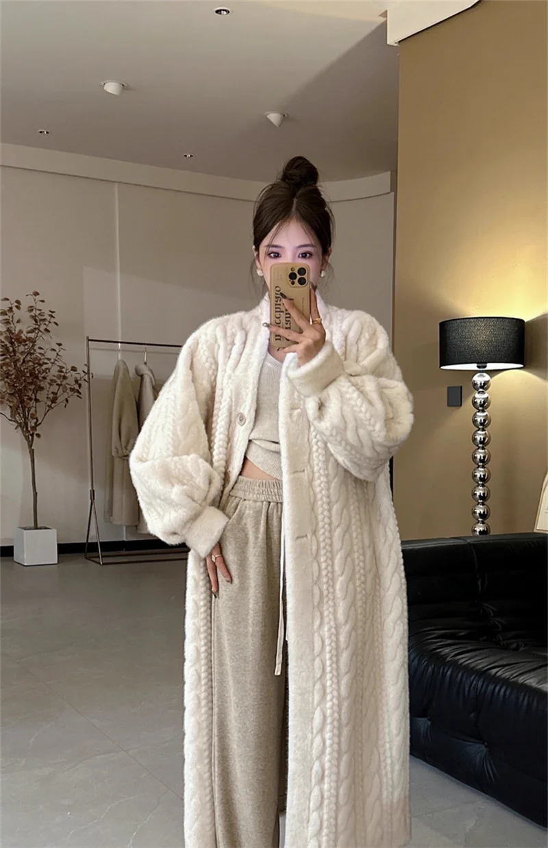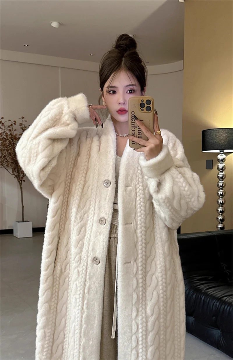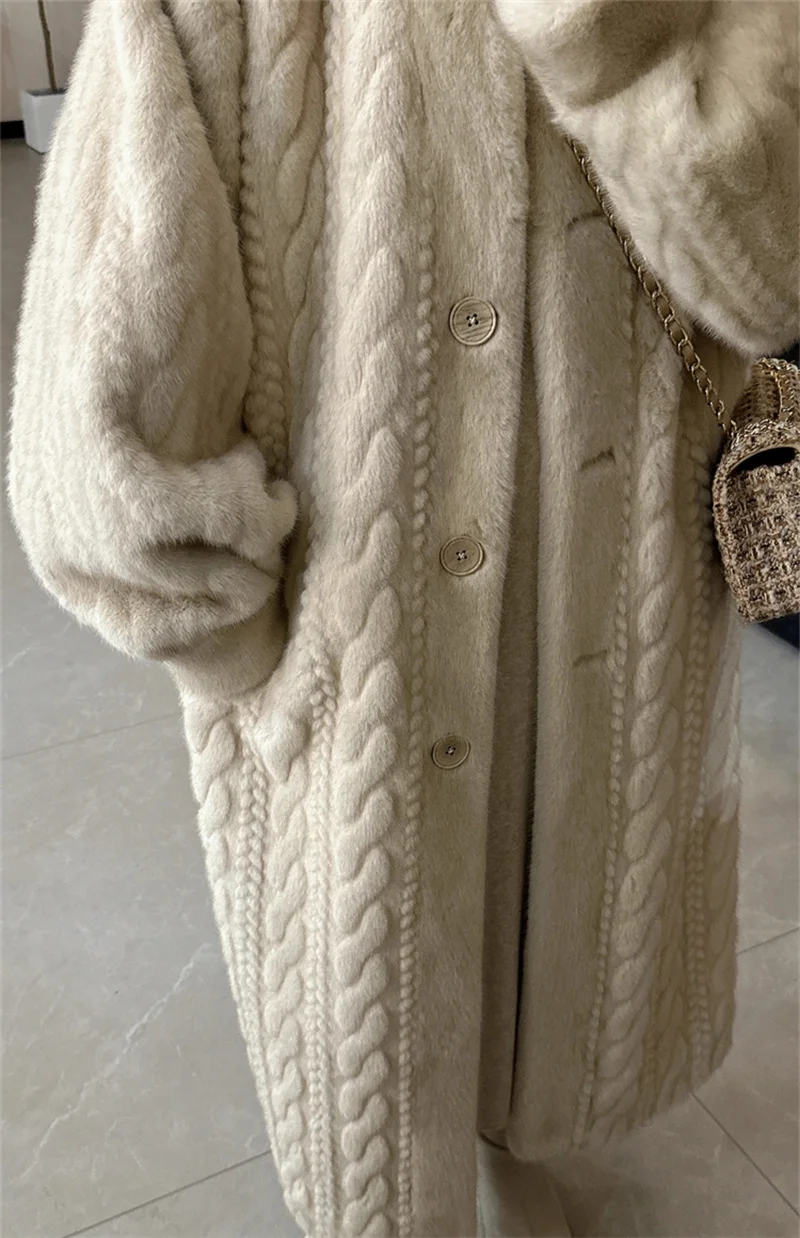 Thickened Faux Fur Coat Female Winter 2023 New Mink Fur Add Fur One Single-breasted Long-Sleeved Warm Mink Coats Woman