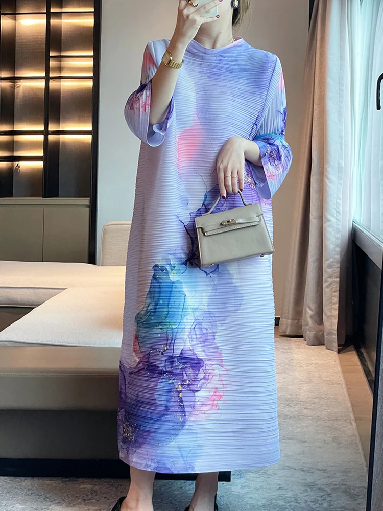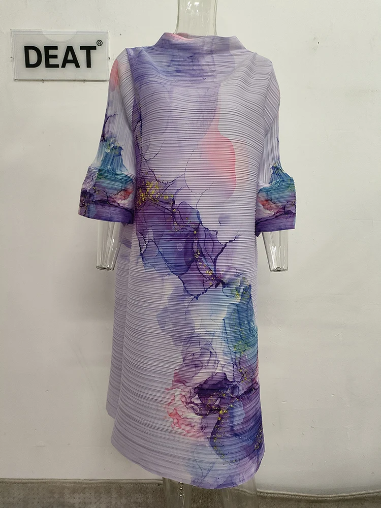 Introducing the DEAT Pleated Women Dress - the perfect blend of elegance and fashion for all your evening parties! This stunning dress features a beautiful print and full sleeves, making it a must-have for the autumn season. The round collar and loose, medium-long fit add a touch of sophistication, while the 2023 fashion design ensures you stay ahead of the trends. Made with premium materials, this dress is both comfortable and stylish. Don't miss out on this limited time offer and change your life with the inner charm this dress brings. Say goodbye to wardrobe dilemmas and hello to effortless style with the DEAT Pleated Women Dress.