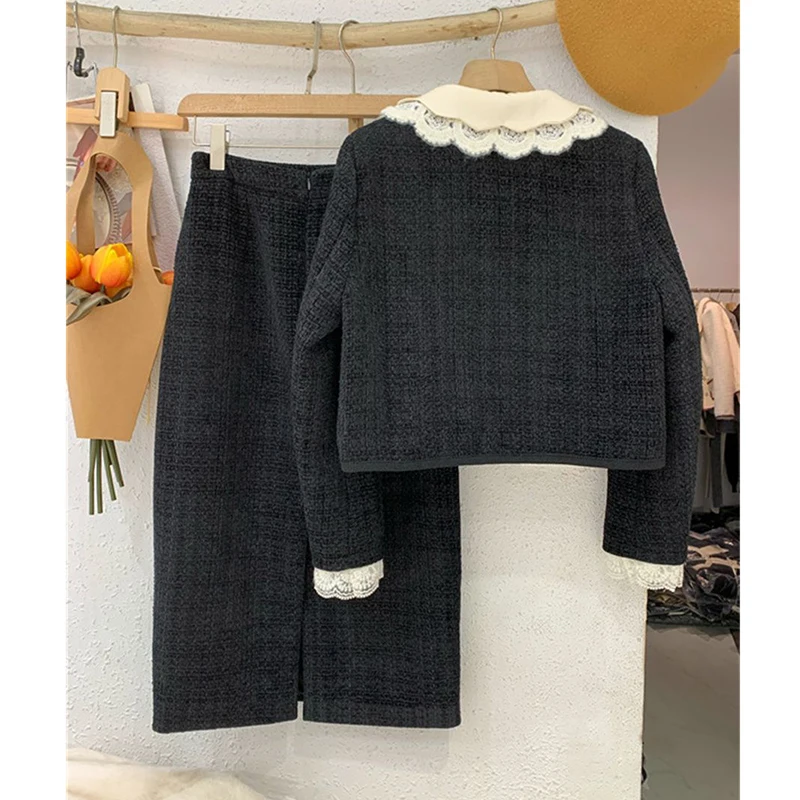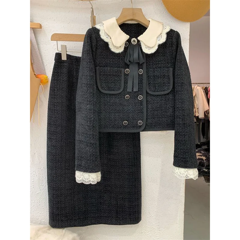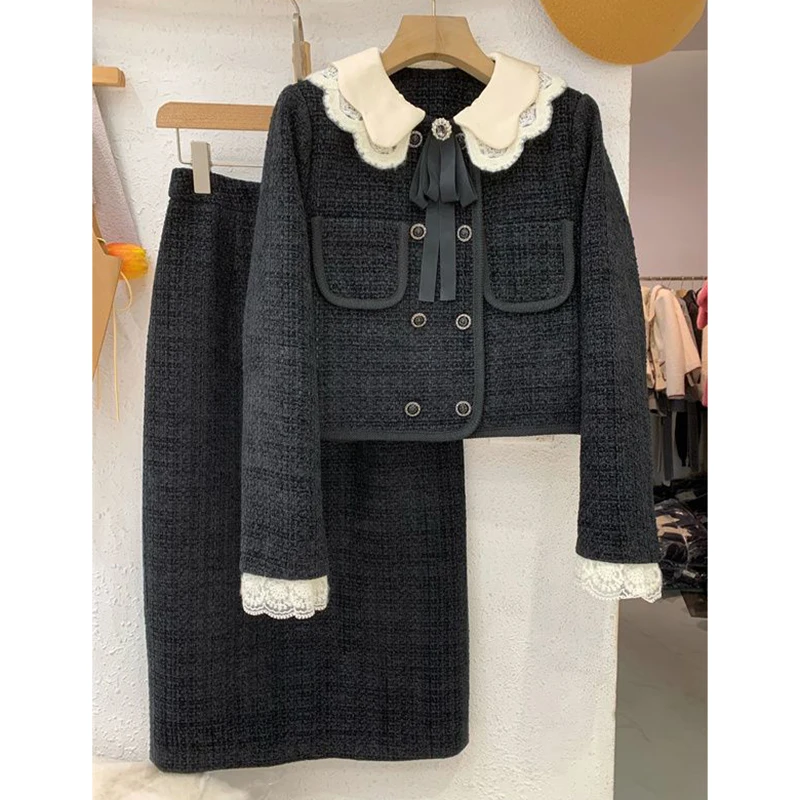 Two Piece Skirt Dress Women Double Breasted Short Jacket Coat Sheath Dress for Women's Elegant Formal Sets 2pc Work Dress