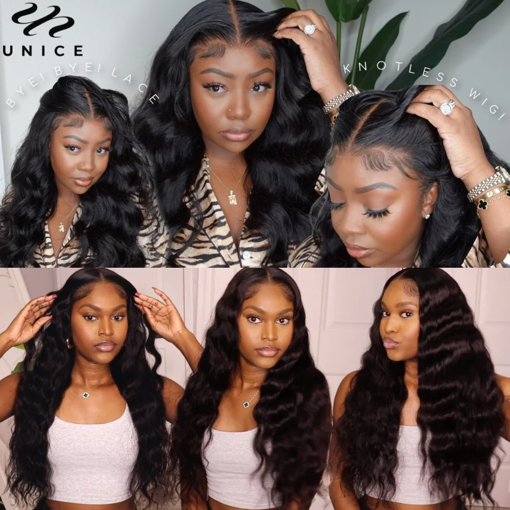 Get the ultimate hair transformation! 🌟 What it is - UNice Hair Wear Go 6x4.75 Pre Cut Lace Wig in a natural body wave, perfect for beginners. No glue needed!