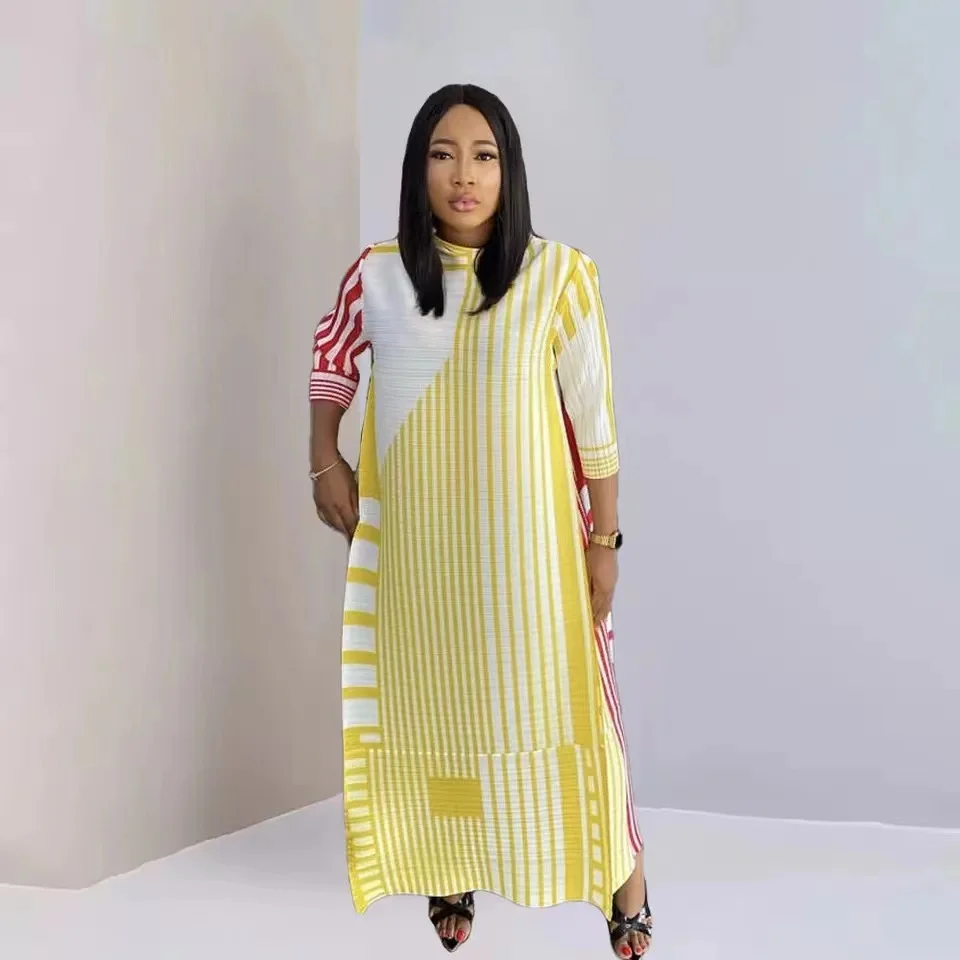 Introducing our newest addition to our collection, the New Miyake Pleated Stripe Print Dress. This fashion-forward dress is designed for the modern woman who wants to make a statement. With its relaxed and flowy silhouette, it is perfect for any party or event. The elegant stripe print adds a touch of sophistication, while the pleated details add texture and movement. Made with premium materials, this dress is not only stylish but also comfortable to wear. It is a best seller and a must-have for any fashionista. Get yours now for a limited time only and elevate your wardrobe with this exclusive piece. Perfect for spring, this dress will solve all your outfit dilemmas and make you stand out from the crowd. Don't miss out on this perfect fit for any occasion.
