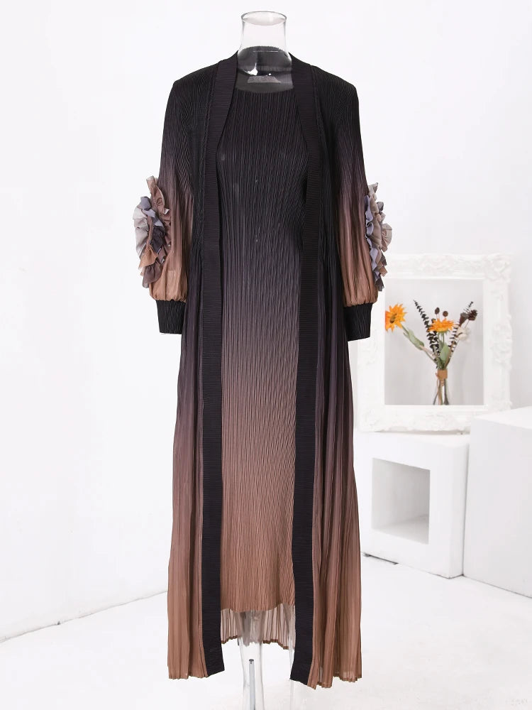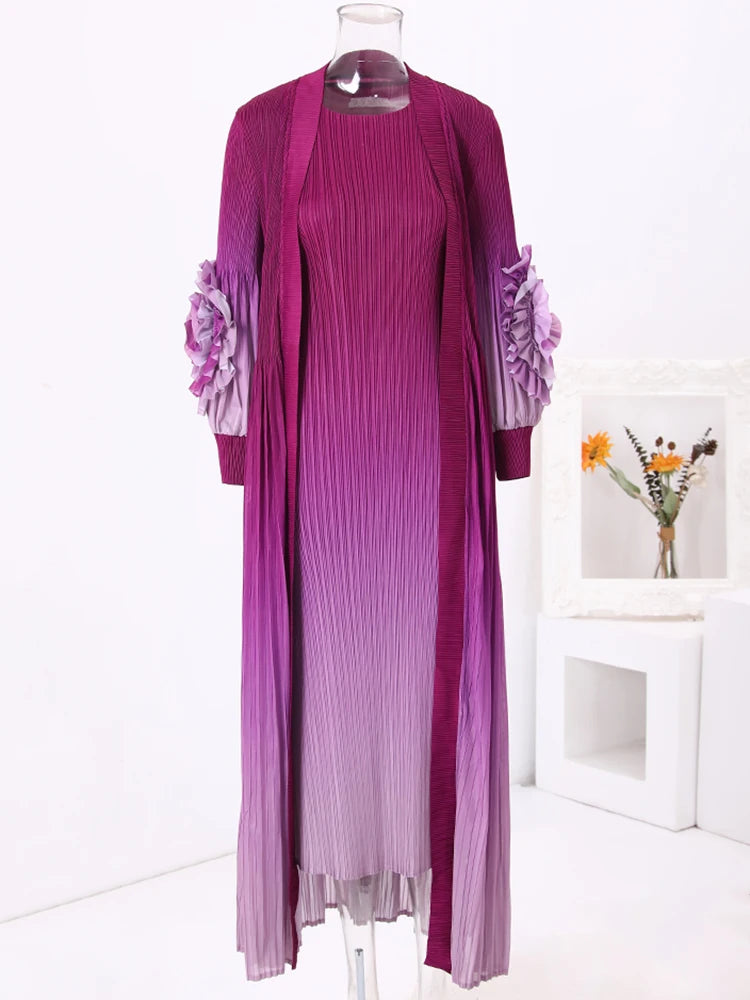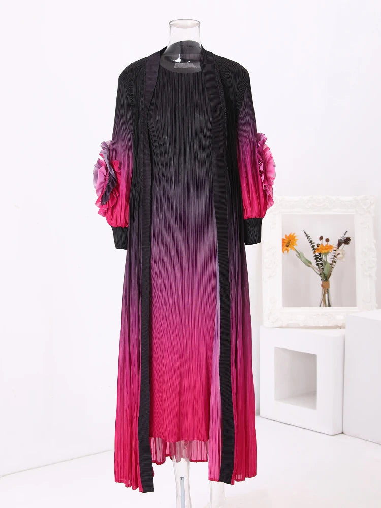 Introducing our newest addition to the LANMREM collection - the 2024 New Gradient Pleated 2 Piece Set! This stunning set features a belted waist and floral sleeves, adding a touch of elegance to your wardrobe. Made with high-quality materials and exquisite craftsmanship, this set is designed to solve your fashion needs and elevate your style game. With a perfect fit and comfortable feel, our set is a must-have for any fashion-forward woman. Don't miss out on this limited time, exclusive piece - get yours today and be the best dressed wherever you go!