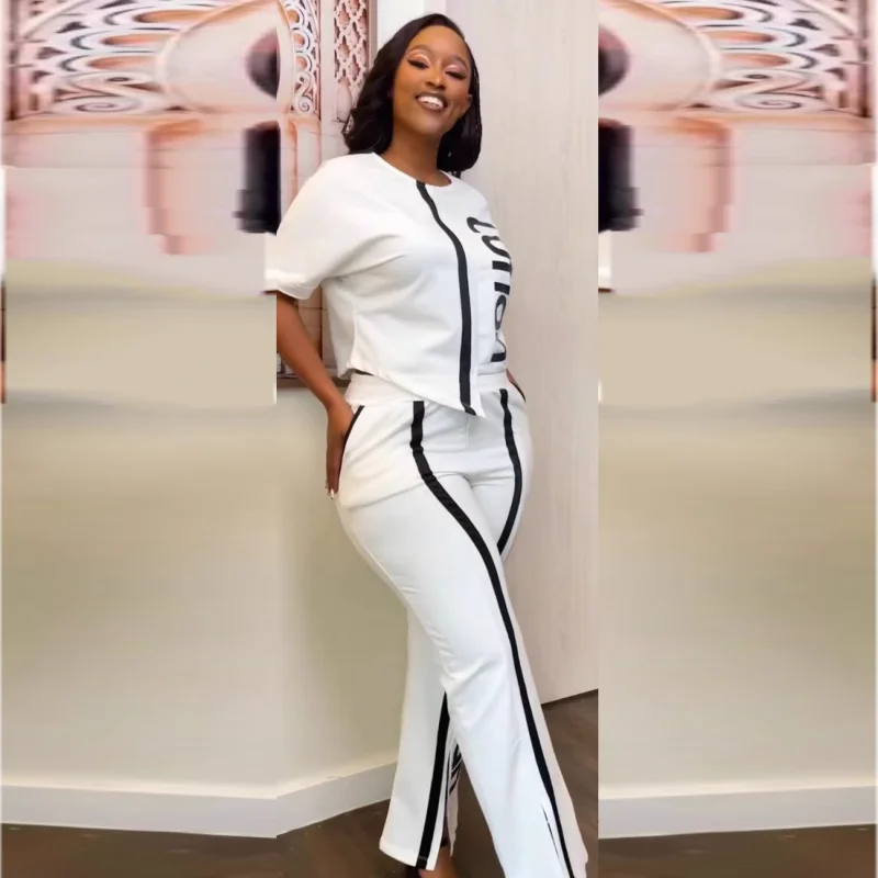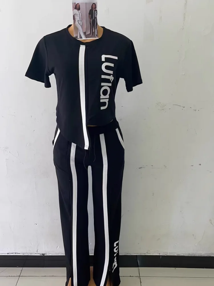 Elevate your style with our 2 Pieces Women's Sets 2024 Summer Autumn collection. This trendy two-piece set features a bold letter print design on a comfortable pullover top and matching pants. Perfect for any season, this tracksuit outfit is a must-have for your wardrobe. Not only does it solve the problem of finding a stylish and comfortable outfit, but it also gives you the confidence to conquer your day. Made with premium materials, this set is a best seller and a limited time exclusive. Don't miss out on the perfect fit for any occasion. Upgrade your wardrobe today!