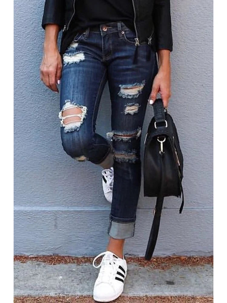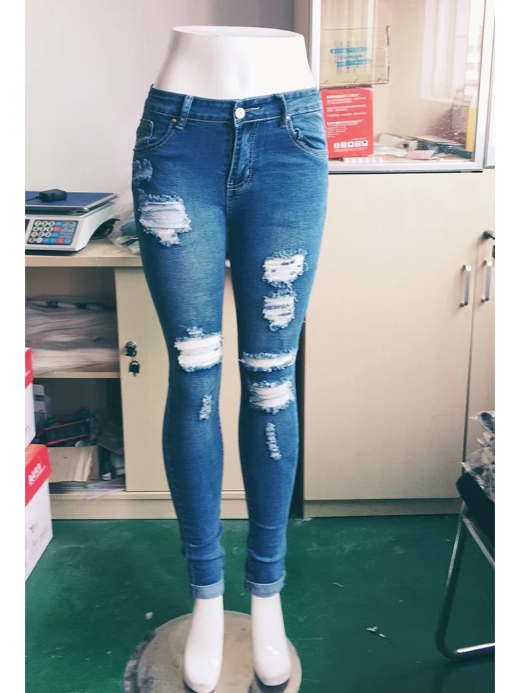 Unleash your inner fashionista with our premium Women Stretchy Ripped Skinny Jeans. These pants are designed to solve the problem of finding the perfect fit and style. Made with stretchy fabric, they provide ultimate comfort and a flattering silhouette. The hollow out design adds an edgy touch, making them a must-have for any streetwear look. Don't miss out on this best seller, exclusively available for a limited time. Hurry and get your perfect pair now!