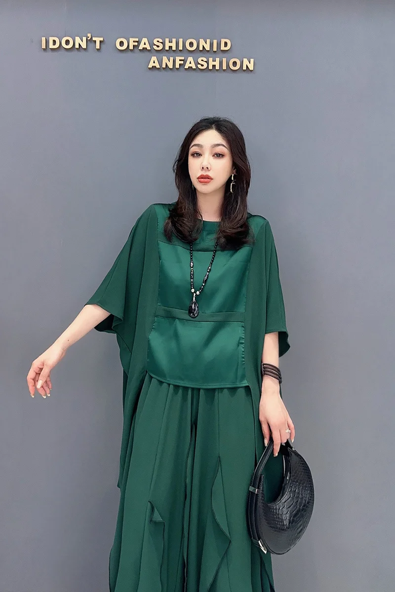 Introducing our latest addition to the Vefadisa collection - the 2024 Summer New Women Set. This personalized two-piece set features an eye-catching black and green color combination, with an irregular top and wide leg pants for a trendy and unique look. Made with high-quality materials, this set offers a perfect fit and is suitable for any occasion. The top has a length of 55cm, while the pants have a length of 72cm, making it a comfortable and stylish choice for all body types. With a bust of 116cm and a waist of 64-105cm, this set is designed to solve any wardrobe dilemma and enhance your style effortlessly. Don't miss out on this limited time, exclusive set and upgrade your summer wardrobe now!
