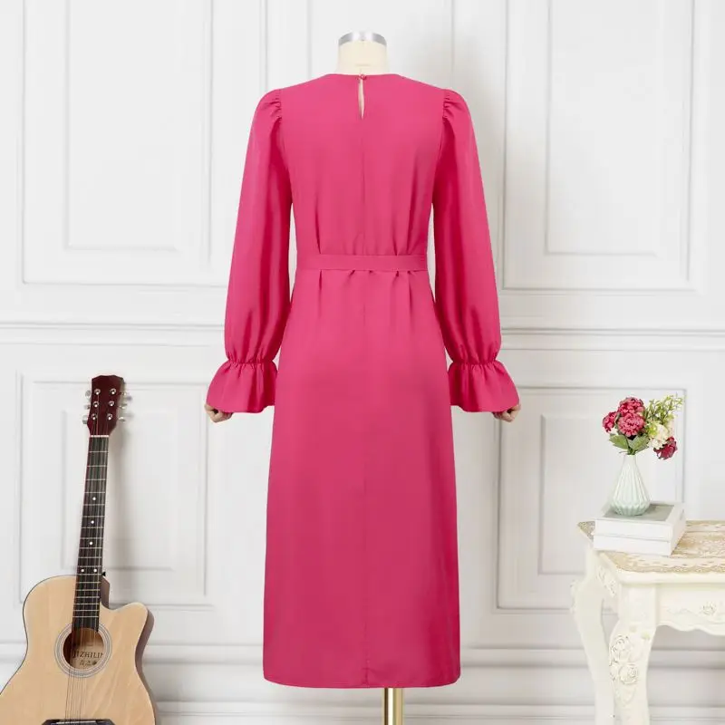 Introducing the ZANZEA 2023 Autumn Long Sleeve Vestidos Women Maxi Long Dress - the perfect addition to your wardrobe! Made from 100% premium quality polyester, this dress offers a comfortable and elegant fit. The dress comes in three beautiful colors - black, green, and pink - and features a belted waist and ruffled cuffs for a touch of vintage charm. Its ankle-length design and regular sleeve length make it suitable for any occasion, whether it's a casual day out or a special event. This limited time offer is a best seller and is perfect for the upcoming autumn season. Don't miss out on this exclusive dress that will solve all your fashion problems and elevate your style to the next level. Order now and experience the perfect fit and European and American style with the ZANZEA 2023 Autumn Long Sleeve Vestidos Women Maxi Long Dress.