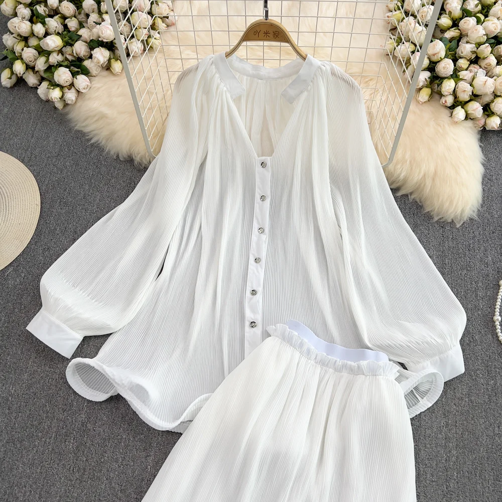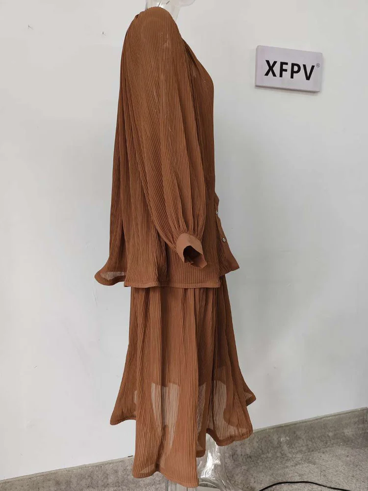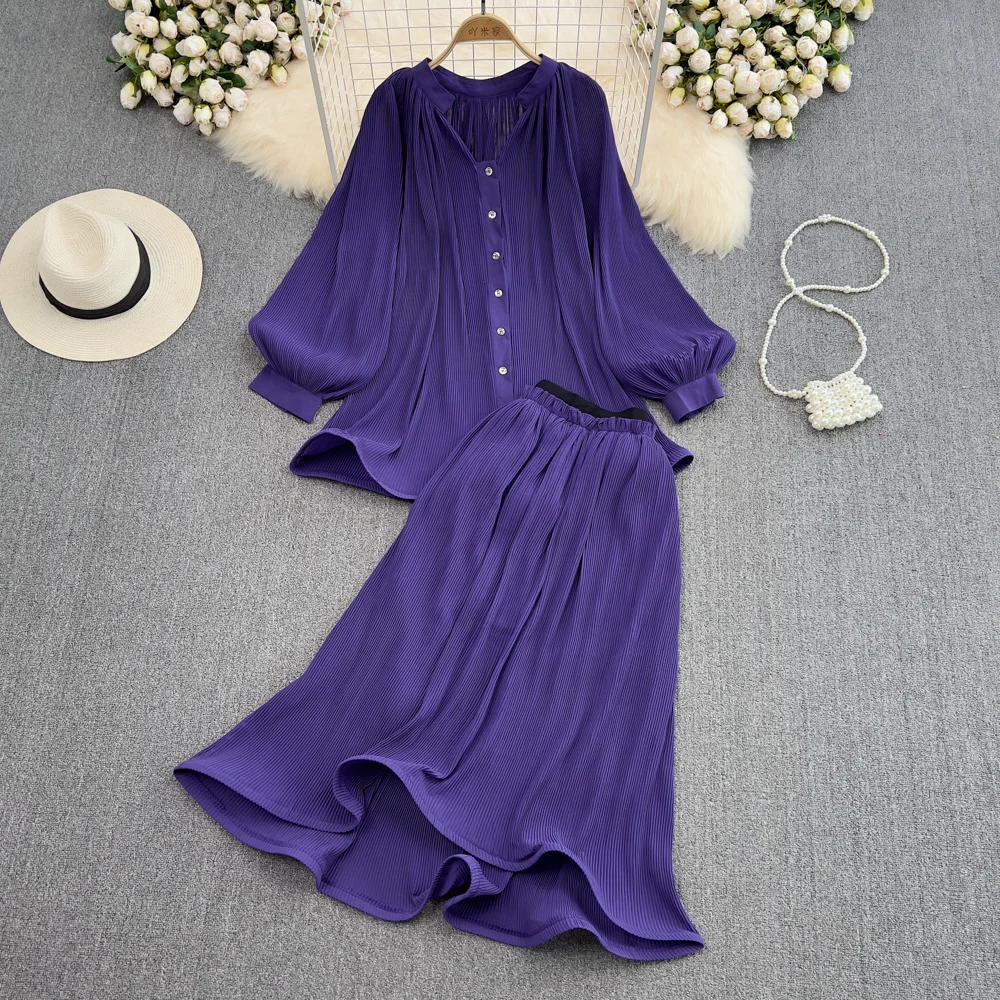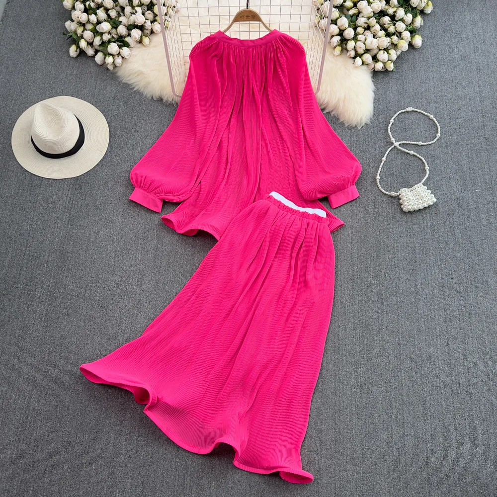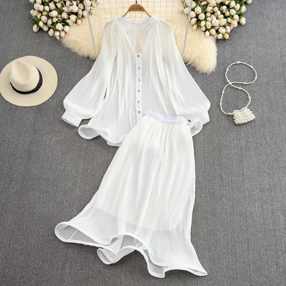 Introducing the XFPV 2023 New Spring Summer Fashion Two Piece Set - the perfect combination of style, comfort, and versatility. Made with premium materials, this set features a v-neck loose lantern top with long sleeves and a high waist mid-length skirt, perfect for any occasion. Say goodbye to the struggle of finding the perfect fit, as this set comes in one size that fits all. The top has a length of 78cm and unlimited bust, while the skirt measures 95cm in total length and has a waist measurement of 60-120cm. Elevate your wardrobe and exude inner charm with this must-have set. Limited time offer, so get yours now!