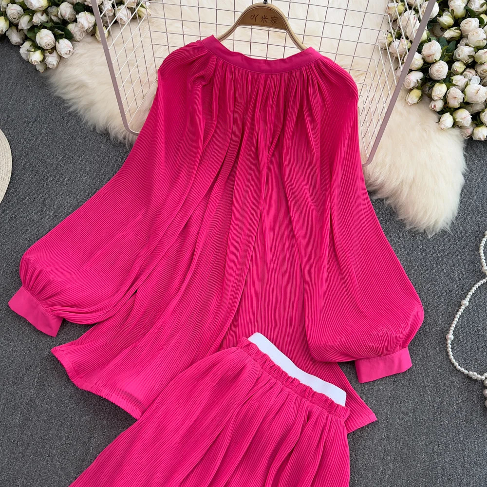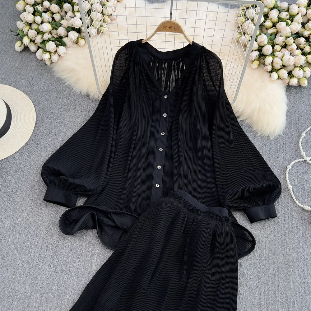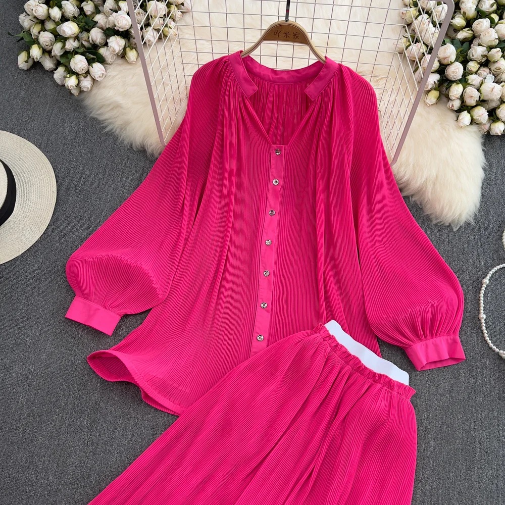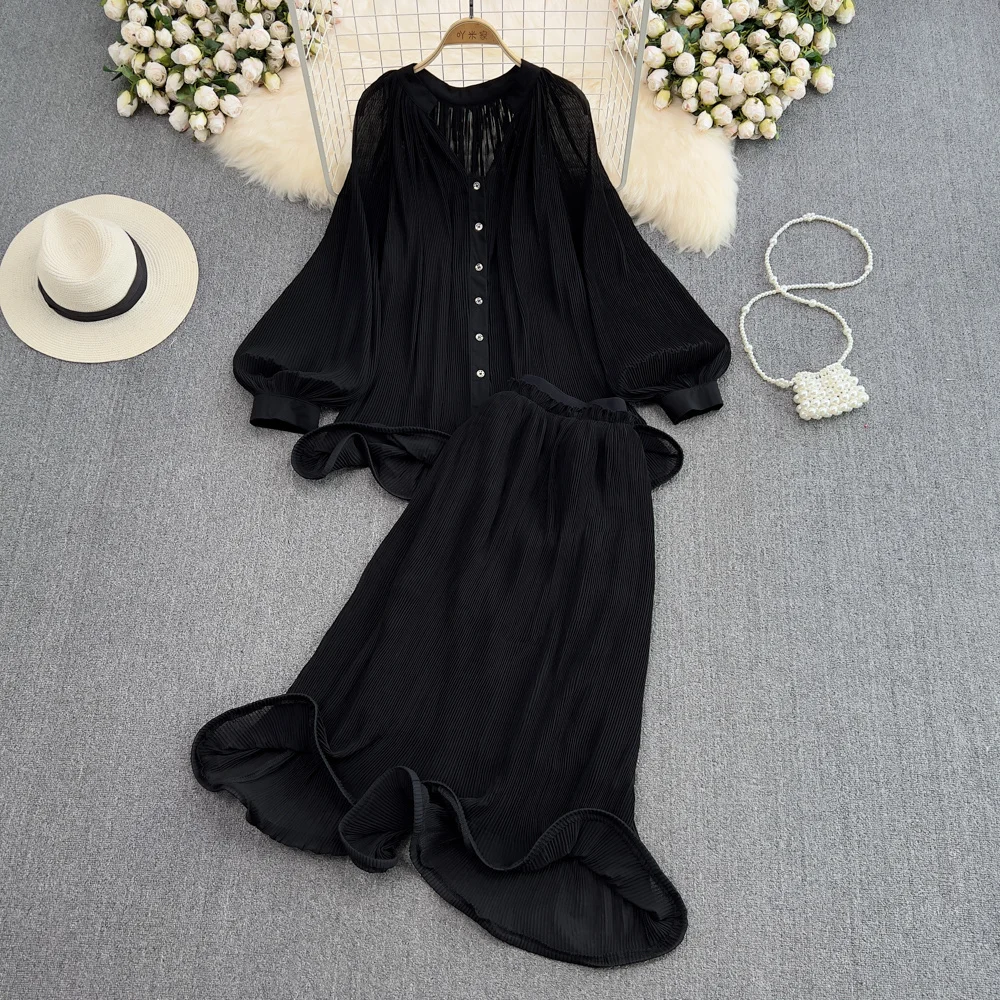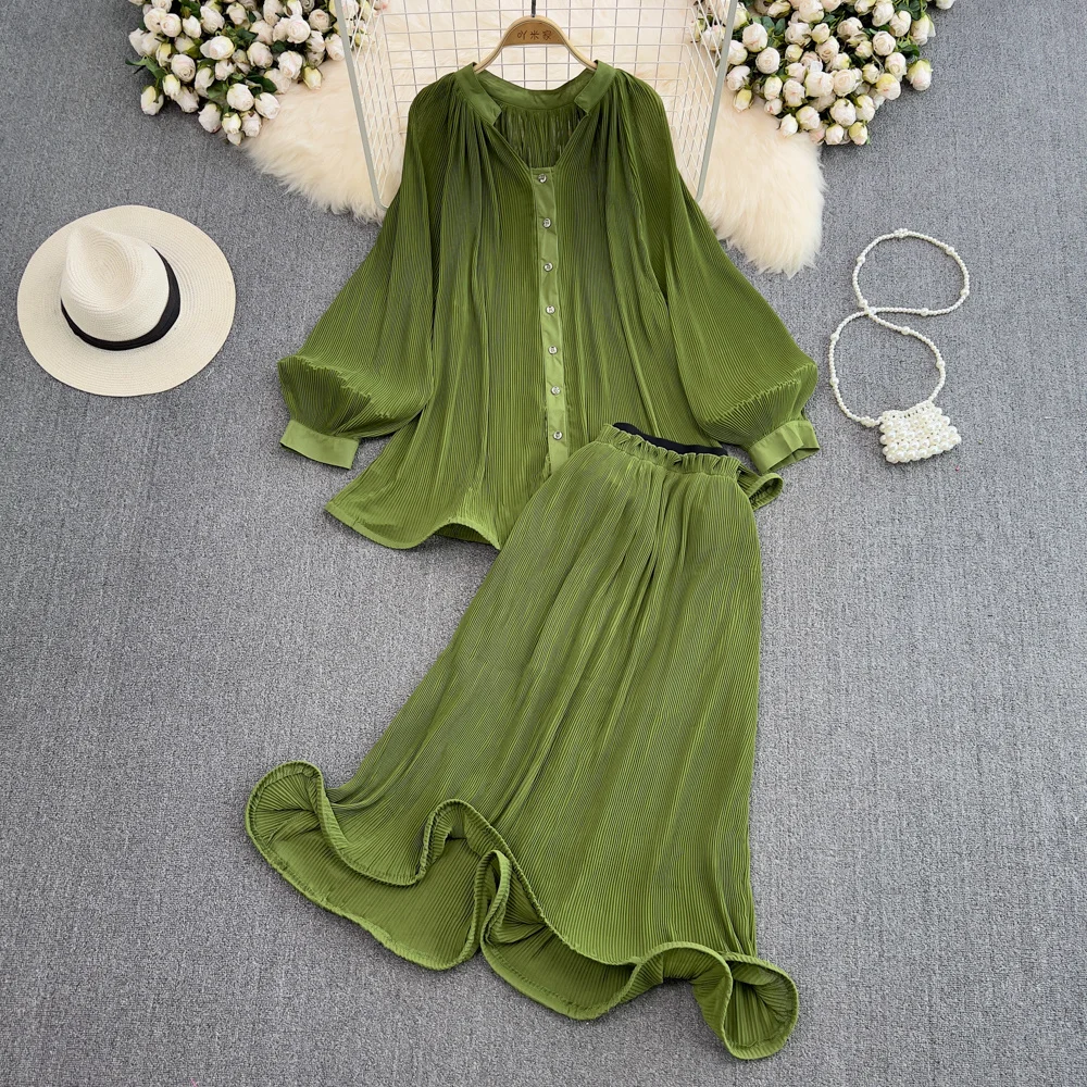 Introducing the XFPV 2023 New Spring Summer Fashion Two Piece Set - the perfect combination of style, comfort, and versatility. Made with premium materials, this set features a v-neck loose lantern top with long sleeves and a high waist mid-length skirt, perfect for any occasion. Say goodbye to the struggle of finding the perfect fit, as this set comes in one size that fits all. The top has a length of 78cm and unlimited bust, while the skirt measures 95cm in total length and has a waist measurement of 60-120cm. Elevate your wardrobe and exude inner charm with this must-have set. Limited time offer, so get yours now!