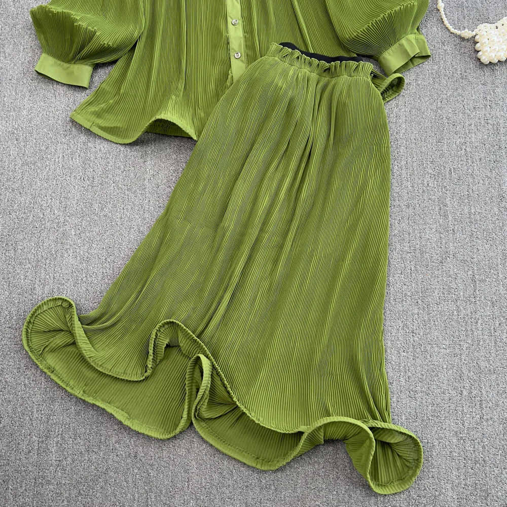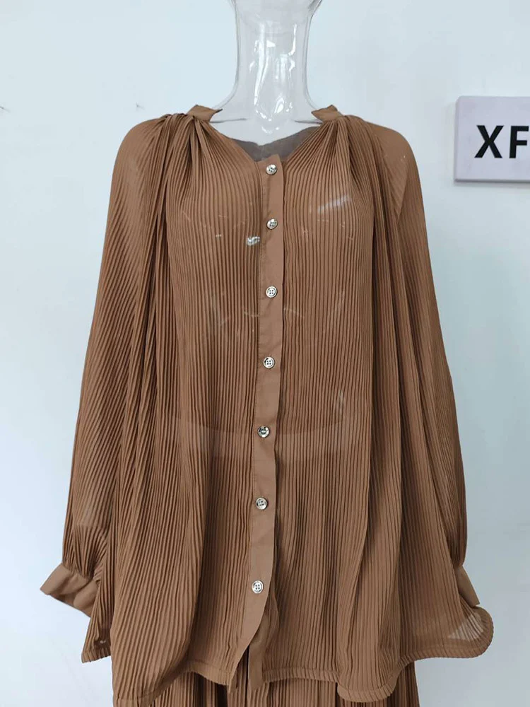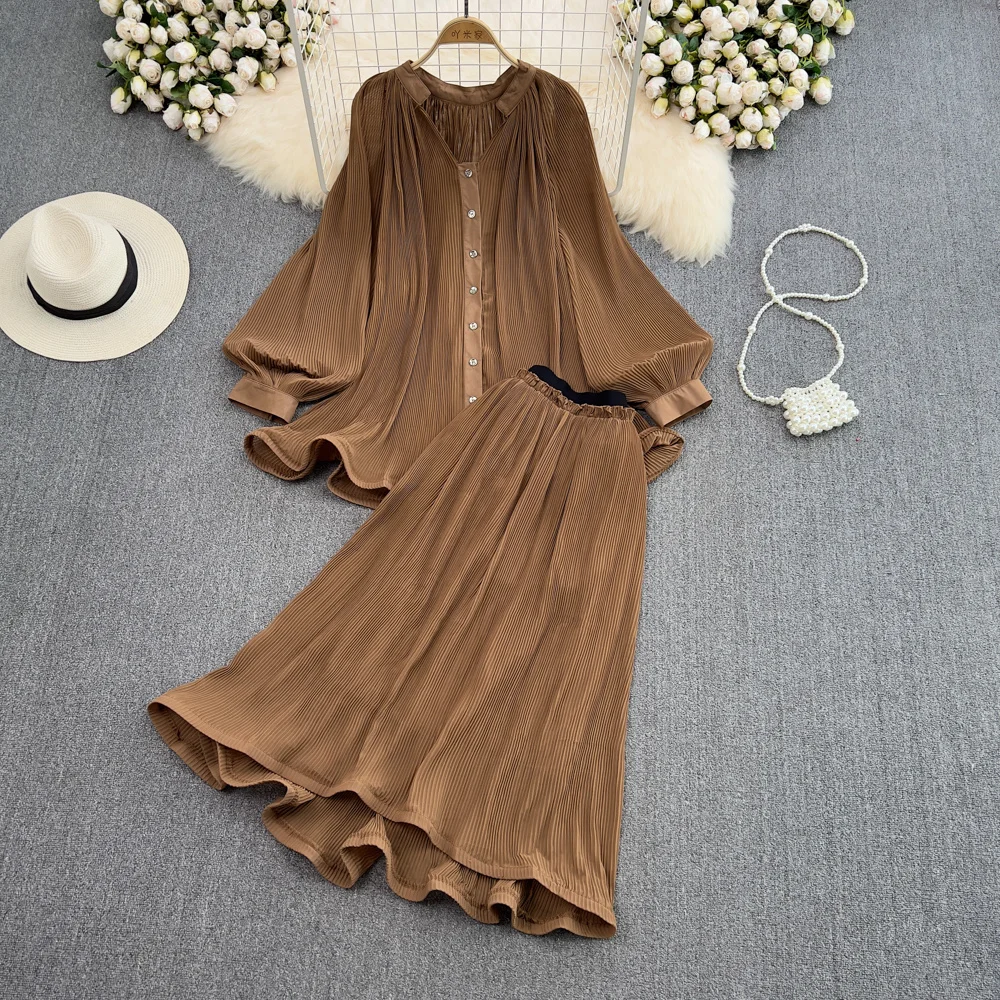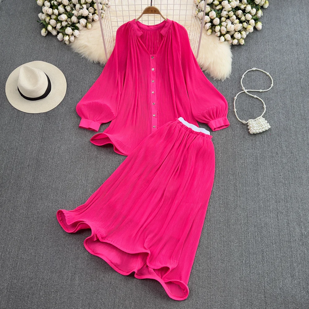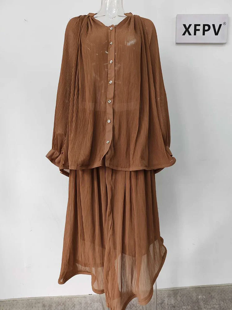 Introducing the XFPV 2023 New Spring Summer Fashion Two Piece Set - the perfect combination of style, comfort, and versatility. Made with premium materials, this set features a v-neck loose lantern top with long sleeves and a high waist mid-length skirt, perfect for any occasion. Say goodbye to the struggle of finding the perfect fit, as this set comes in one size that fits all. The top has a length of 78cm and unlimited bust, while the skirt measures 95cm in total length and has a waist measurement of 60-120cm. Elevate your wardrobe and exude inner charm with this must-have set. Limited time offer, so get yours now!