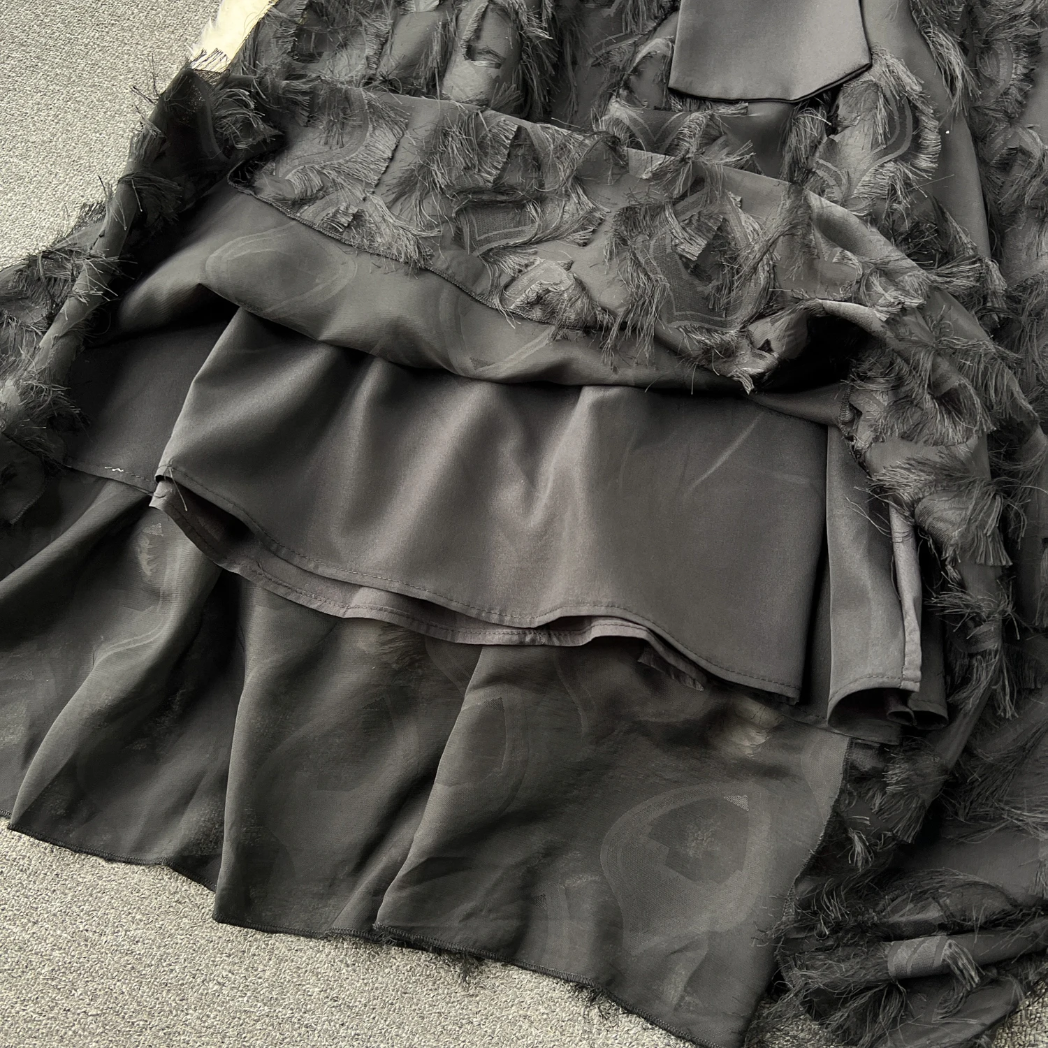 🌟 What it is - Step into elegance with this slim A-line dress featuring French bubble sleeves, splicing details, and tassels for a touch of sophistication.