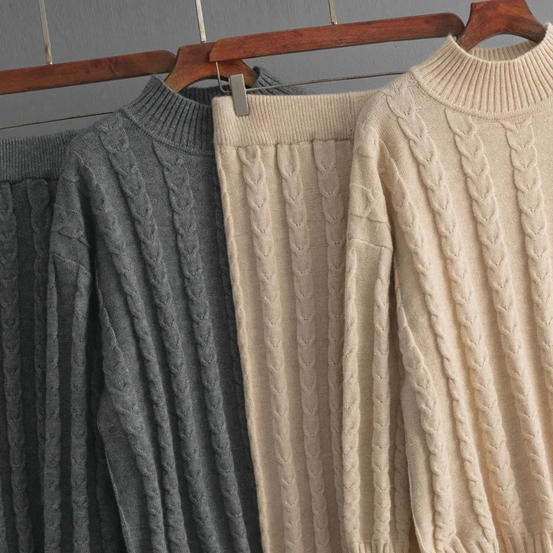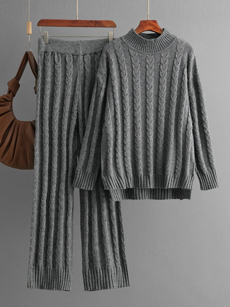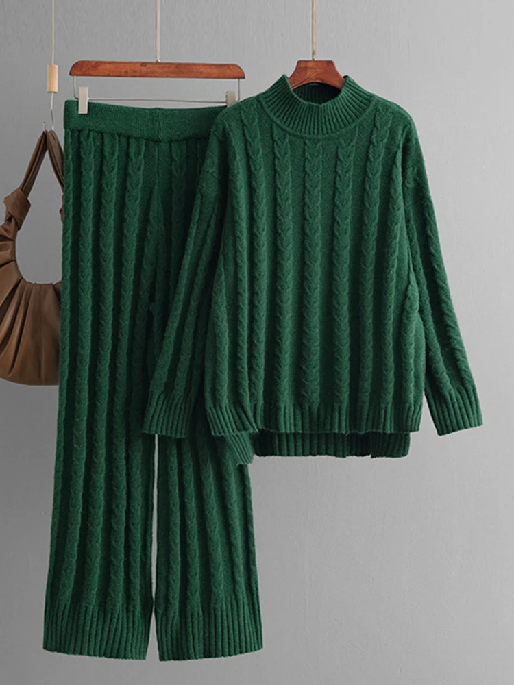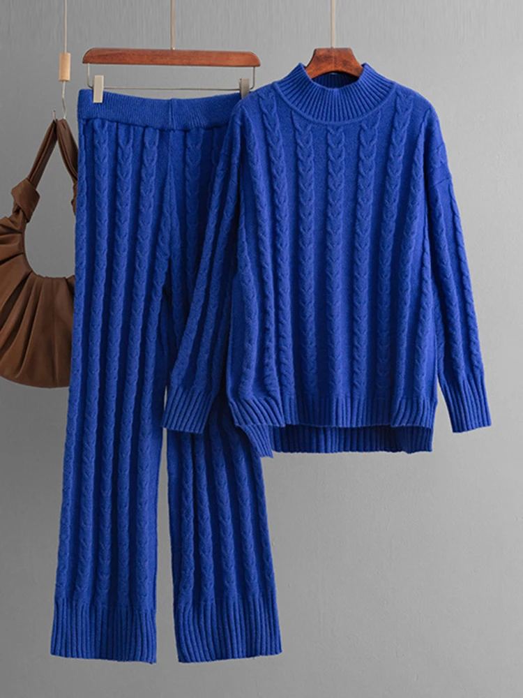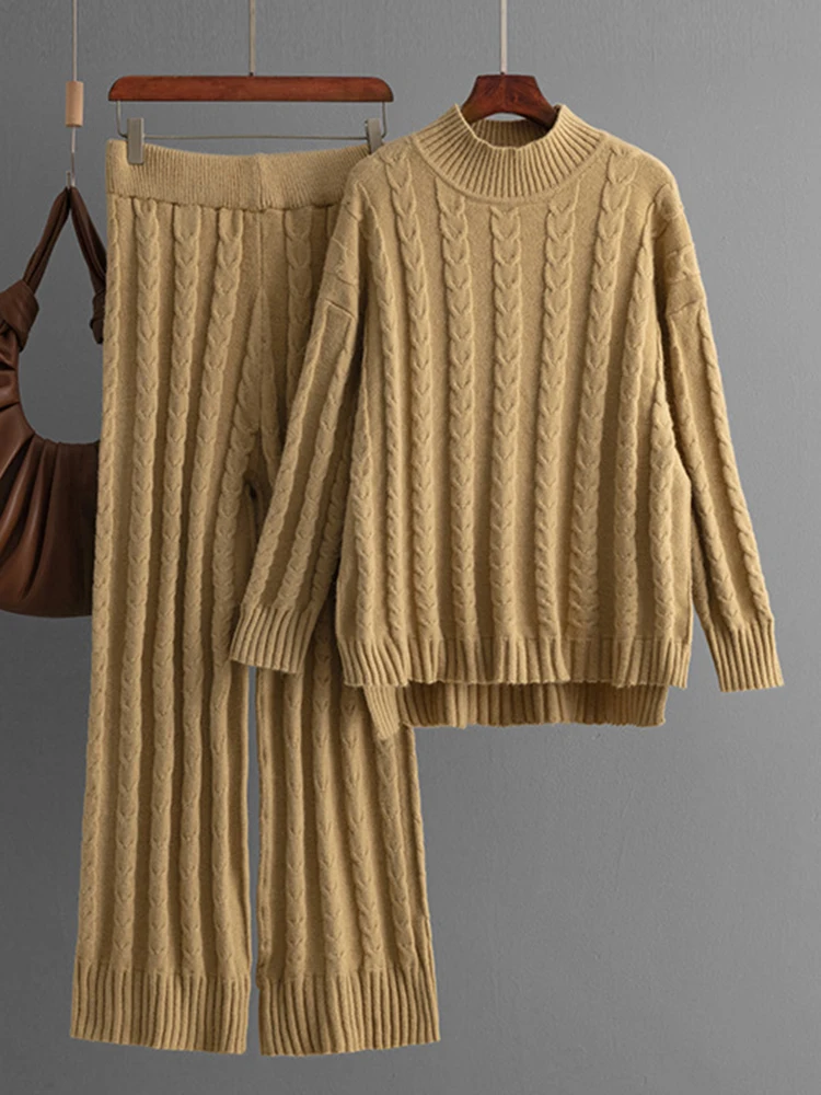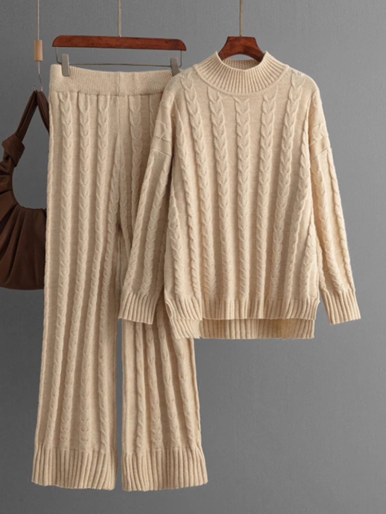 🌟 What it is - This 2-piece set includes a stand collar full sleeve sweater and wide leg pants for a chic and cozy look.