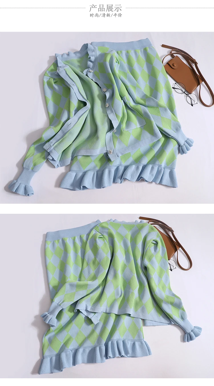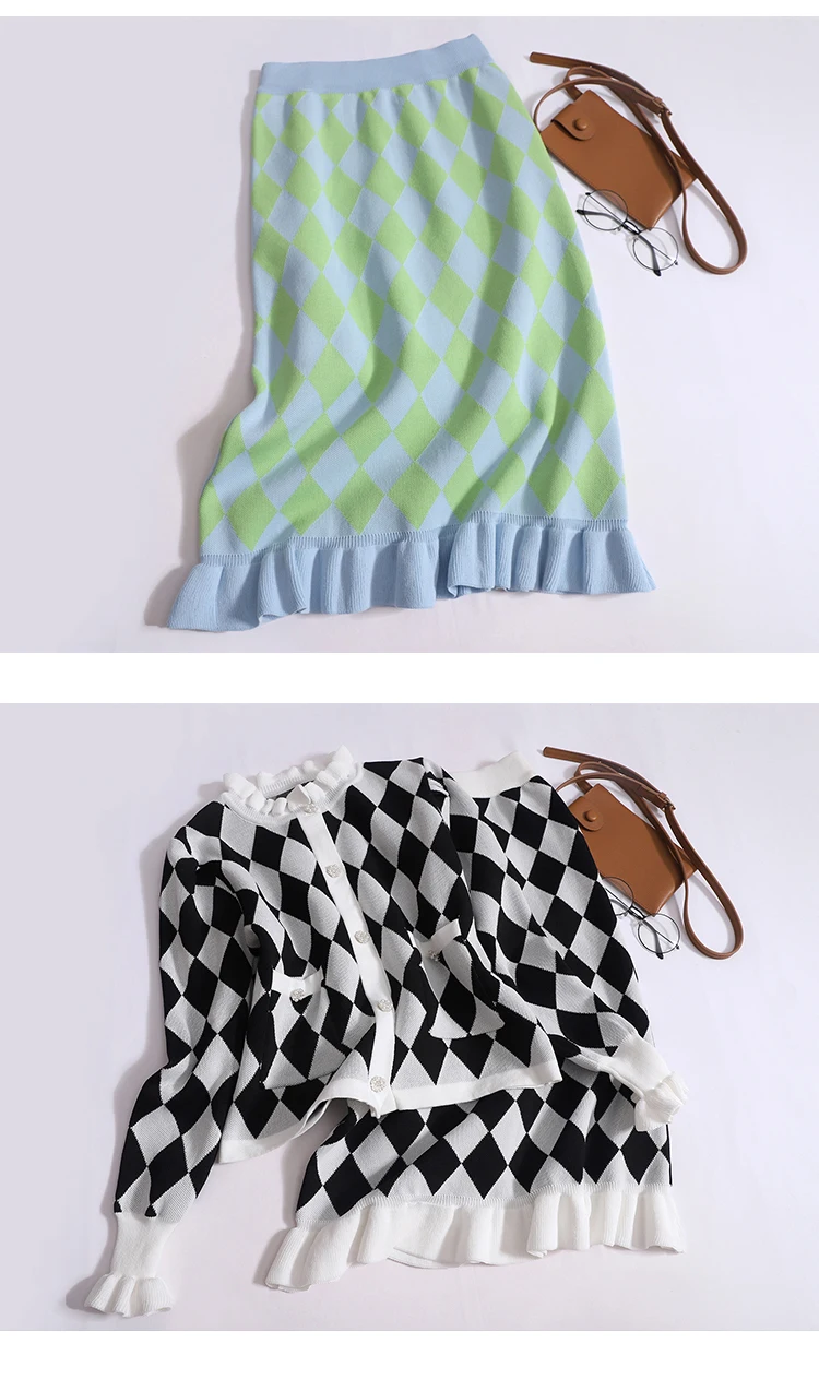 Introducing our Autumn New Ruffles Plaid Two Piece Set - the perfect outfit for the upcoming season! Made with high-quality, elastic fabric, this set features a long sleeve knitted cardigan sweater and a vintage long skirt with a high waist. It's available in one size, fitting S, M, and L. With a variety of shipping options including free shipping, you can receive your order in just 5-7 days. Plus, our 15-day warranty ensures that you'll receive a product of the highest quality. Don't miss out on this limited time offer and upgrade your wardrobe with our premium two piece set today!