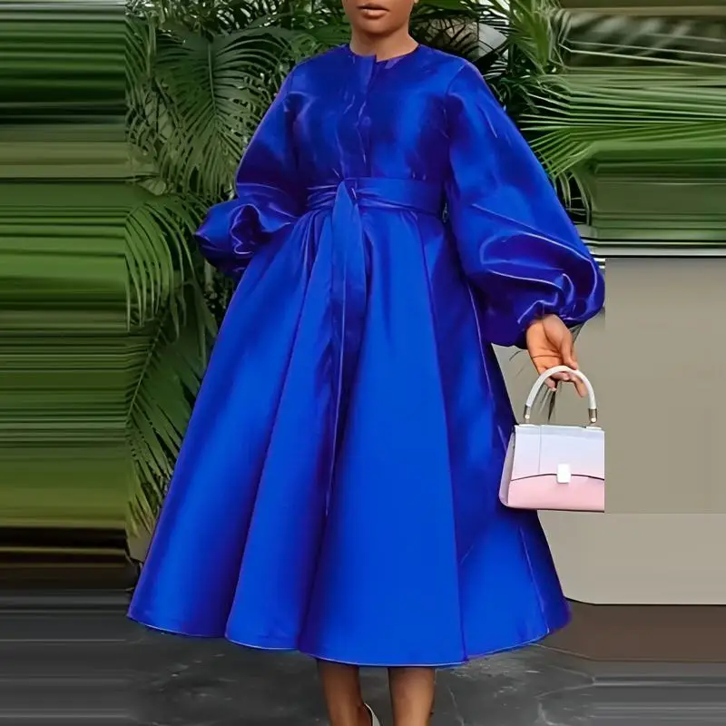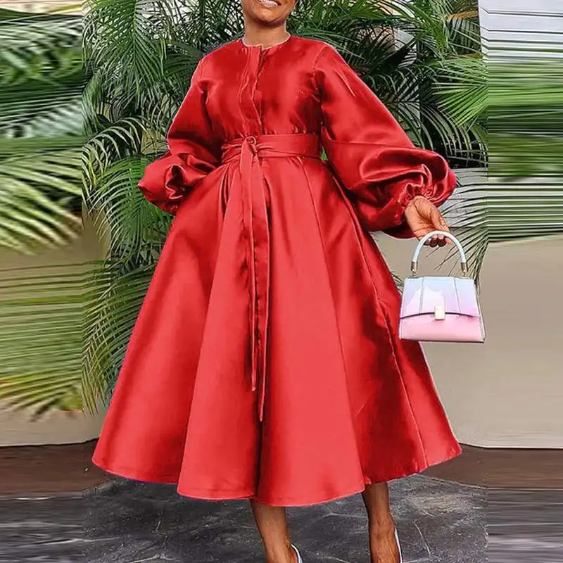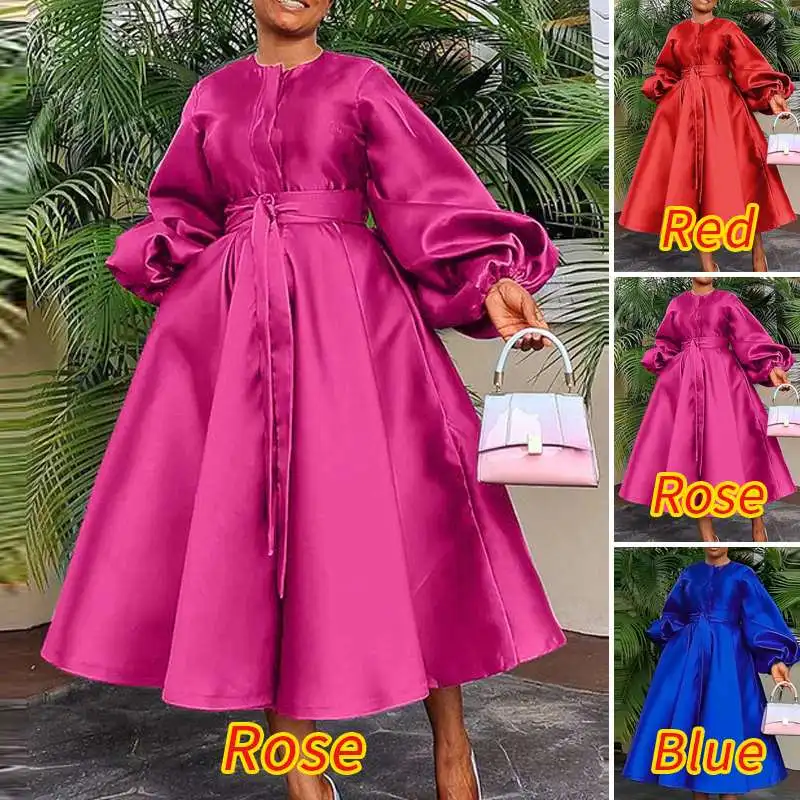 Introducing our best-selling Plus Size VONDA 2024 Elegant Party Dress! This stunning dress features long lantern sleeves, a satin pleated midi design, and a flattering loose fit. It comes with a stylish belt and is available in three gorgeous colors: red, rose red, and blue. Perfect for any occasion, this dress is made from high-quality polyester and is designed to keep you comfortable and stylish all day long. Don't miss out on this limited time offer and add this perfect fit dress to your wardrobe today!
